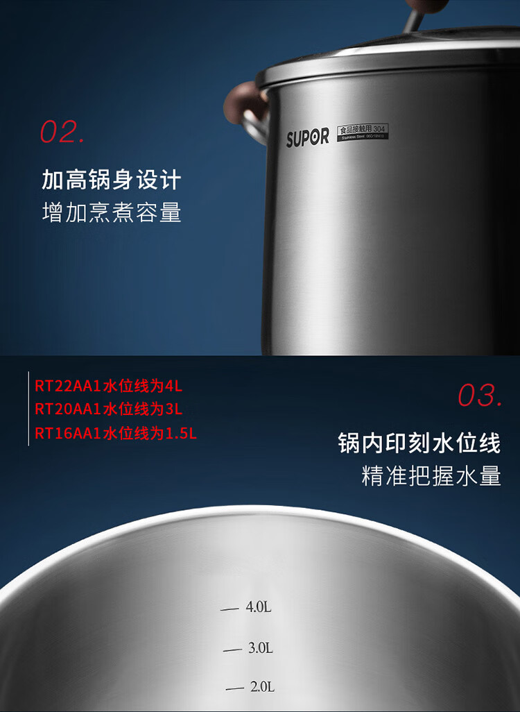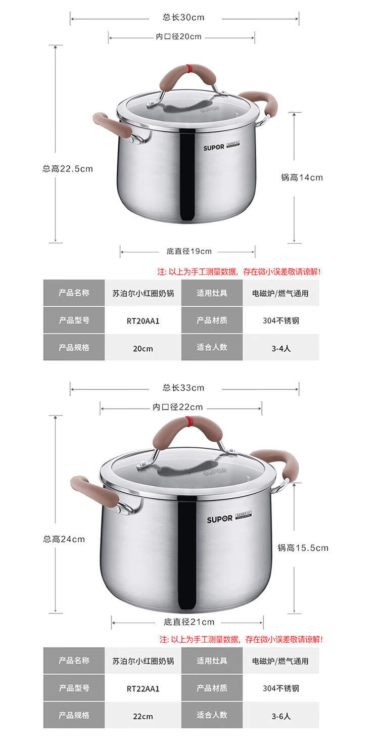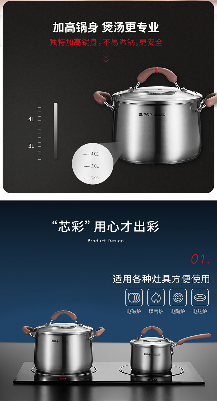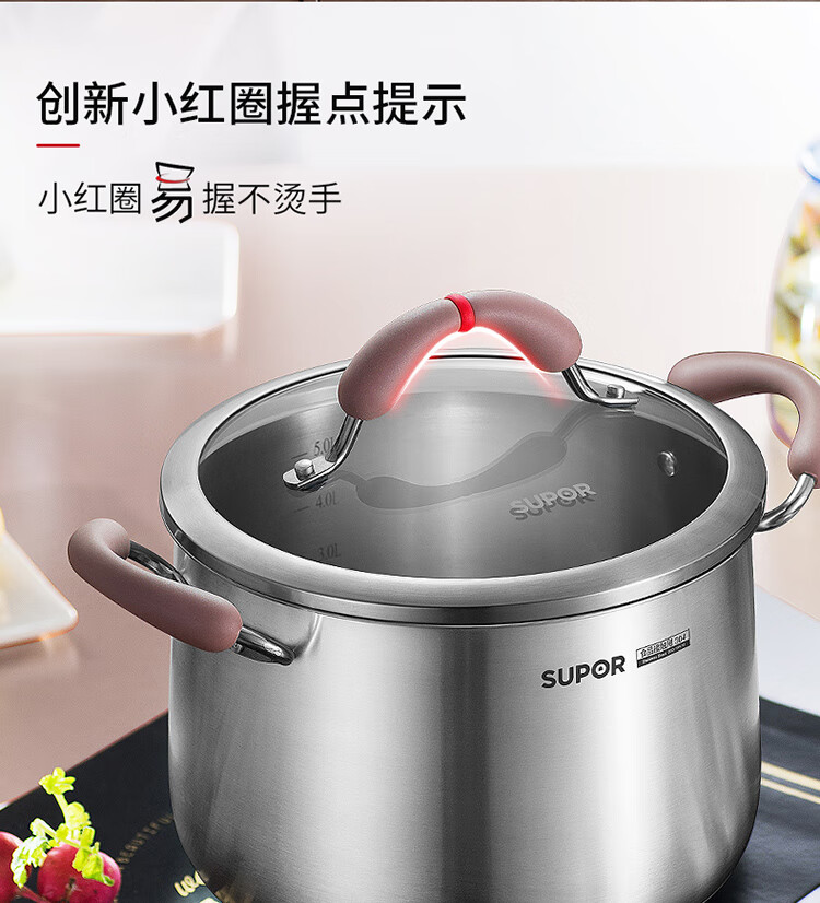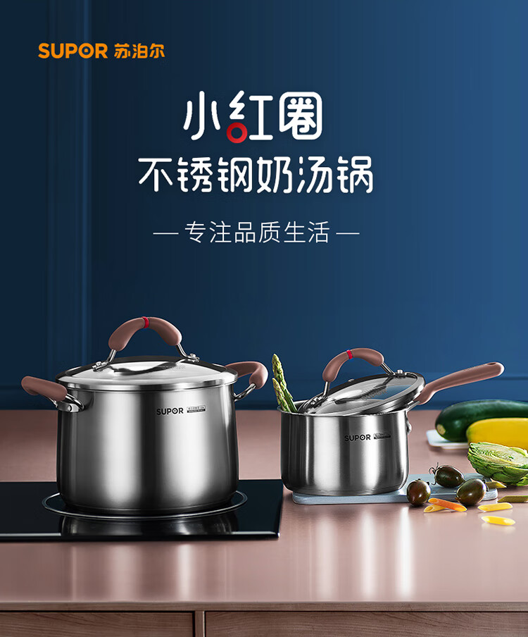 苏泊尔(SUPOR)奶锅不锈钢辅食锅小奶锅304不锈钢实用炊具防刮耐磨 小红圈奶锅-16cm-RT16AA1