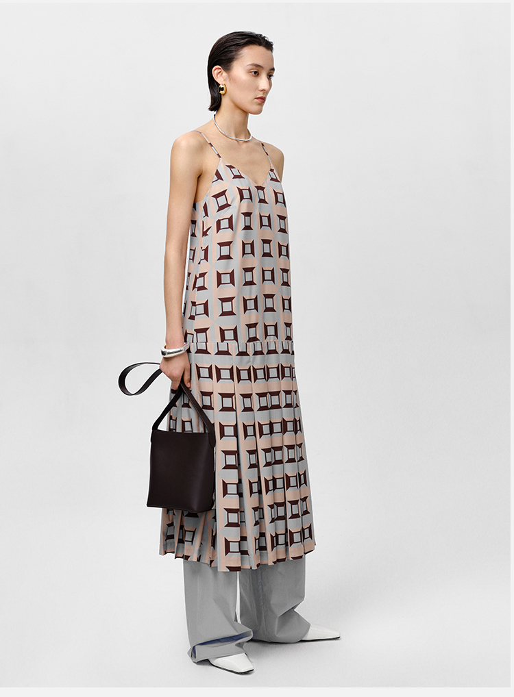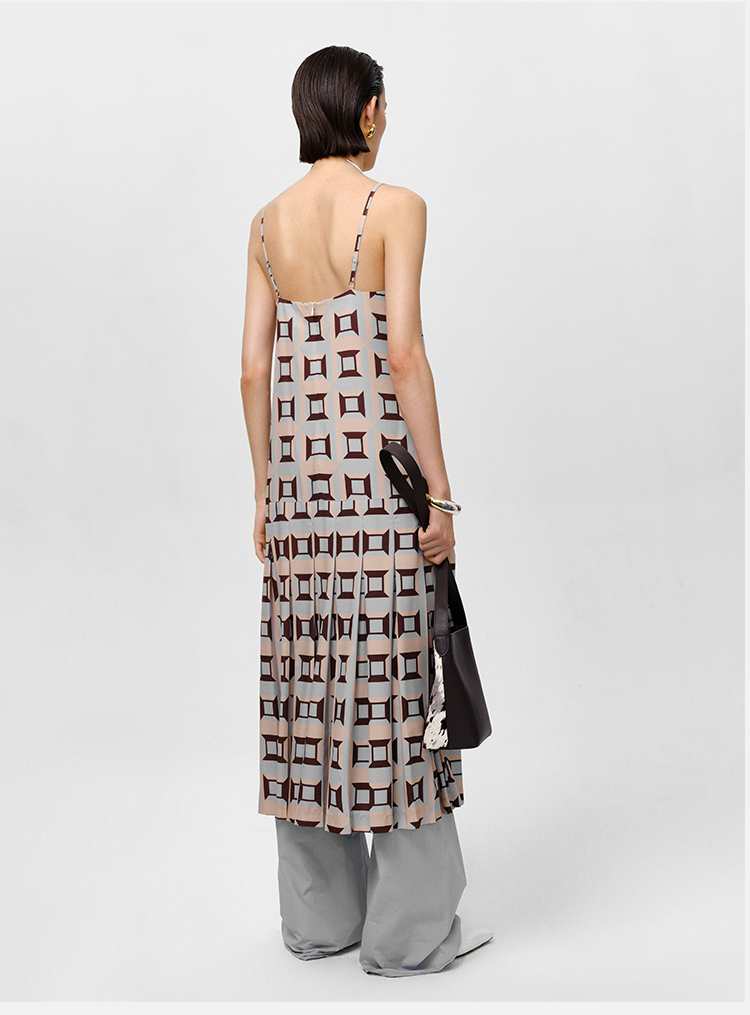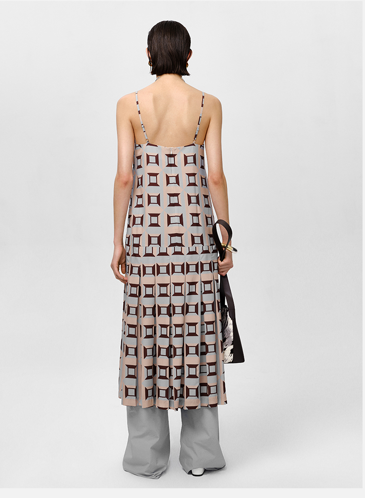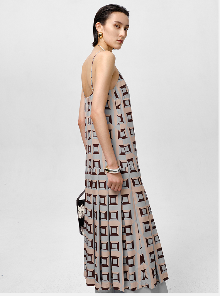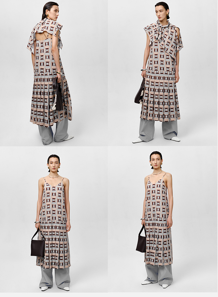 HIDEMI “我们做印花”经典几何设计感廓形印花缎面分体可拆卸斗篷式连衣裙 黄蓝