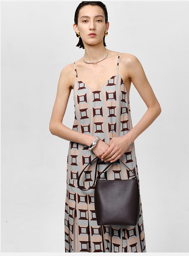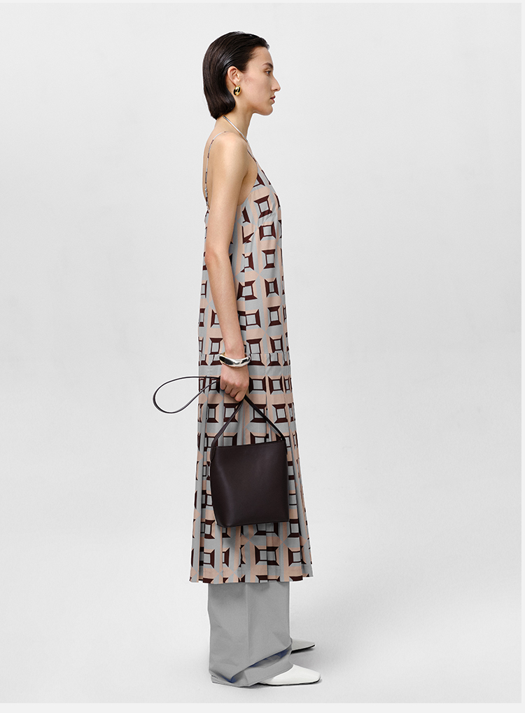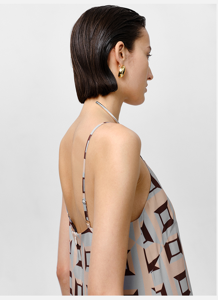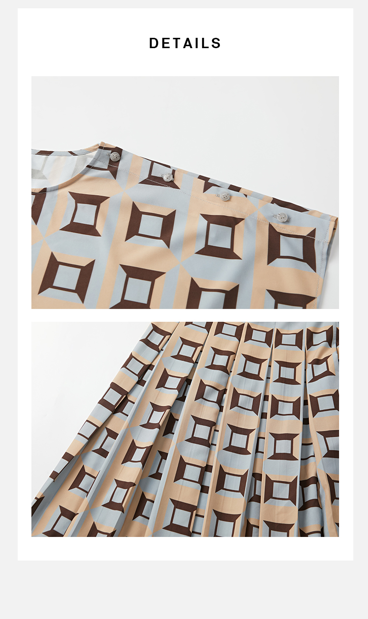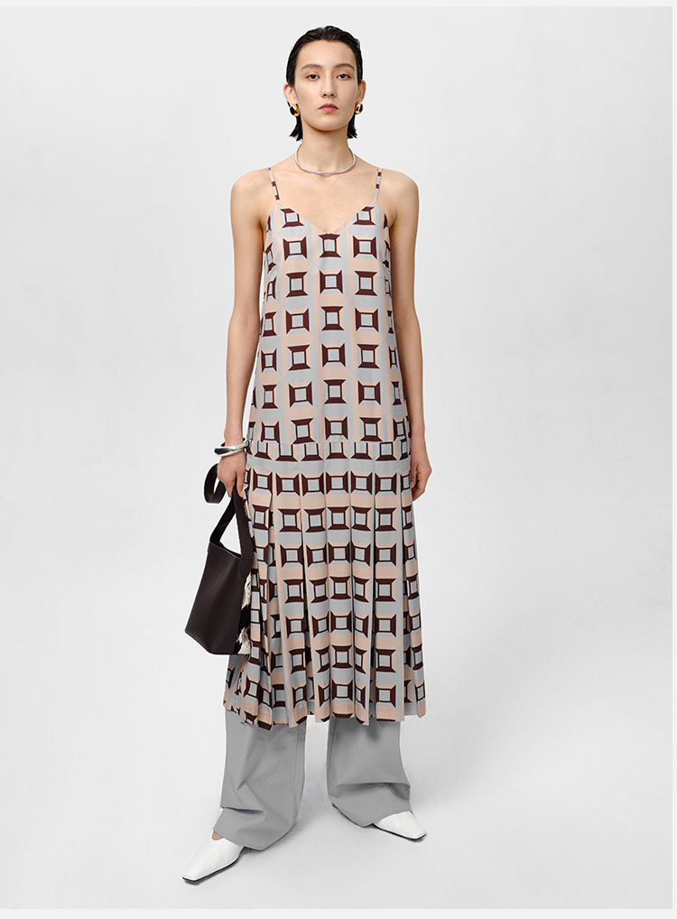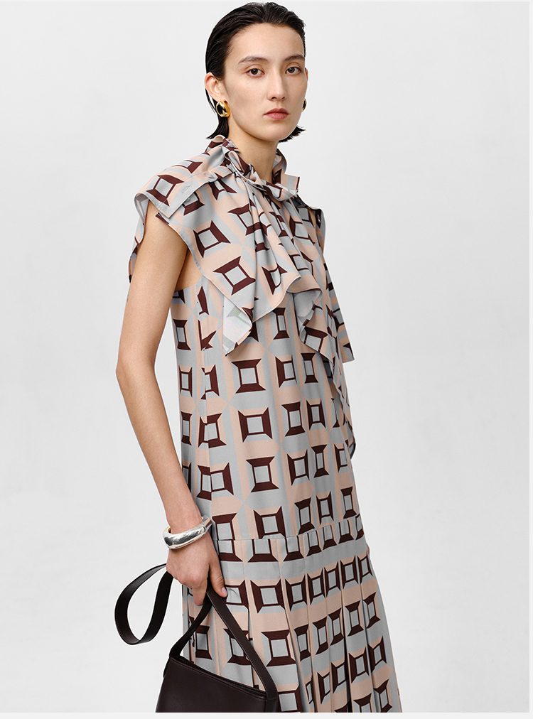 HIDEMI “我们做印花”经典几何设计感廓形印花缎面分体可拆卸斗篷式连衣裙 黄蓝