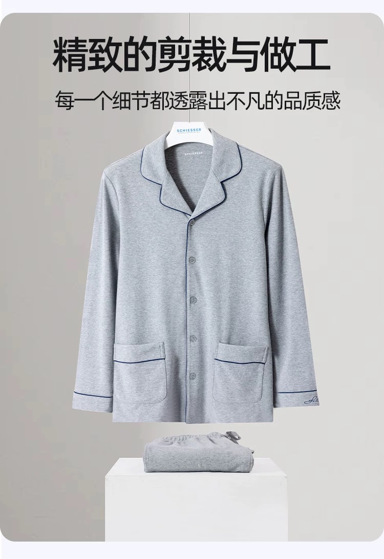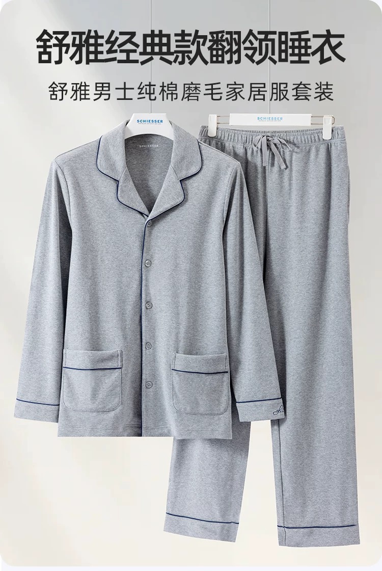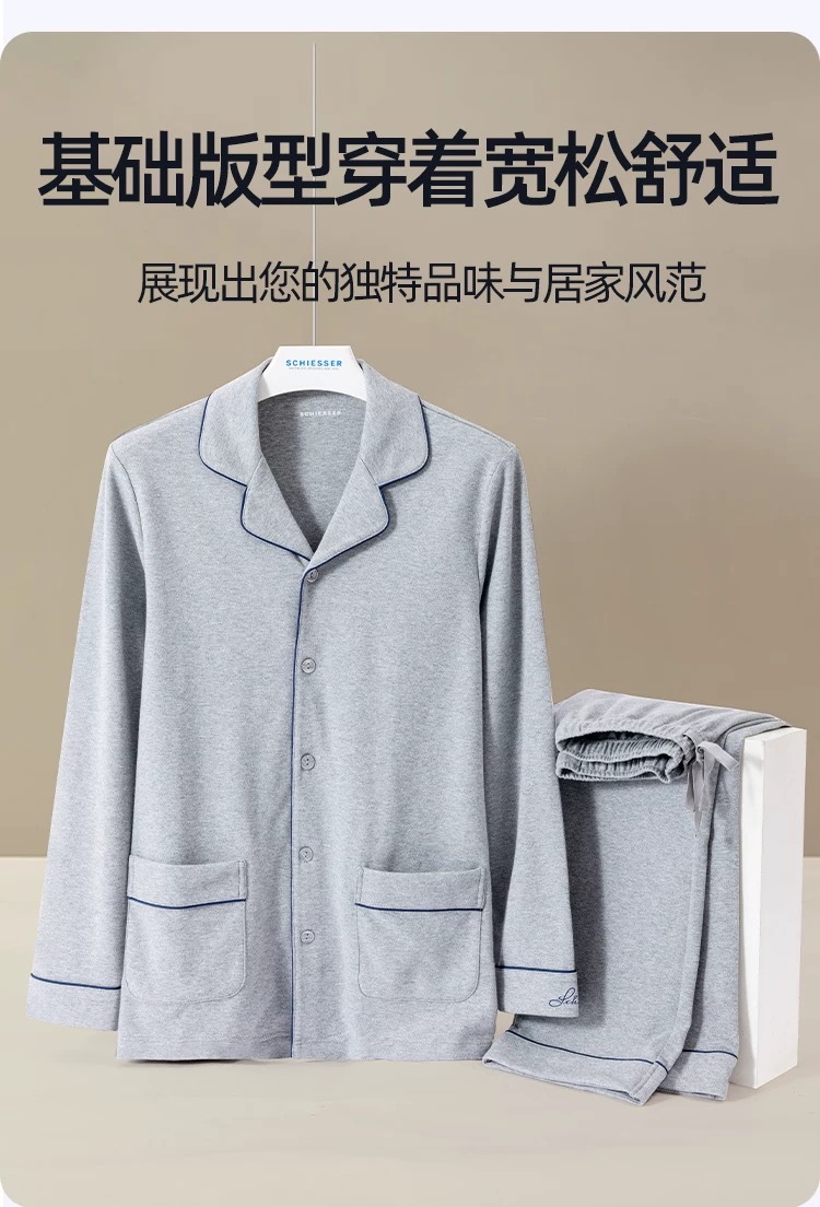【中厚棉氨 秋初冬必备】SCHIESSER德国舒雅男士棉+氨纶中厚家居套装35/23662H