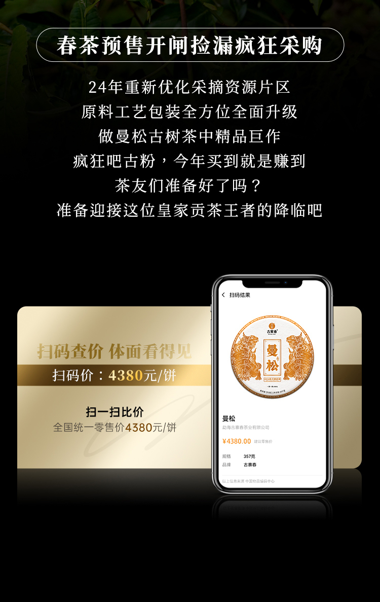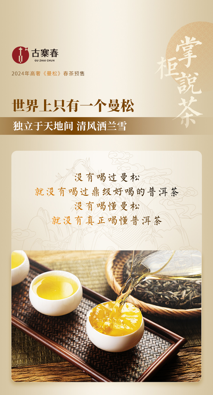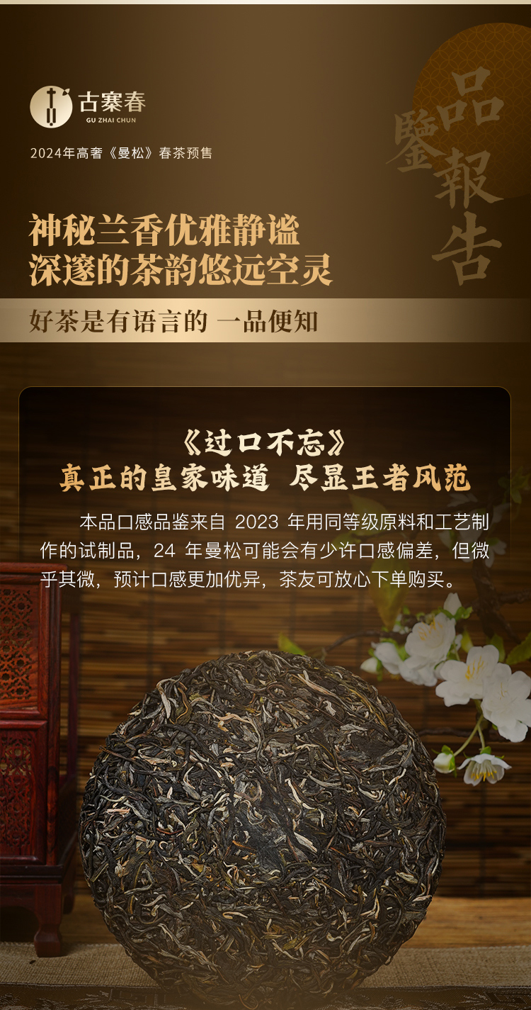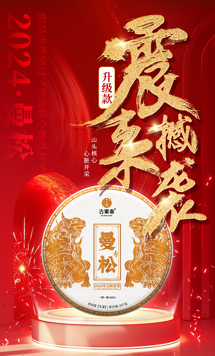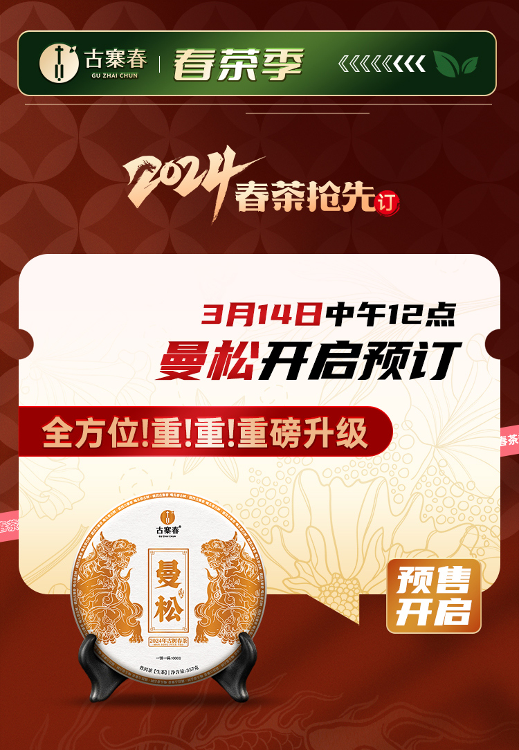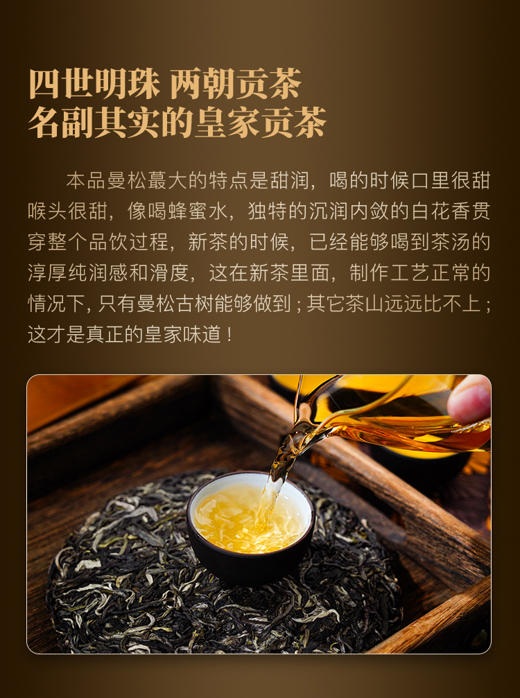 【曼松】2024年春茶仅选曼松大户24号茶农李学平王子山核心茶地向阳片区大古树,1200年,一喝难忘,一喝成瘾;真正皇家味道,尽显王者风范。357克/饼,5饼/提 拍5发6
