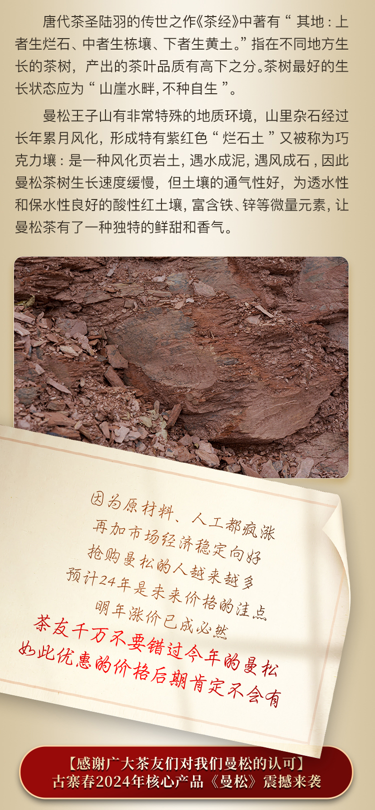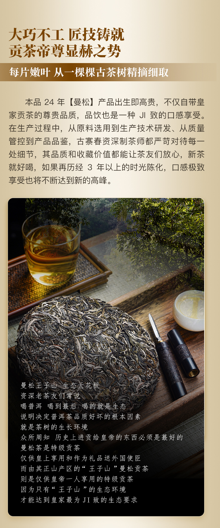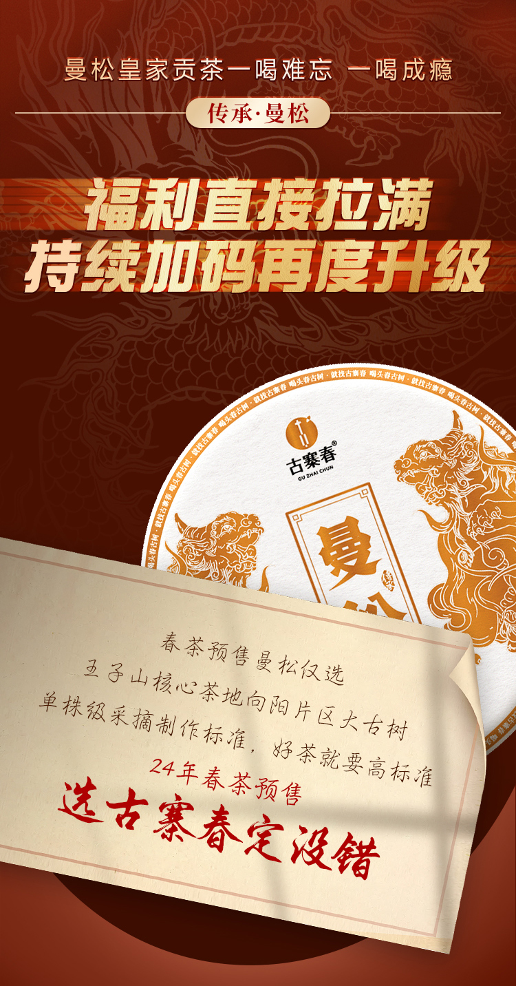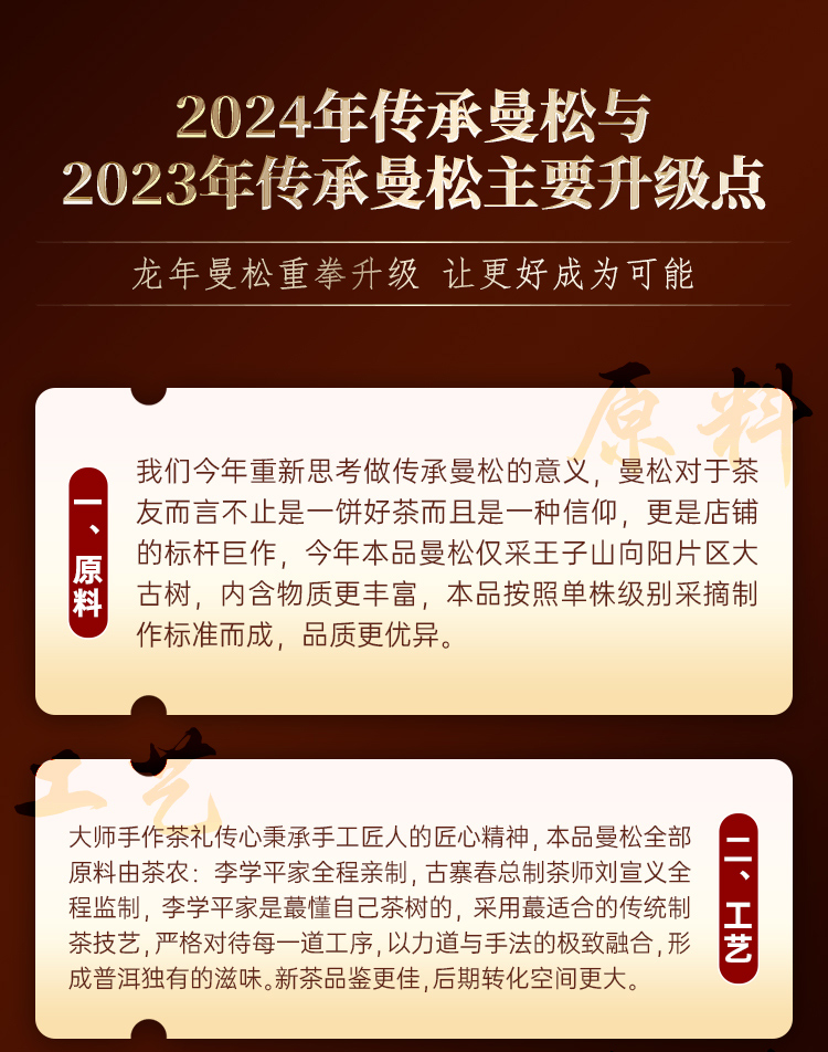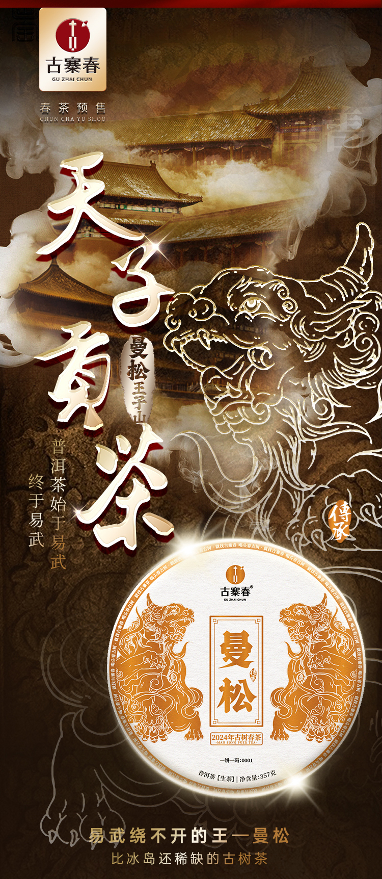 【曼松】2024年春茶仅选曼松大户24号茶农李学平王子山核心茶地向阳片区大古树,1200年,一喝难忘,一喝成瘾;真正皇家味道,尽显王者风范。357克/饼,5饼/提 拍5发6