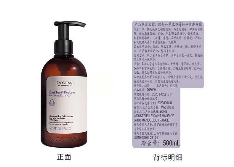 【欧舒丹】B1F 本菁纯平衡洗发水500ml
