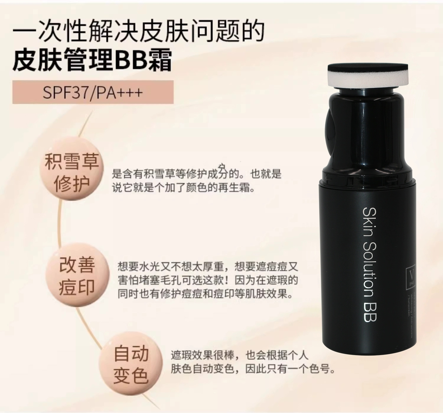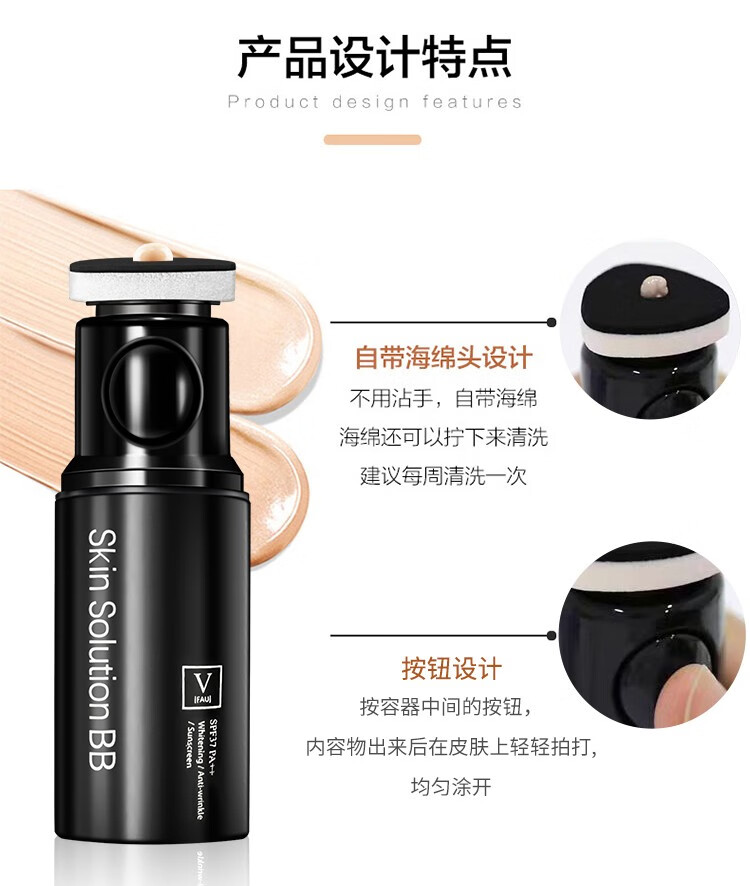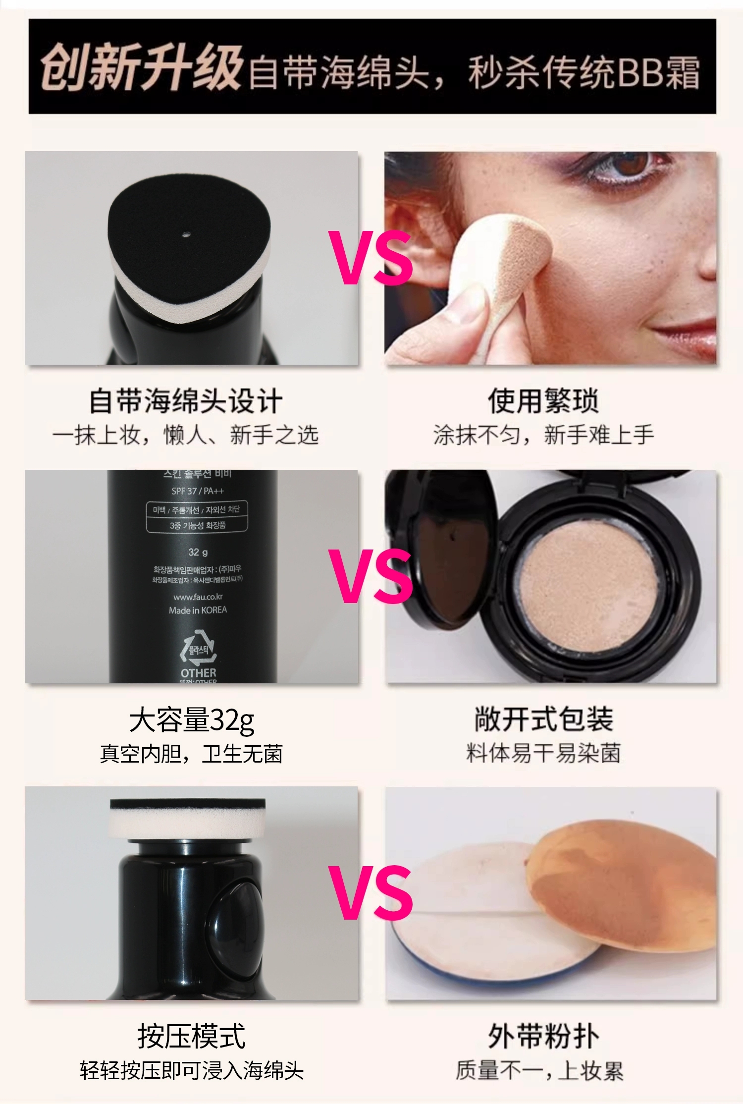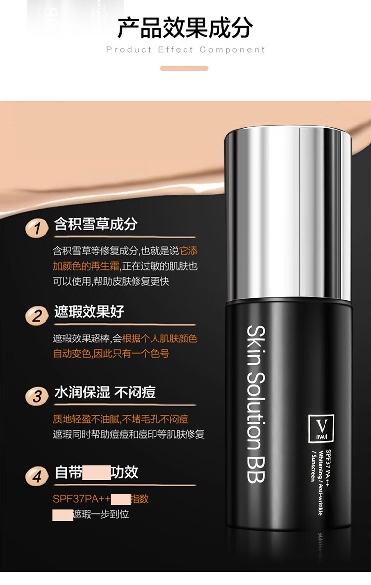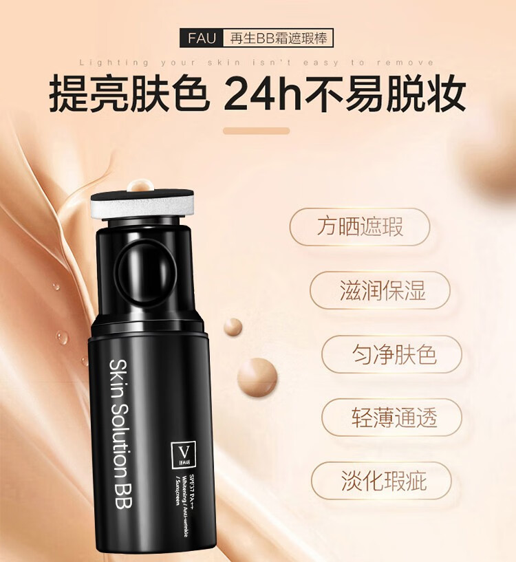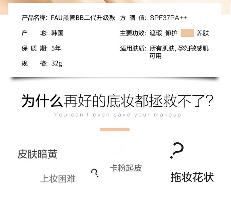 韩国V Fau再生bb霜2.0新版32g 修复隔离小黑管遮瑕保湿粉底液防晒不脱妆持久