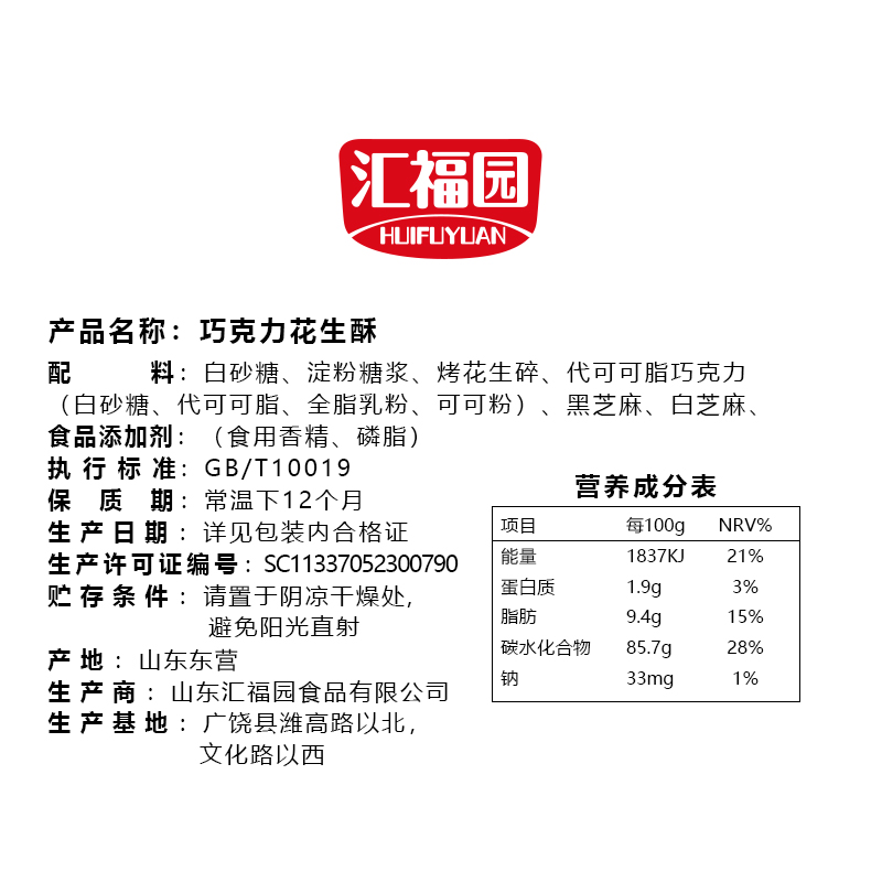汇福园糖果巧克力花生酥500g【山东必买好品】