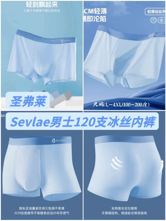 法国圣弗莱Sevlae🔥全国连锁800+门店,私域新品首发💢【圣弗莱Sevlae男士120支冰丝内裤】