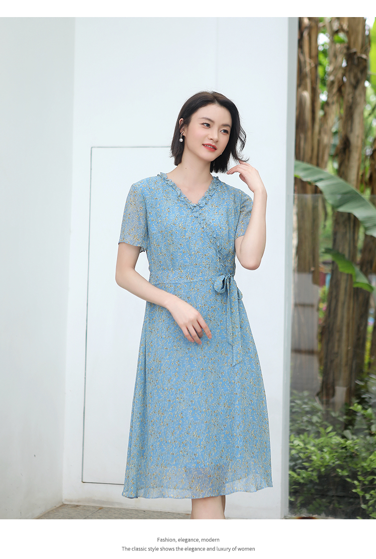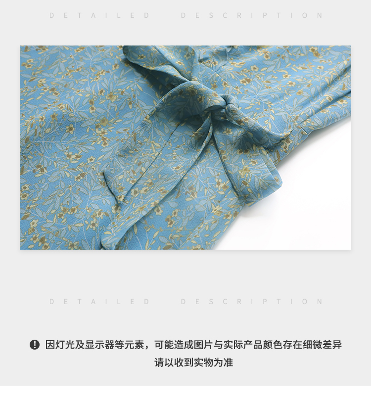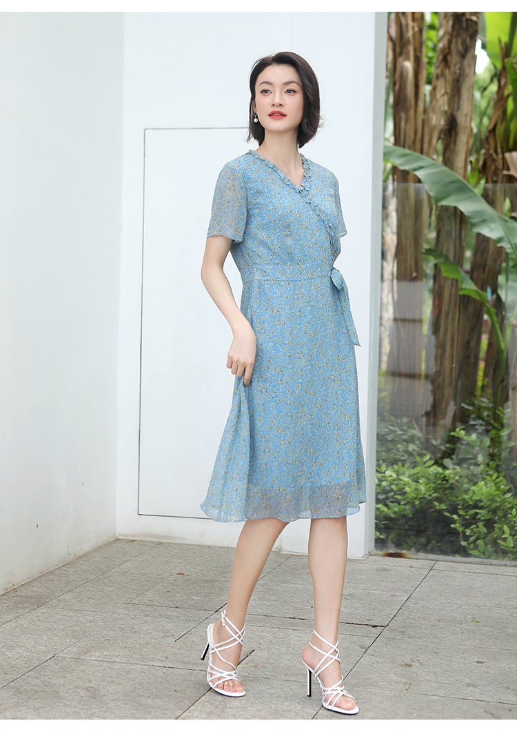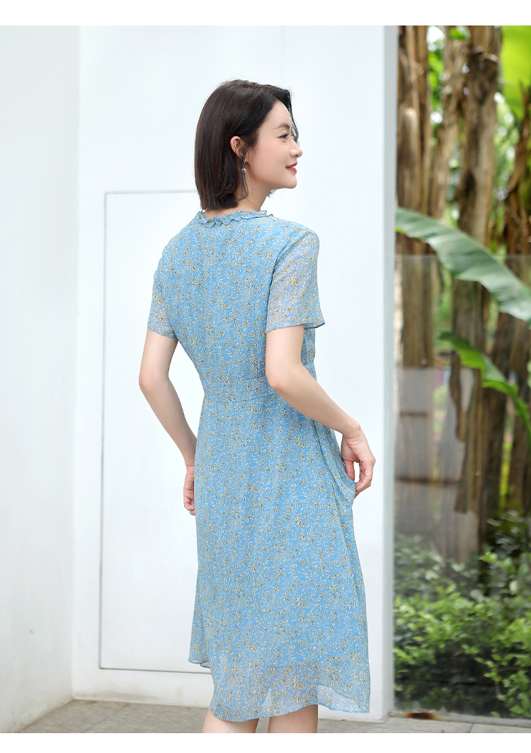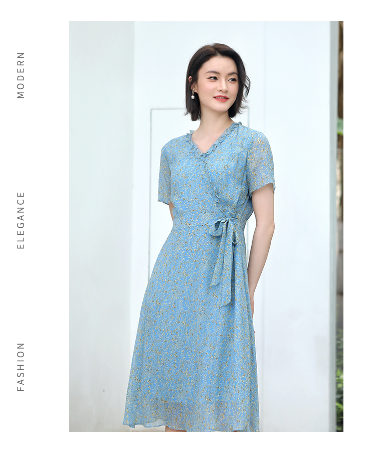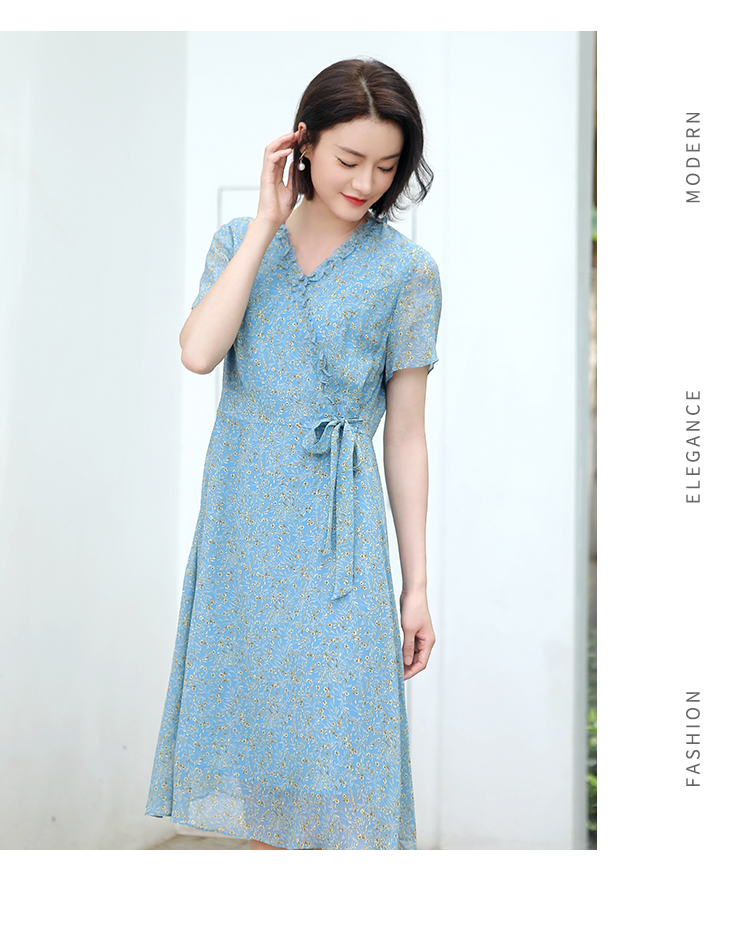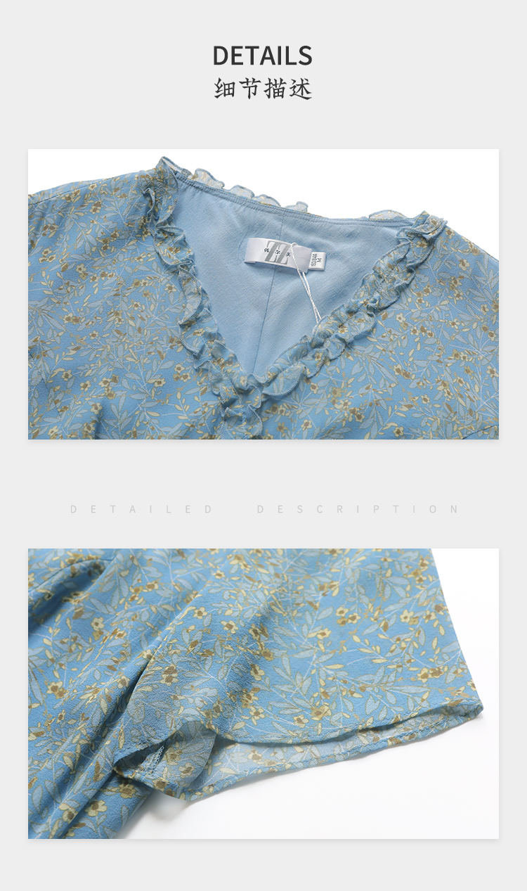 佐尔美夏季新款 气质小碎花V领100%桑蚕丝中长连衣裙女E32LS05