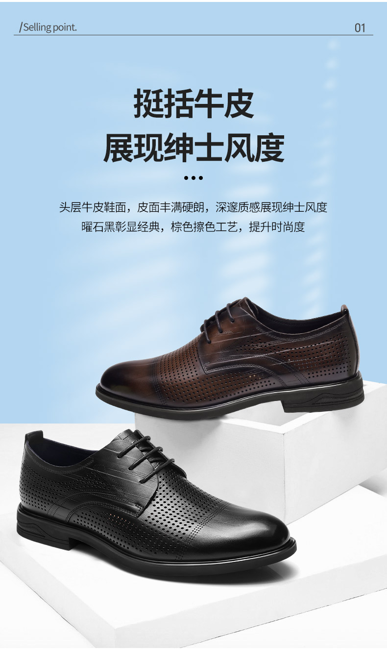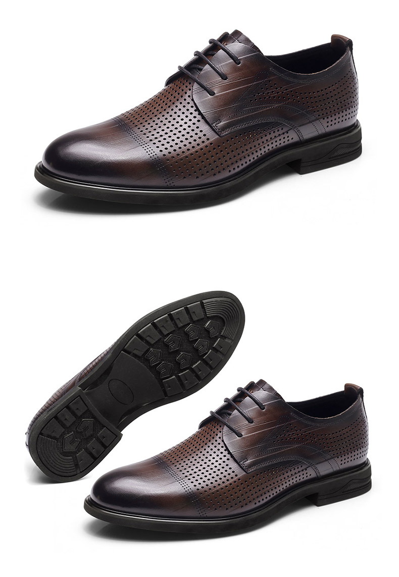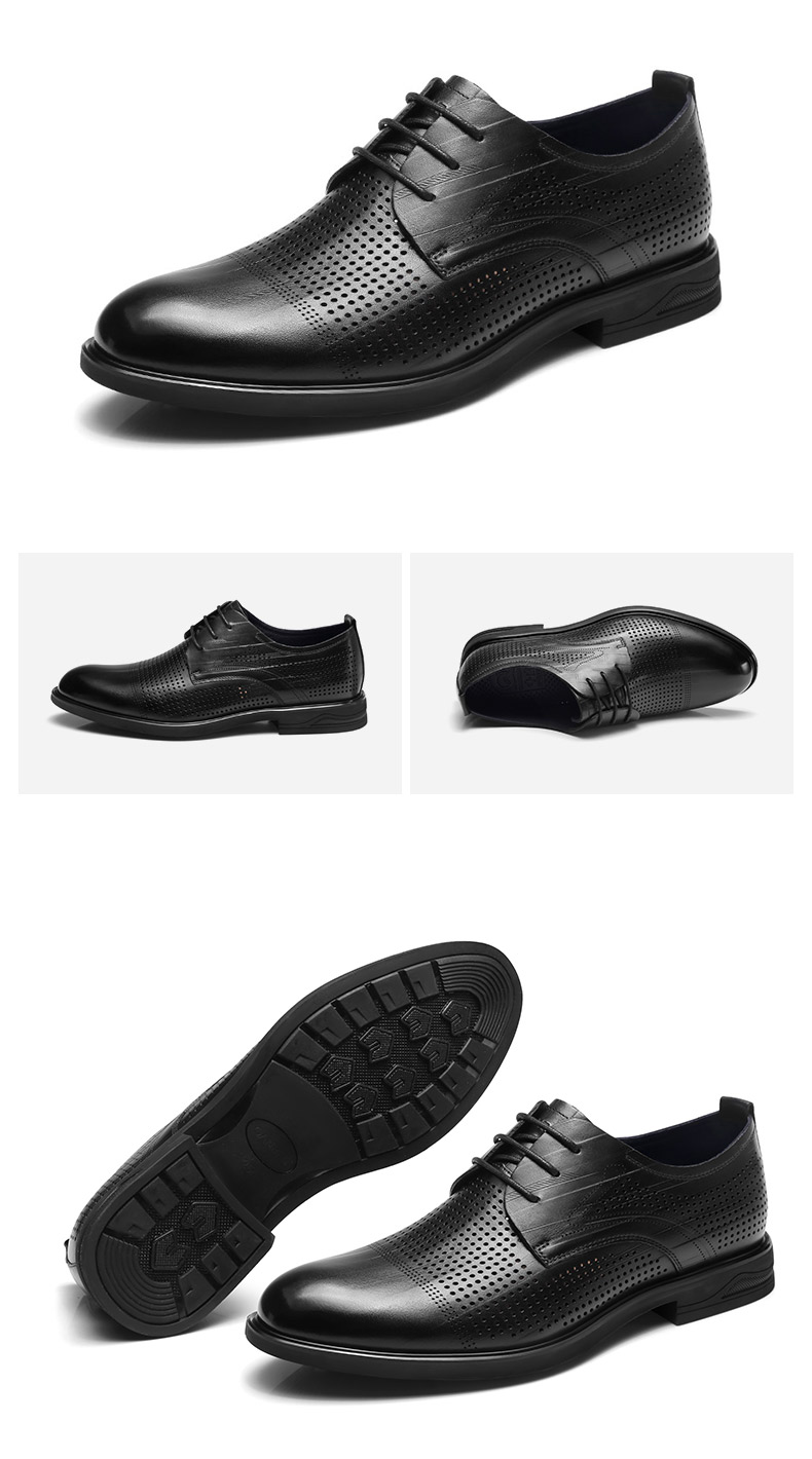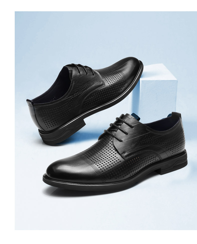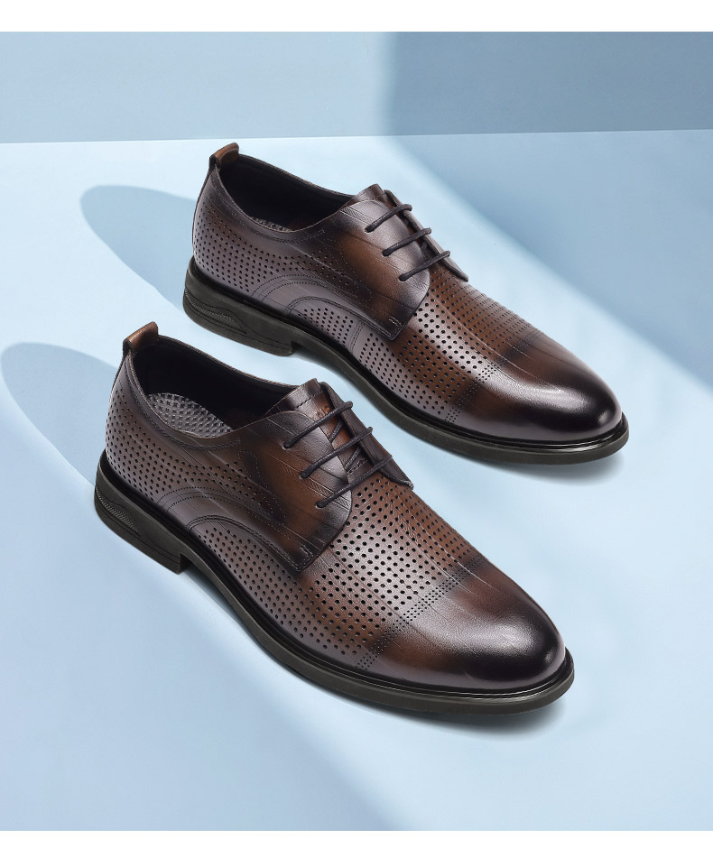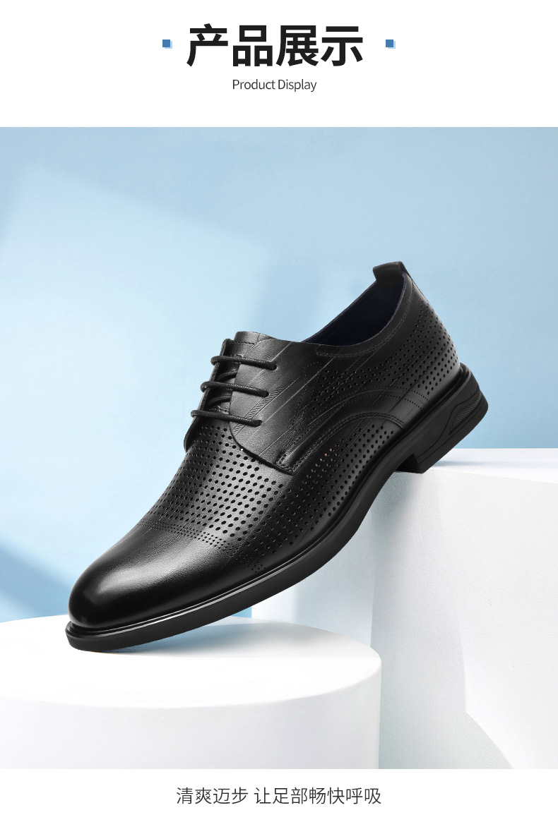 强人3515凉皮鞋男头层牛皮透气商务正装鞋镂空洞洞皮鞋男士婚鞋