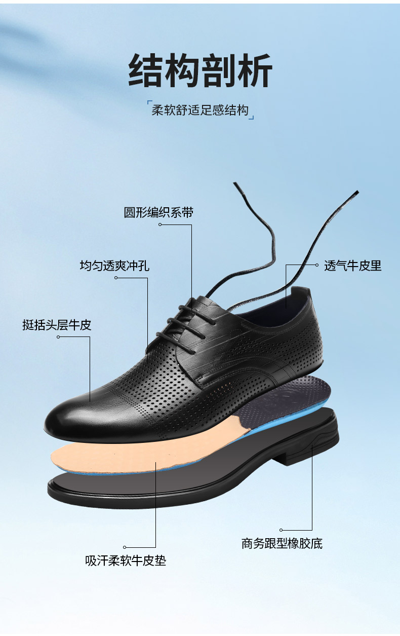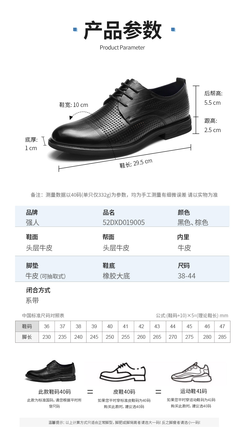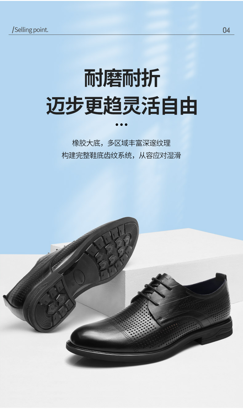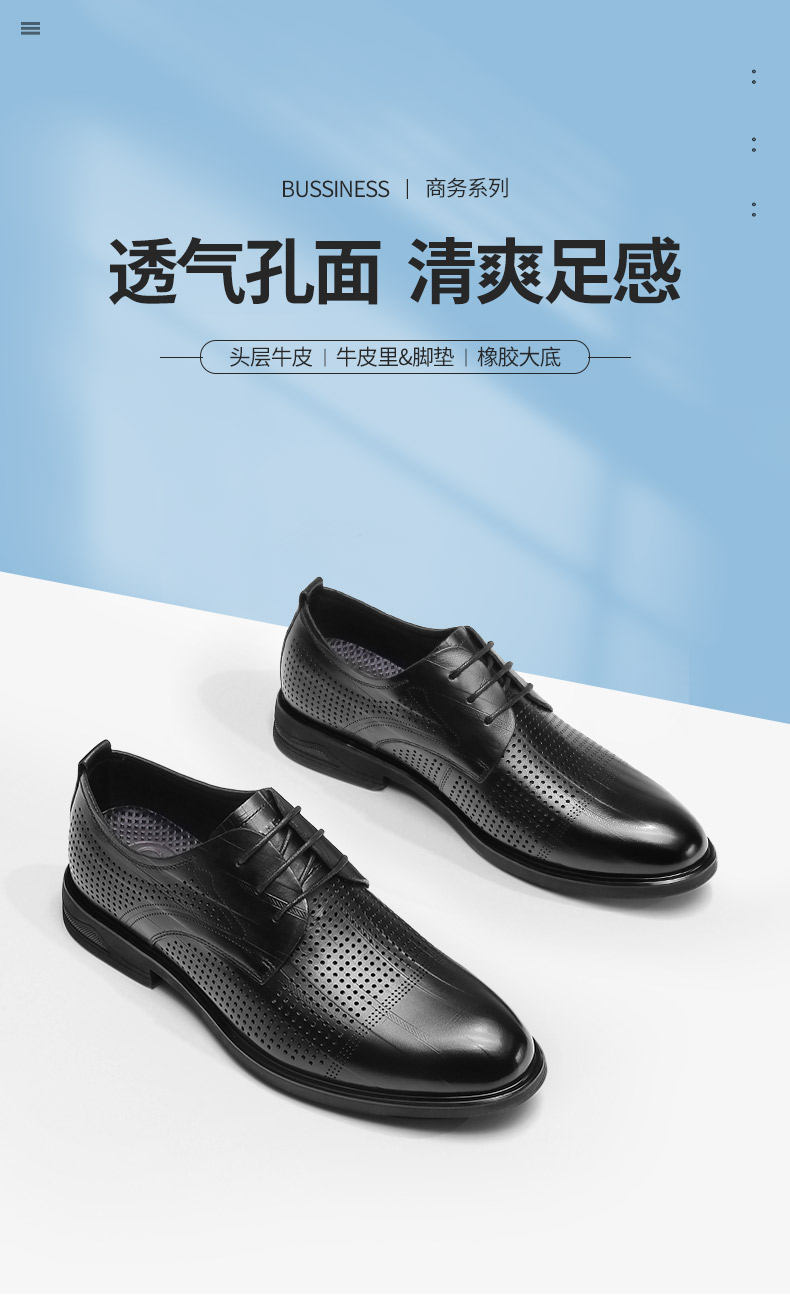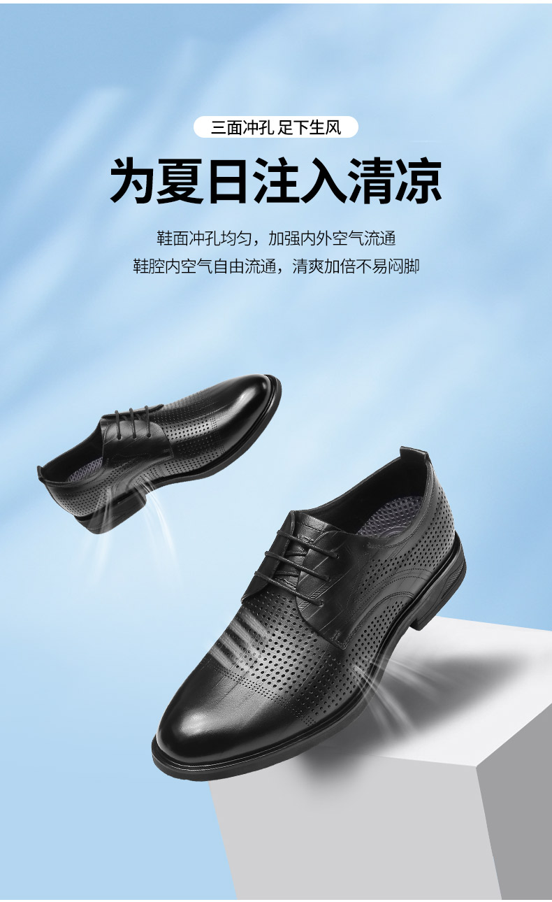 强人3515凉皮鞋男头层牛皮透气商务正装鞋镂空洞洞皮鞋男士婚鞋