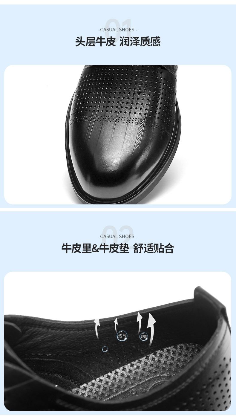 强人头层牛皮轻便舒适柔软透气男士日常休闲单皮鞋