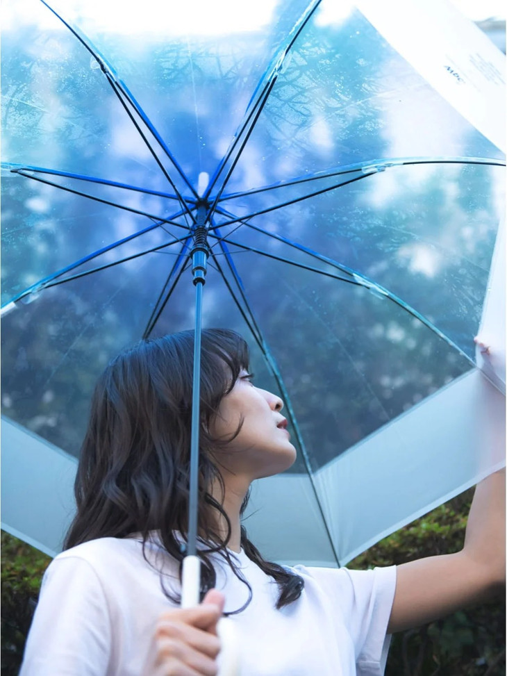 开伞关伞丝滑无比 收起伞来一气呵成,顺滑、省事、体面。 再也不用在雨中手忙脚乱 再也不用上公车后狼狈半天收不了伞! styleMamoru透明渐变雨伞 Colour|渐变蓝