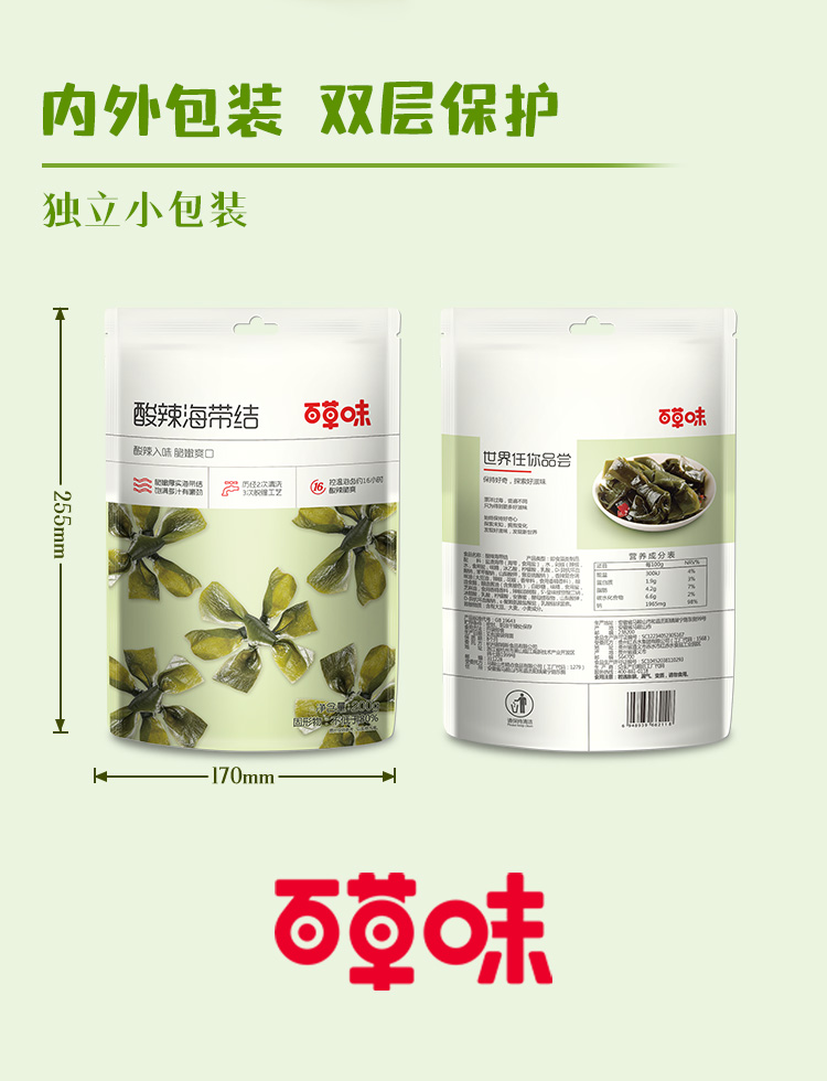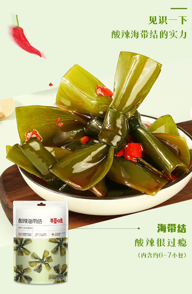 【满299减210】百草味酸辣味海带结200g 厚实肥美 酸辣脆爽