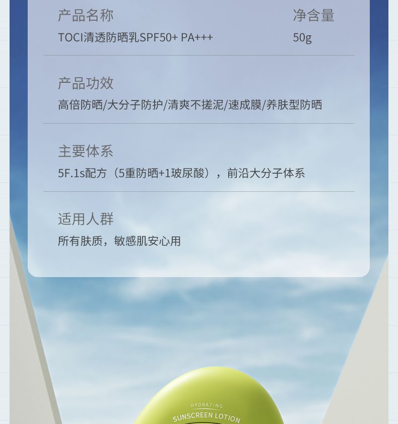 【爆款超低价预售 急单慎拍】TOCI大分子防晒霜SPF50+防紫外线50倍防晒隔离乳清爽不油腻