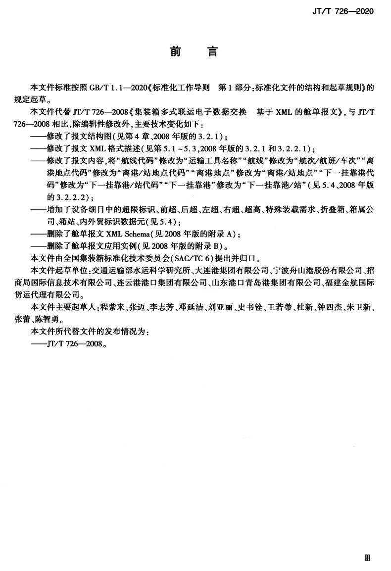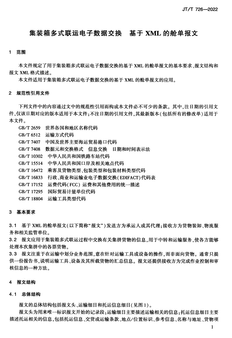 书名:集装箱多式联运电子数据交换 基于XML的舱单报文(JT/T 726—2022)
