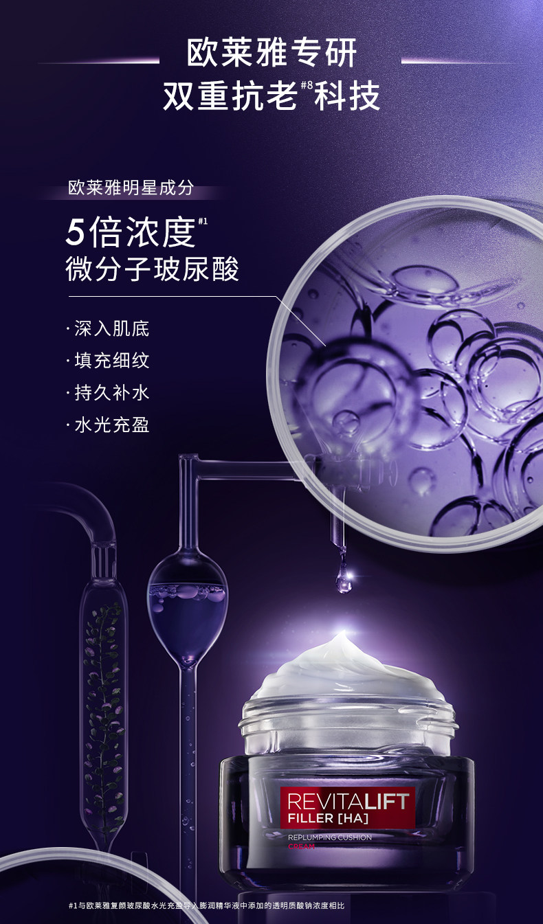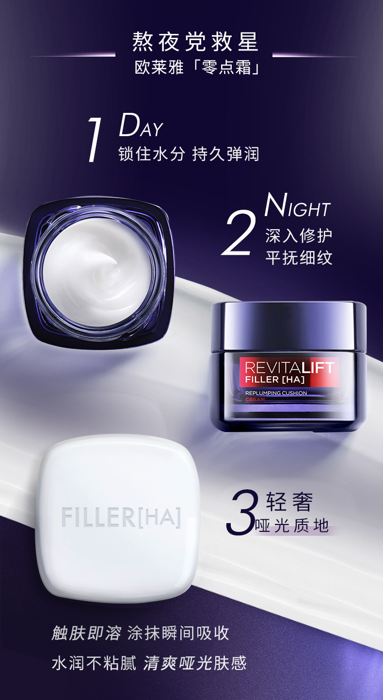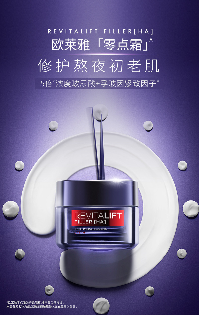 欧莱雅复颜玻尿酸水光充盈导入乳霜50ml/瓶(零点霜)