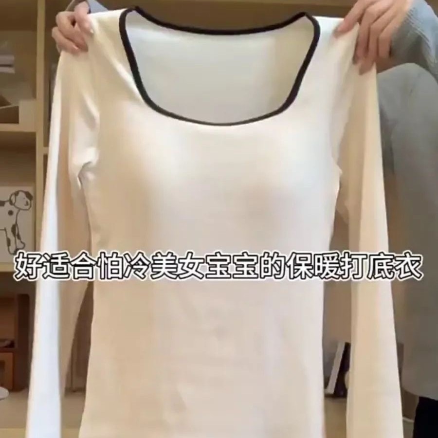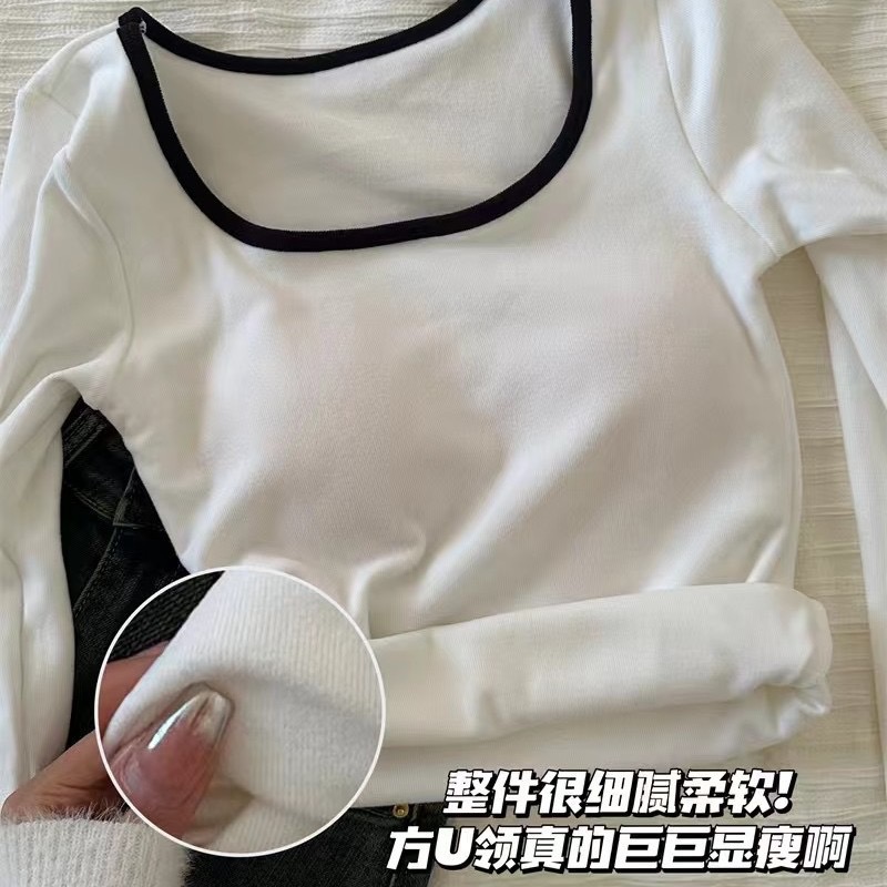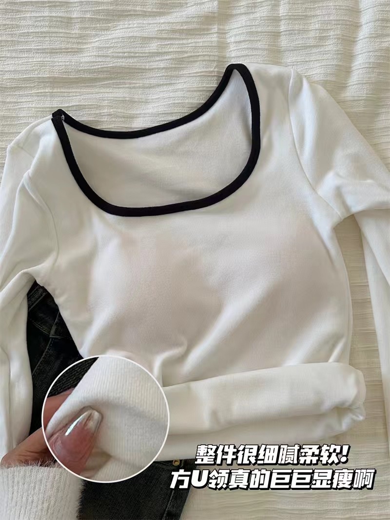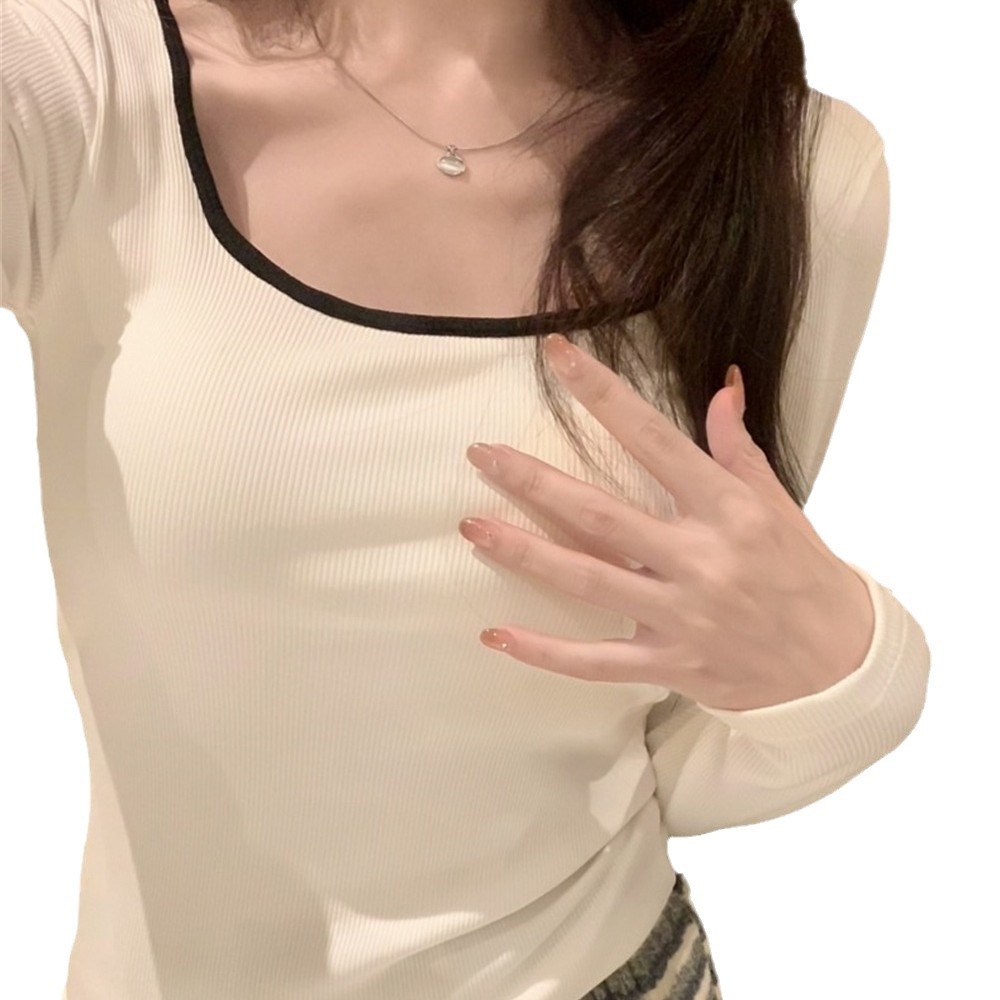 【GZ】无忧购26年春季59元2件带胸垫方领打底衫女内搭设计感小众撞色长袖T恤打底(截单后3-5天发货)