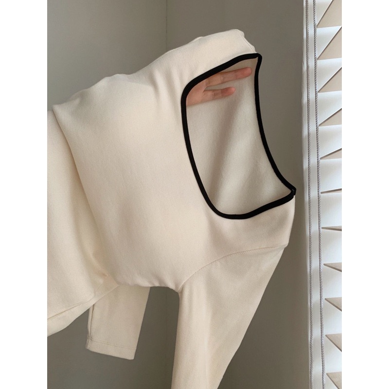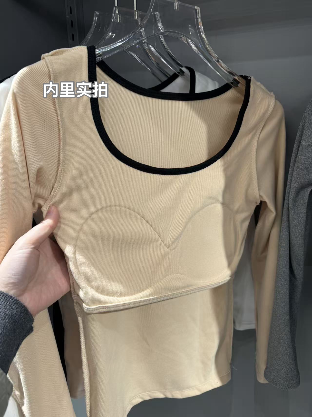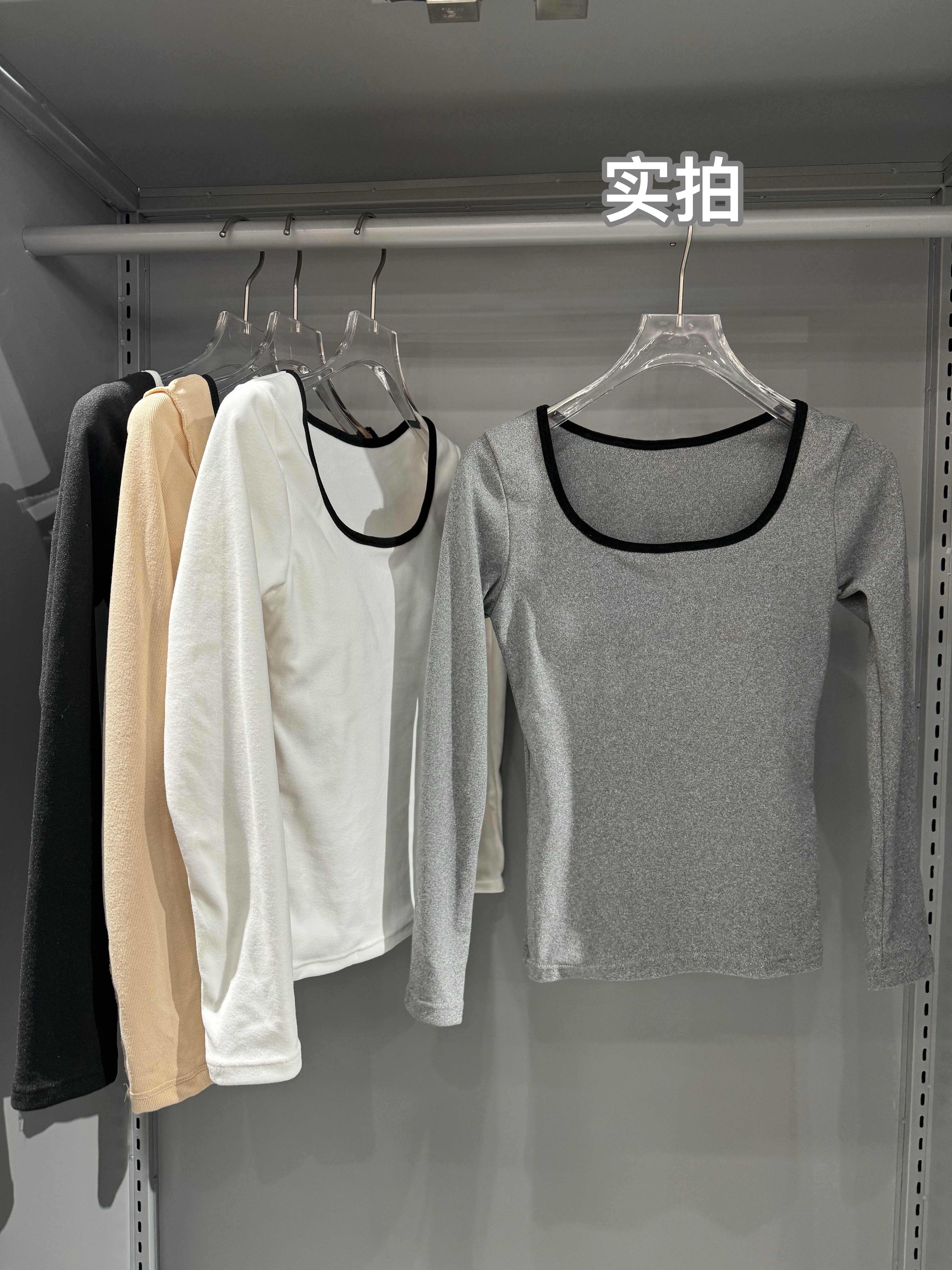 【GZ】无忧购26年春季59元2件带胸垫方领打底衫女内搭设计感小众撞色长袖T恤打底(截单后3-5天发货)
