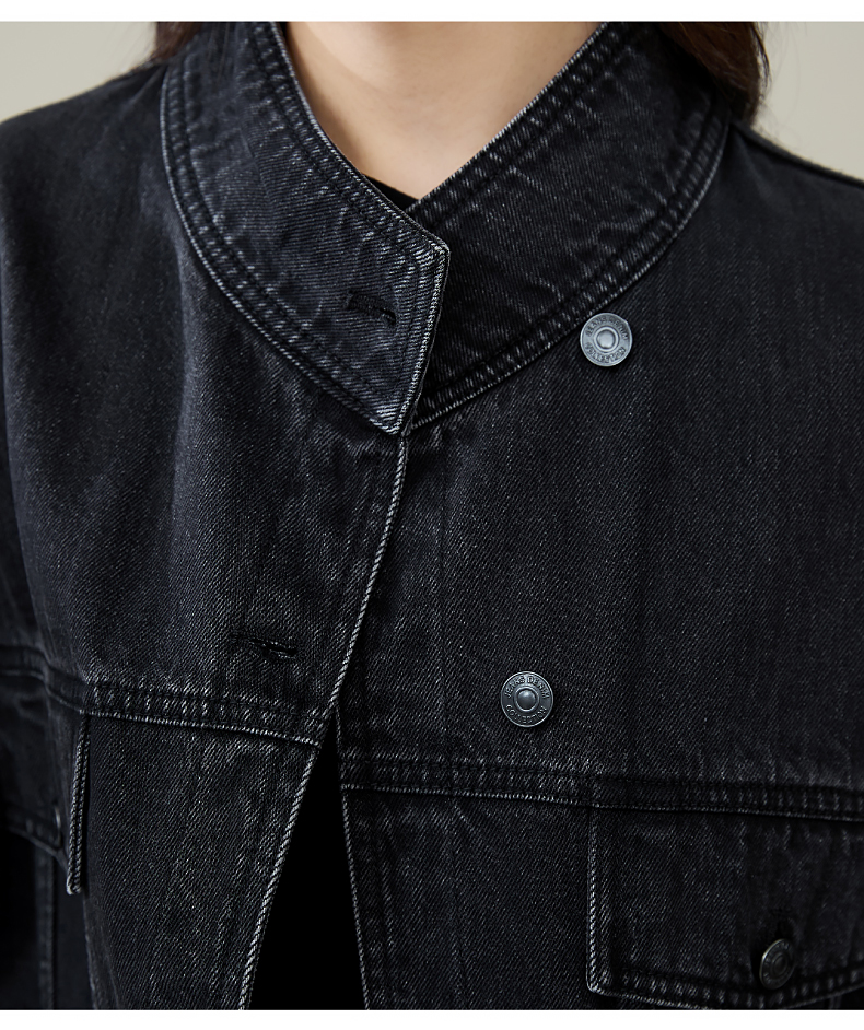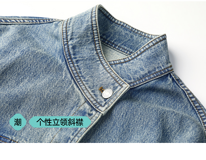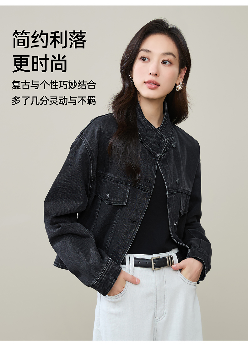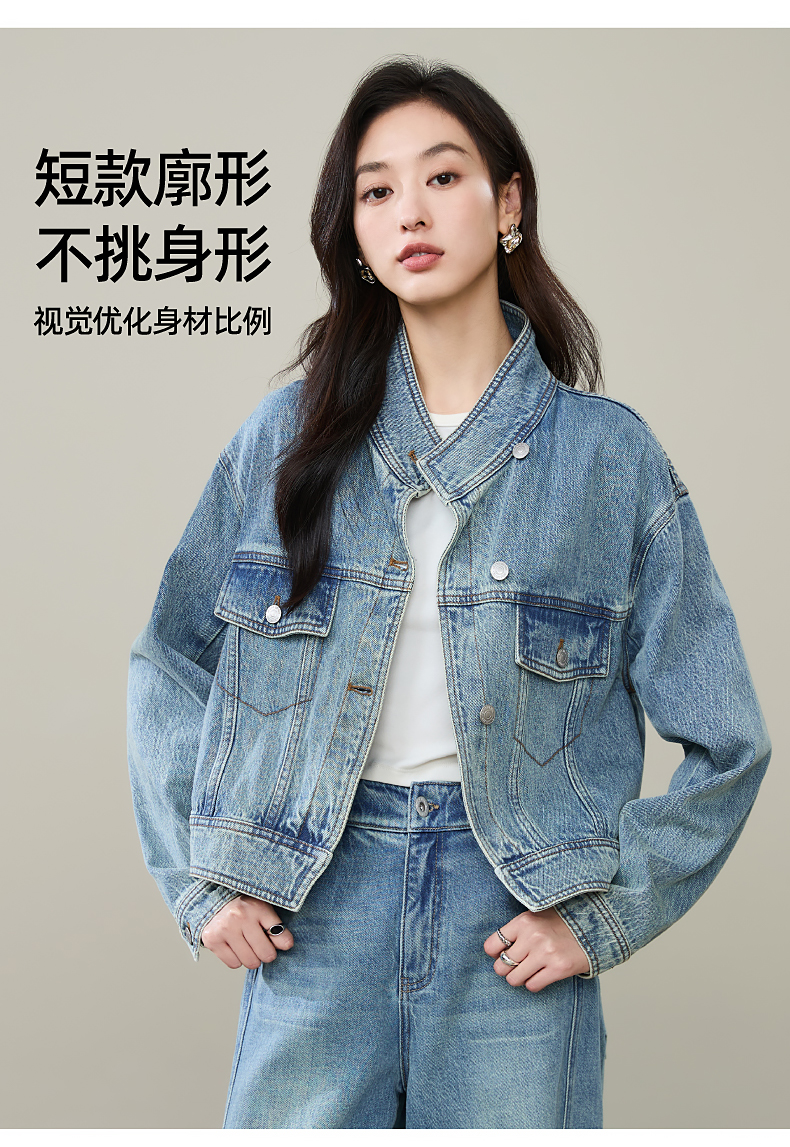 【立领-斜襟-牛仔外套】逸阳秋新品复古纯棉休闲夹克宽松显瘦牛仔短款上衣5211