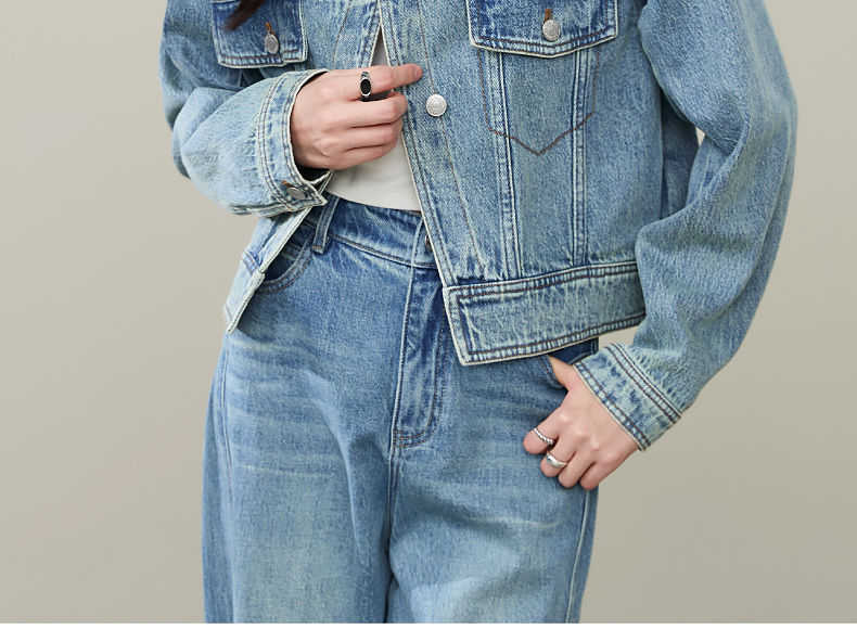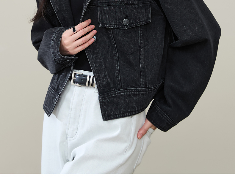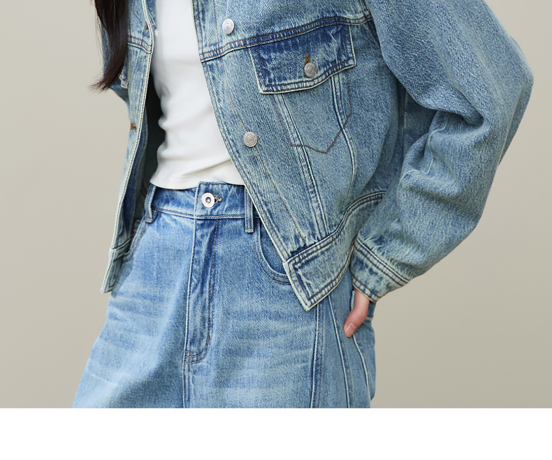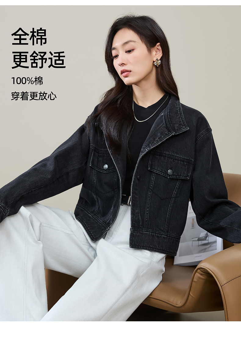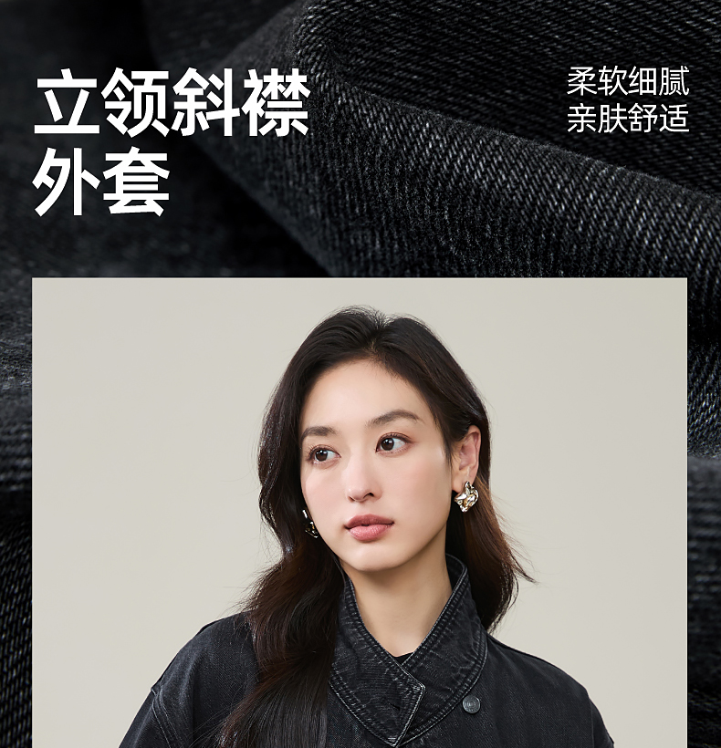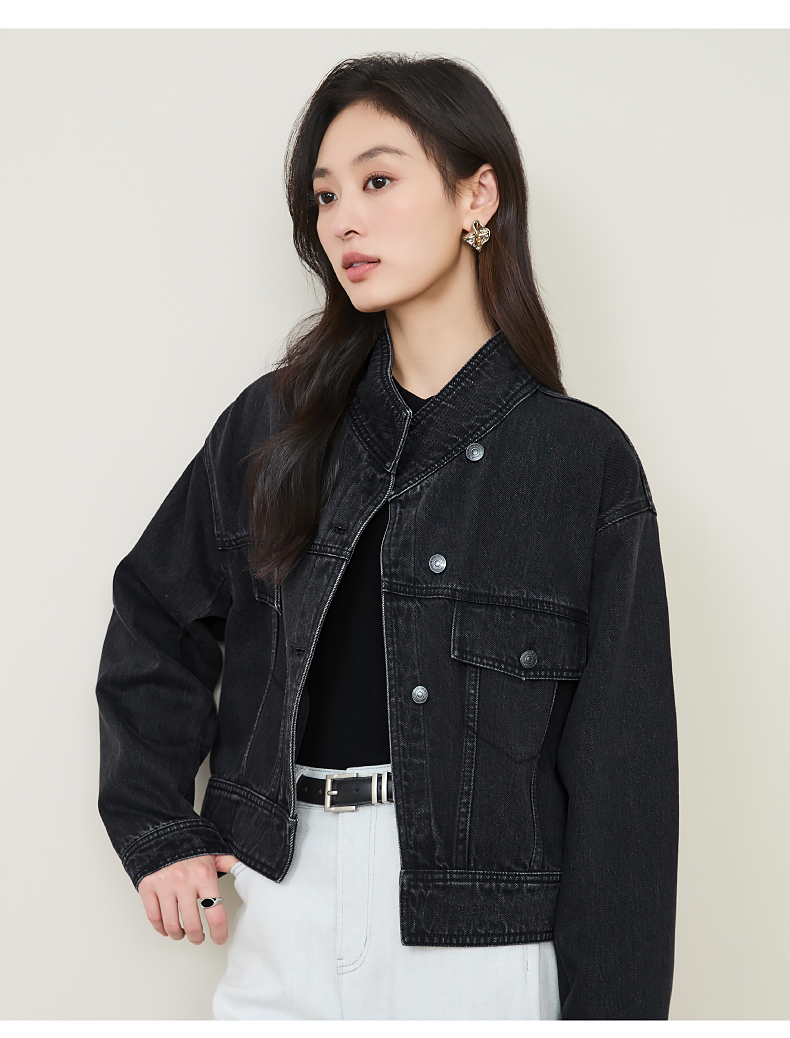 【立领-斜襟-牛仔外套】逸阳秋新品复古纯棉休闲夹克宽松显瘦牛仔短款上衣5211