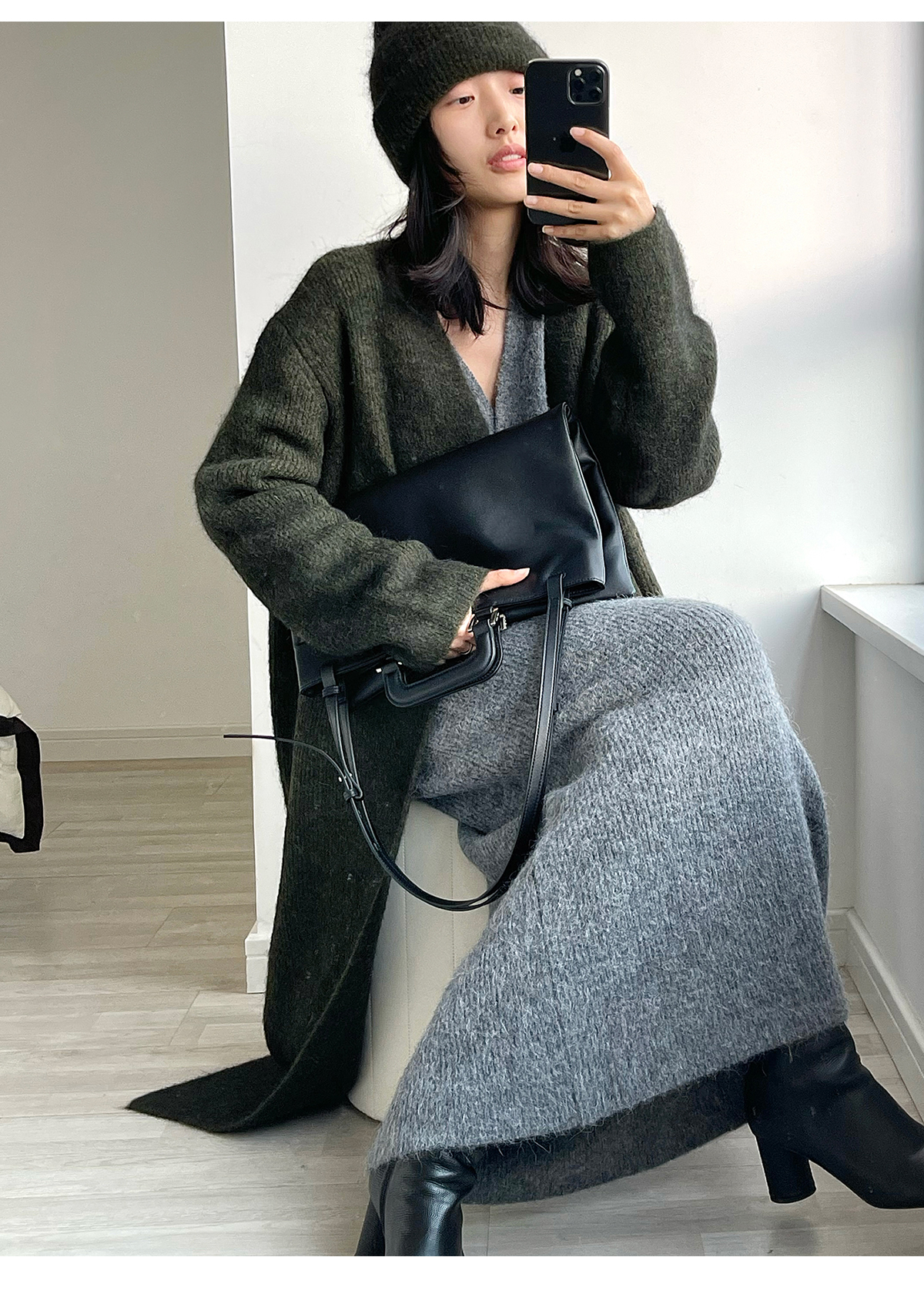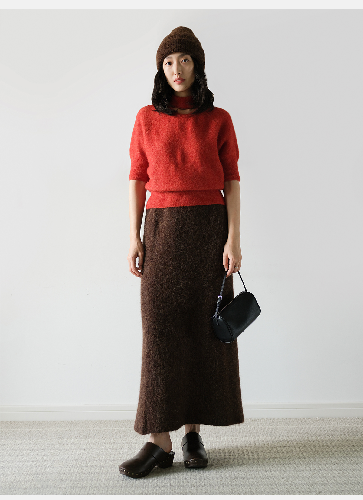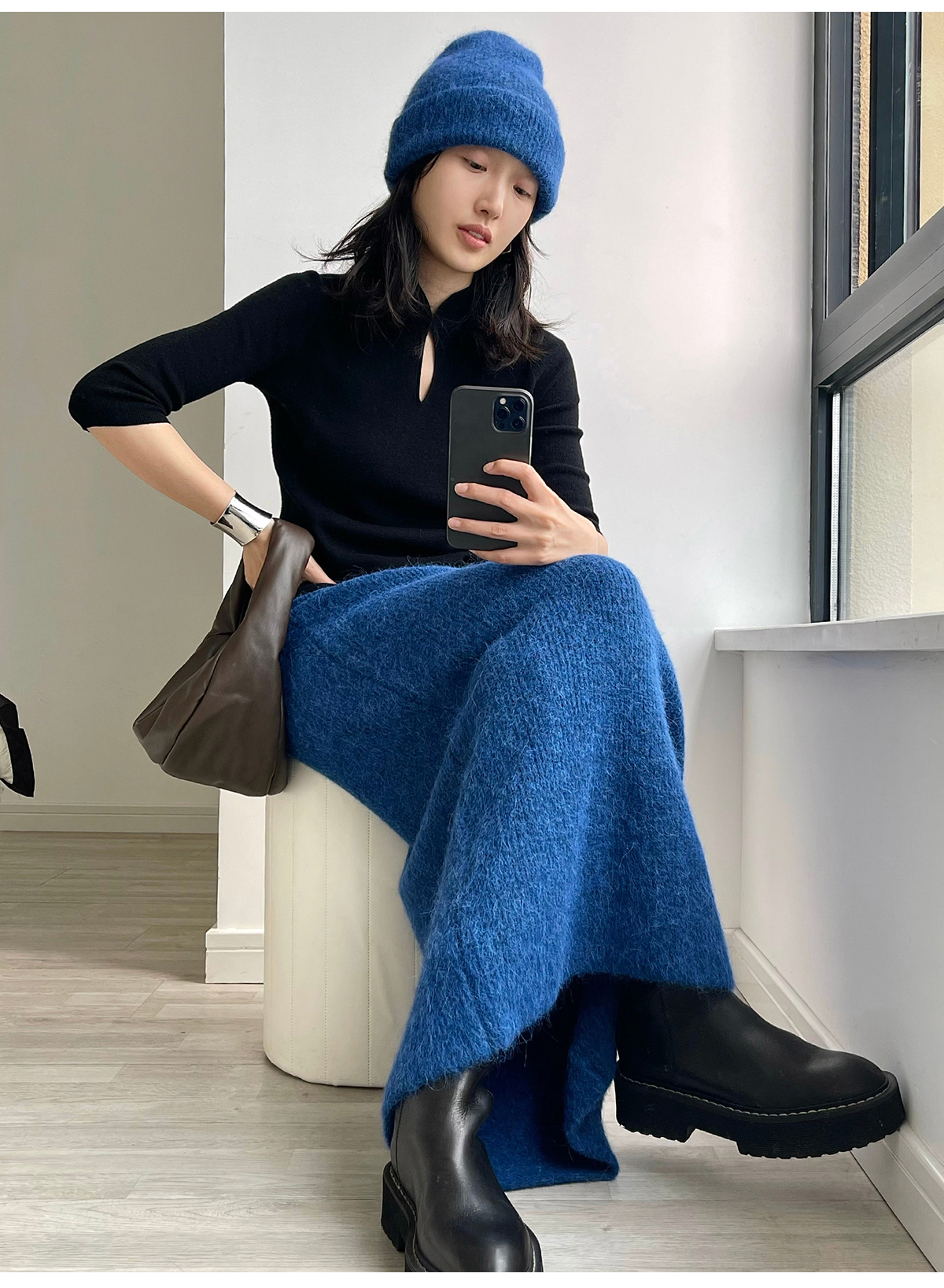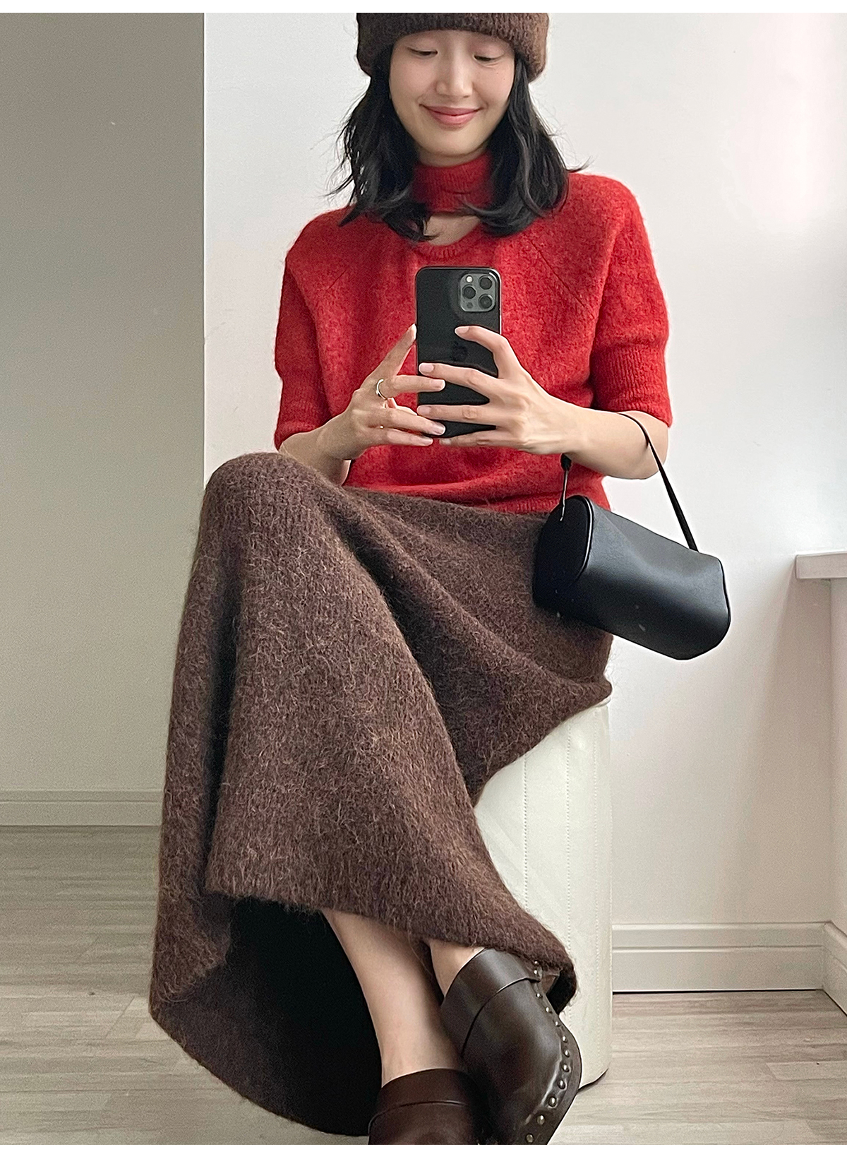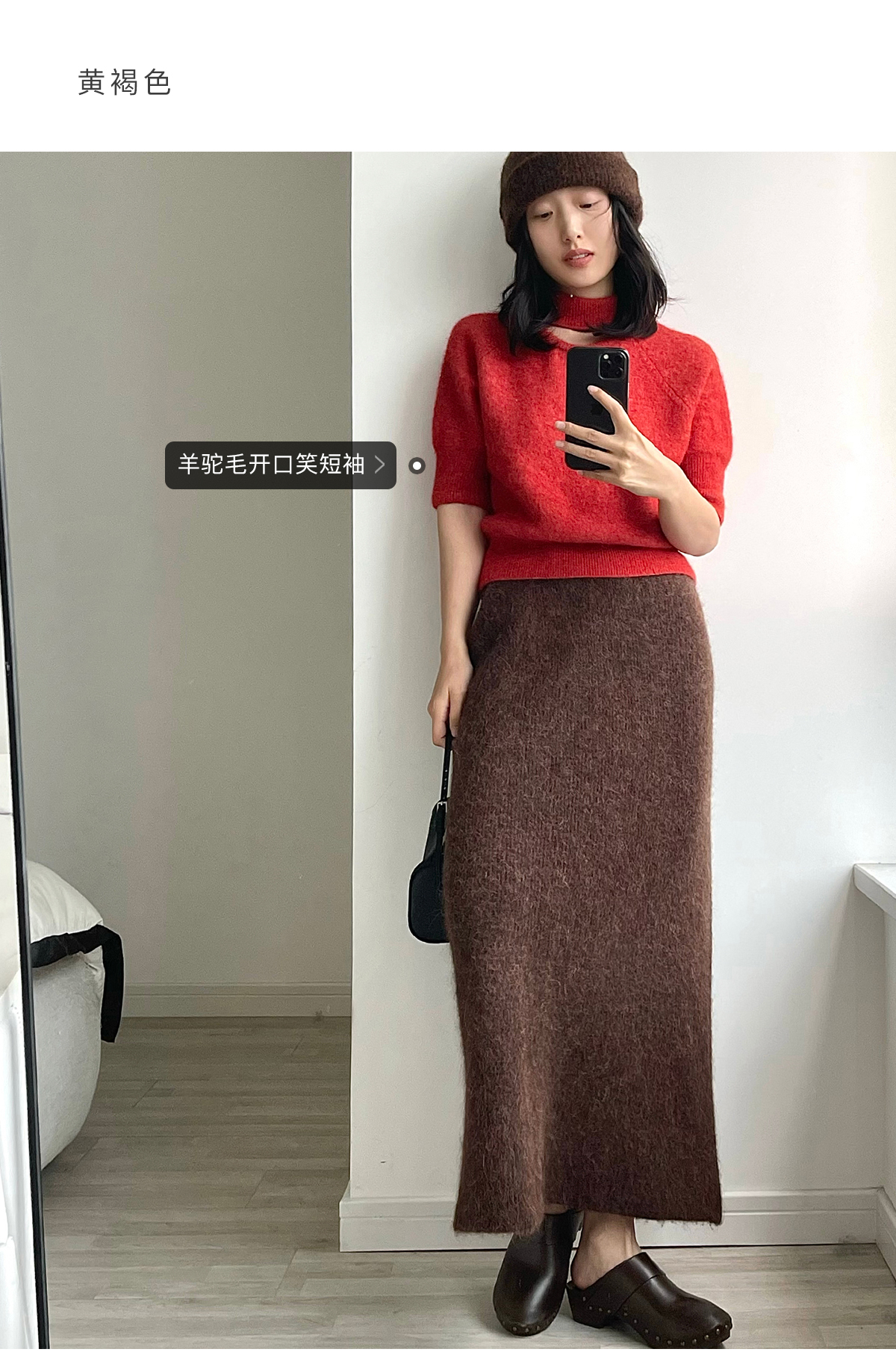 322工房天然触感羊驼毛针织半身裙2022冬款A字摆显瘦裙子女A992