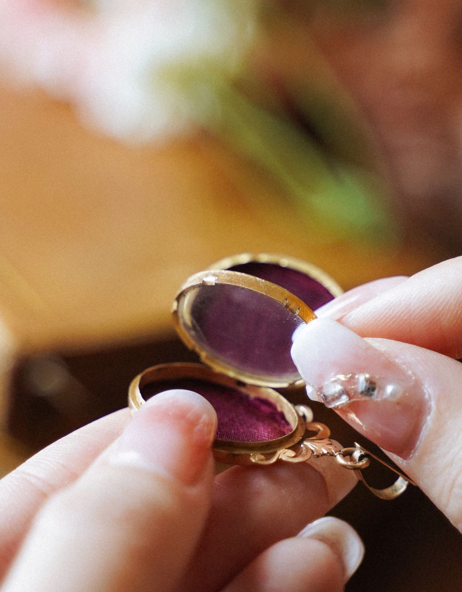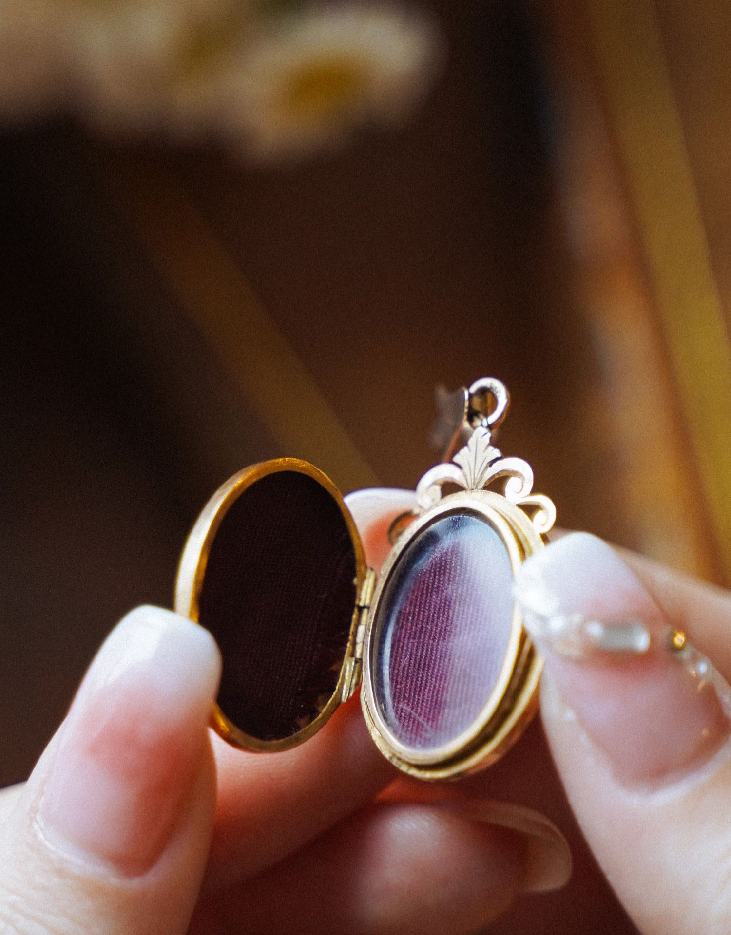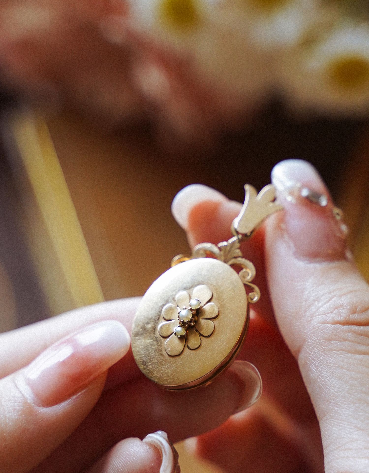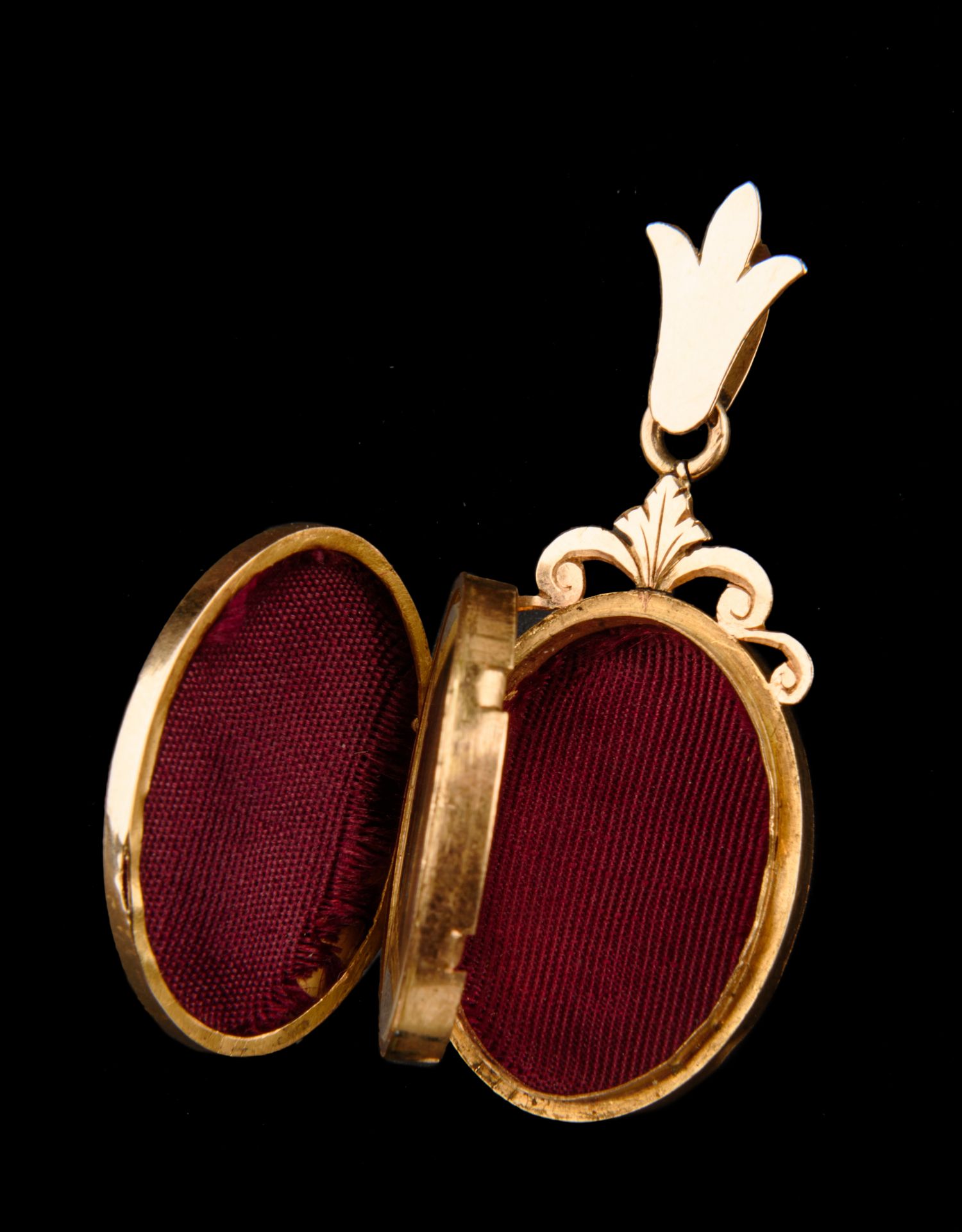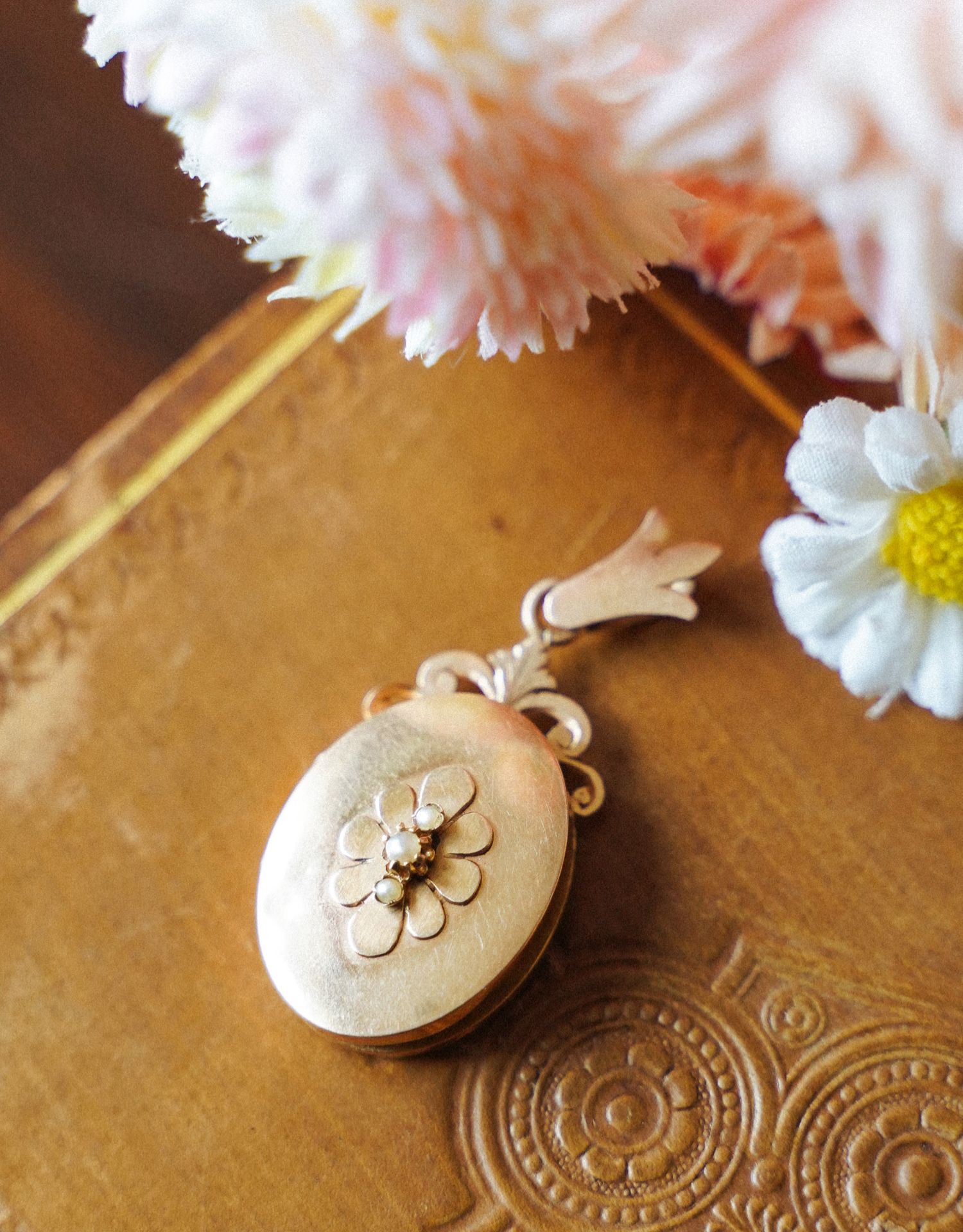 国内现货独角鹿西洋古董首饰鸢尾花扣头镶天然珍珠18k金相框吊坠