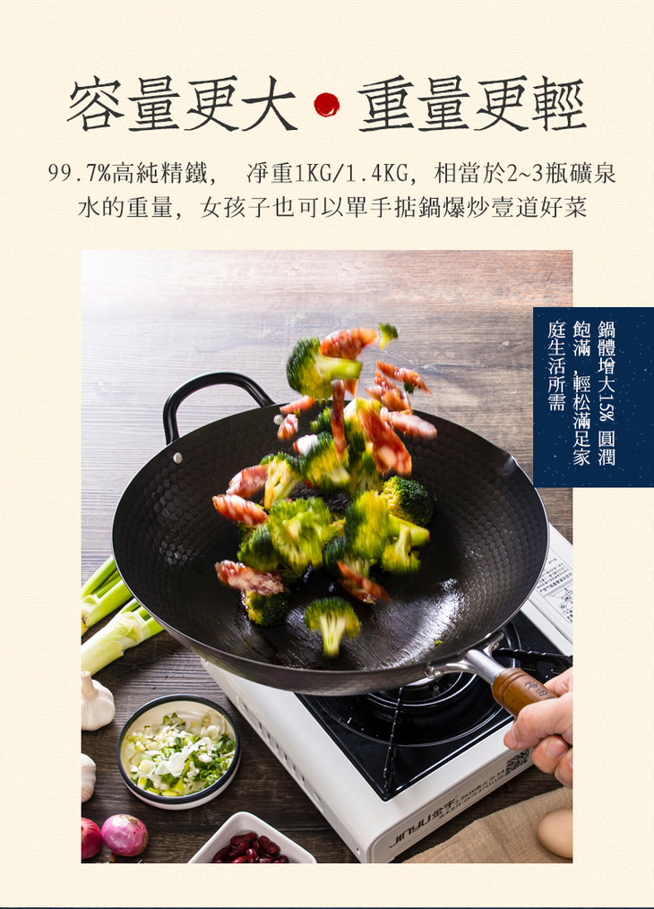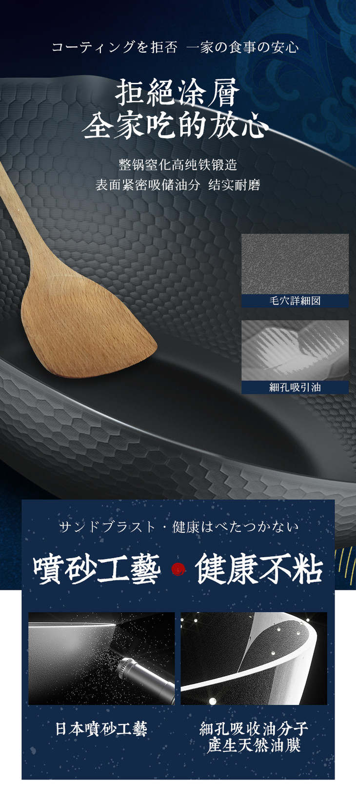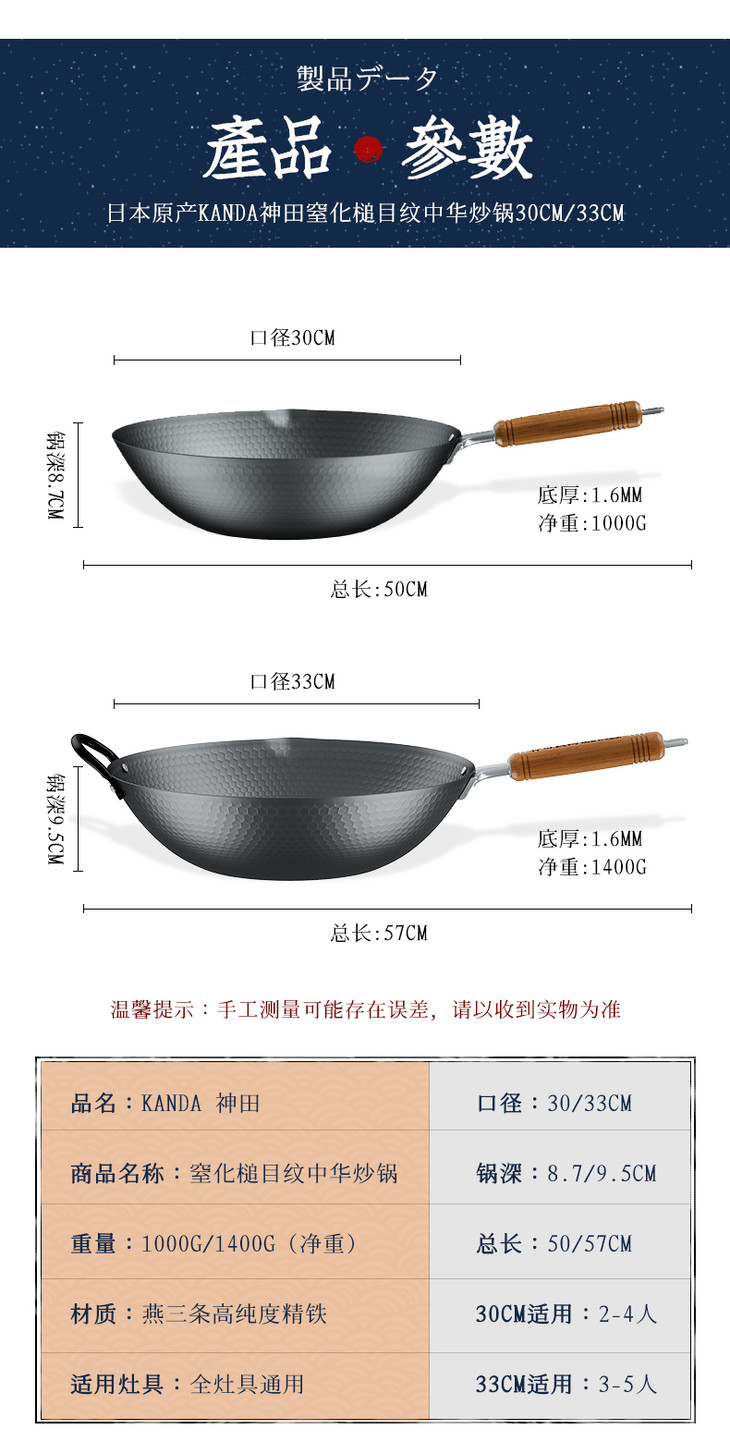 日本神田窒化槌目纹中华炒锅(锅+铲+盖)