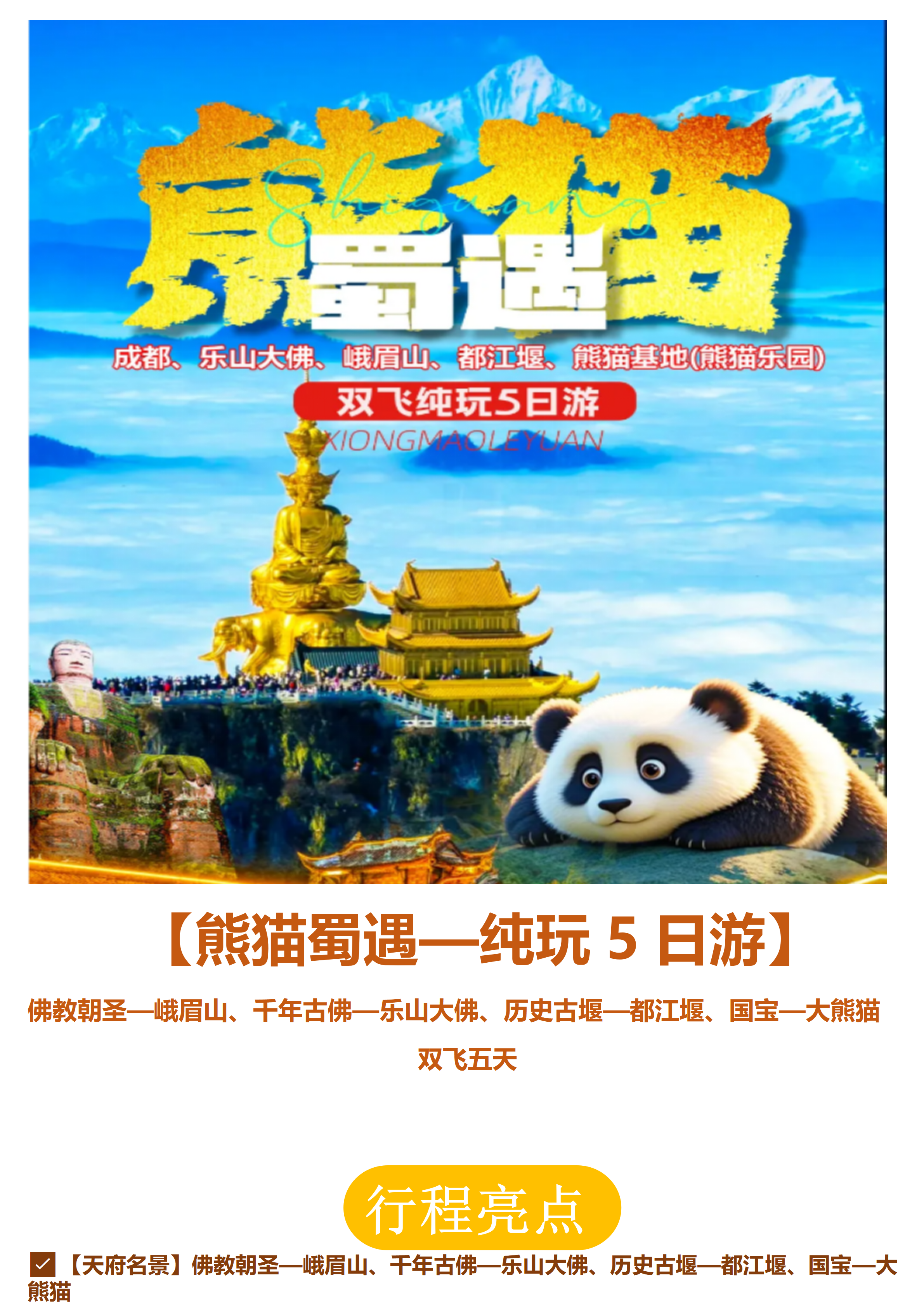熊猫蜀遇—双飞纯玩5日游