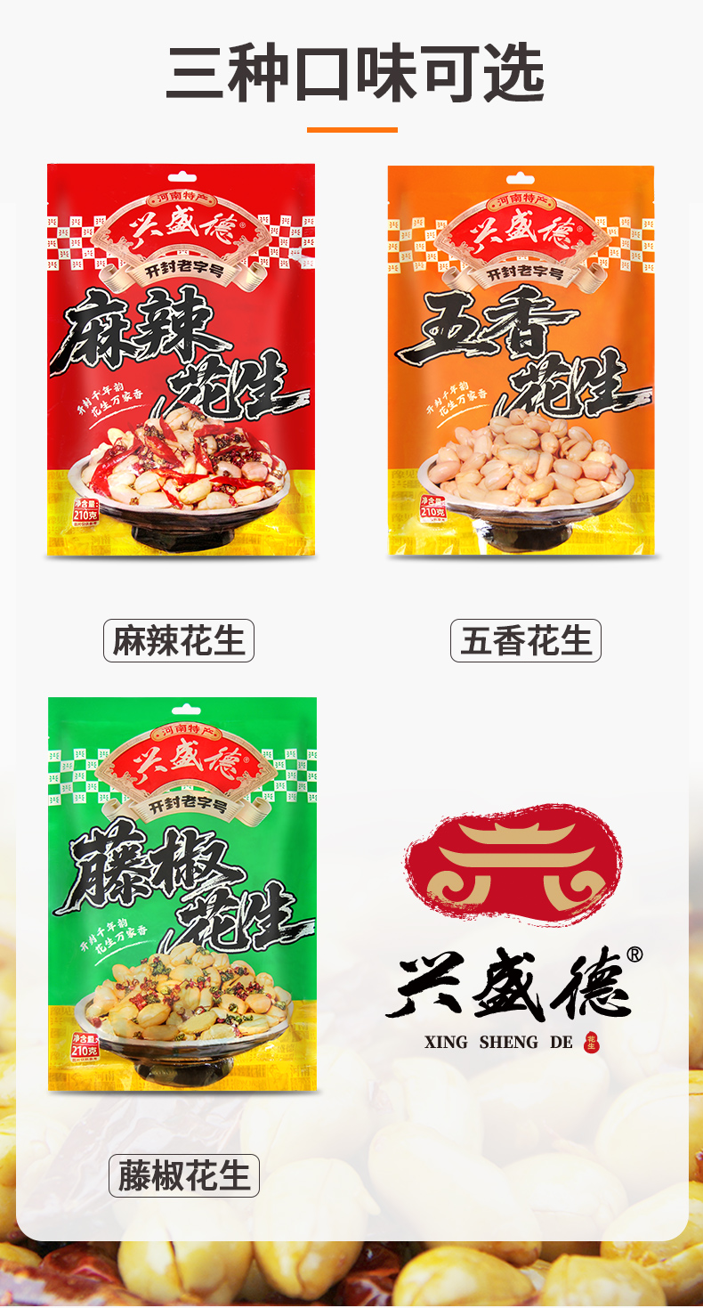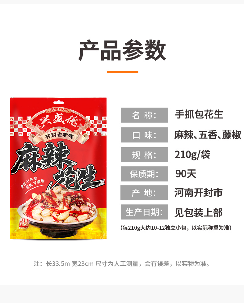 兴盛德手抓包袋装麻辣藤椒花生210g*6袋开封特产礼物下酒菜零食