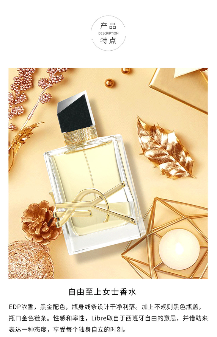 YSL/ysl 圣罗兰 自由至上LIBRE女士高颜值香水 自由之水浓香 EDP 30ml 50ml 90ml 送香水礼品袋【CDF】