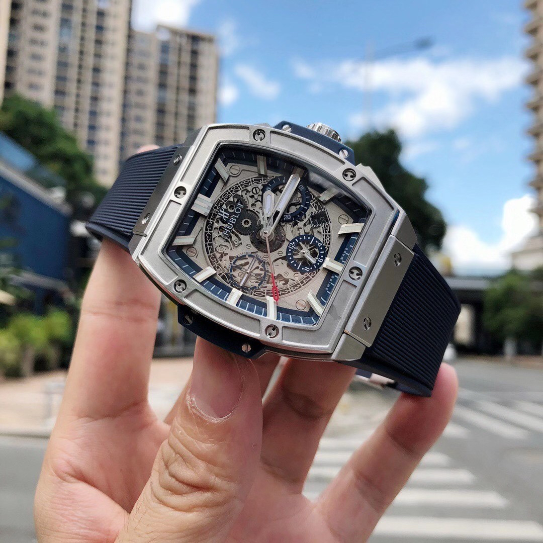 恒宝大爆炸计时款SPIRIT OF BIG BANG系列腕表!Hubiot宇舶表以赛车为灵感,推出全新Spirit of Big Bang限量腕!细节特点:全新Spirit of Big Bang腕表结合Spirit of Big Bang系列的所有标志性元素,包括酒桶形表壳,借助六枚H型螺丝构建"三明治"结构,传达"融合的技术"的理念。表壳直径45毫米,完美复刻,独家定制7750机芯,正品喷砂原装表扣,订制氟橡胶表带,更佳贴手