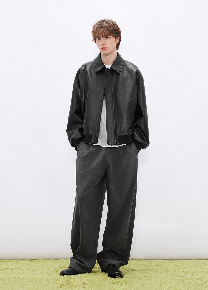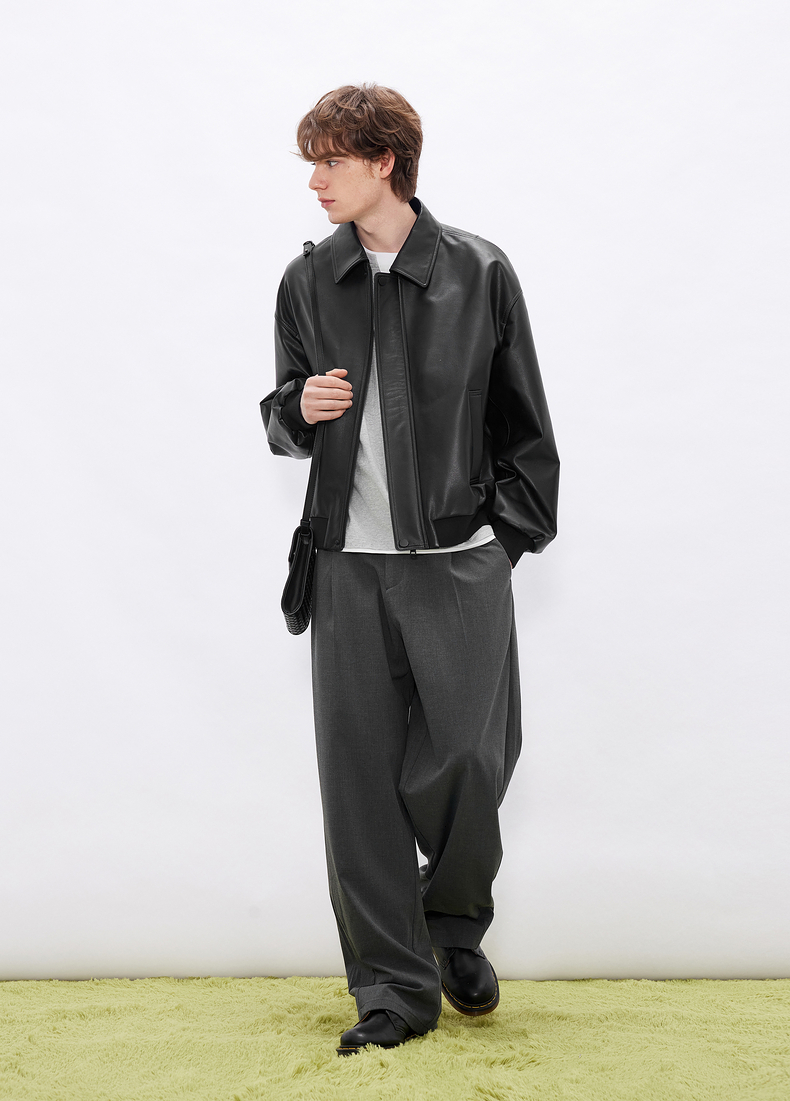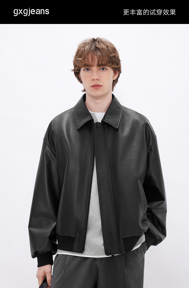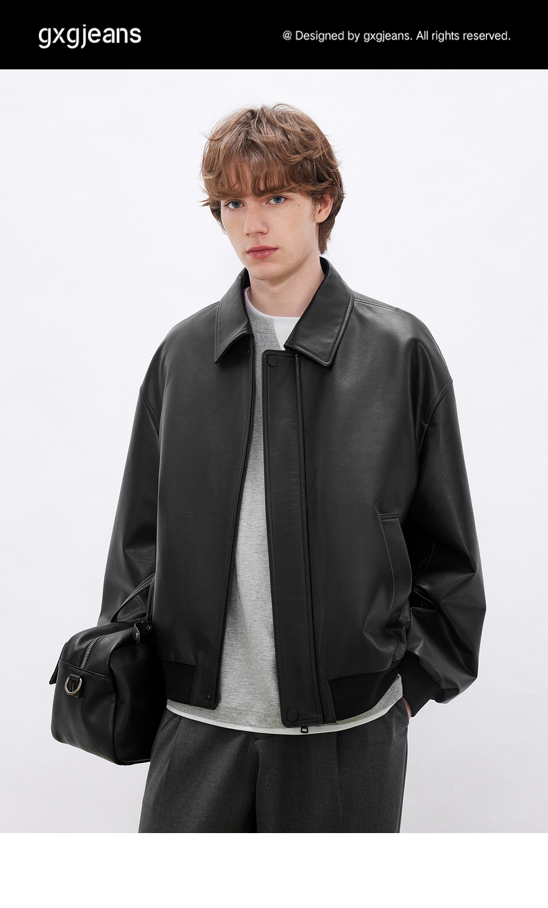 gxgjeans男装 简约设计宽松翻领真皮皮衣夹克外套男士 26春新品