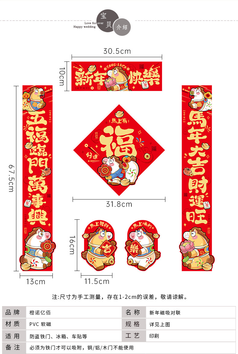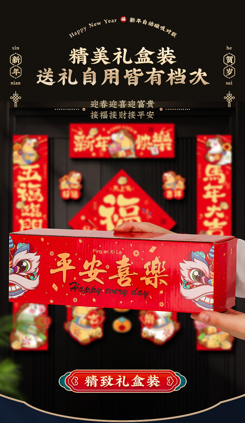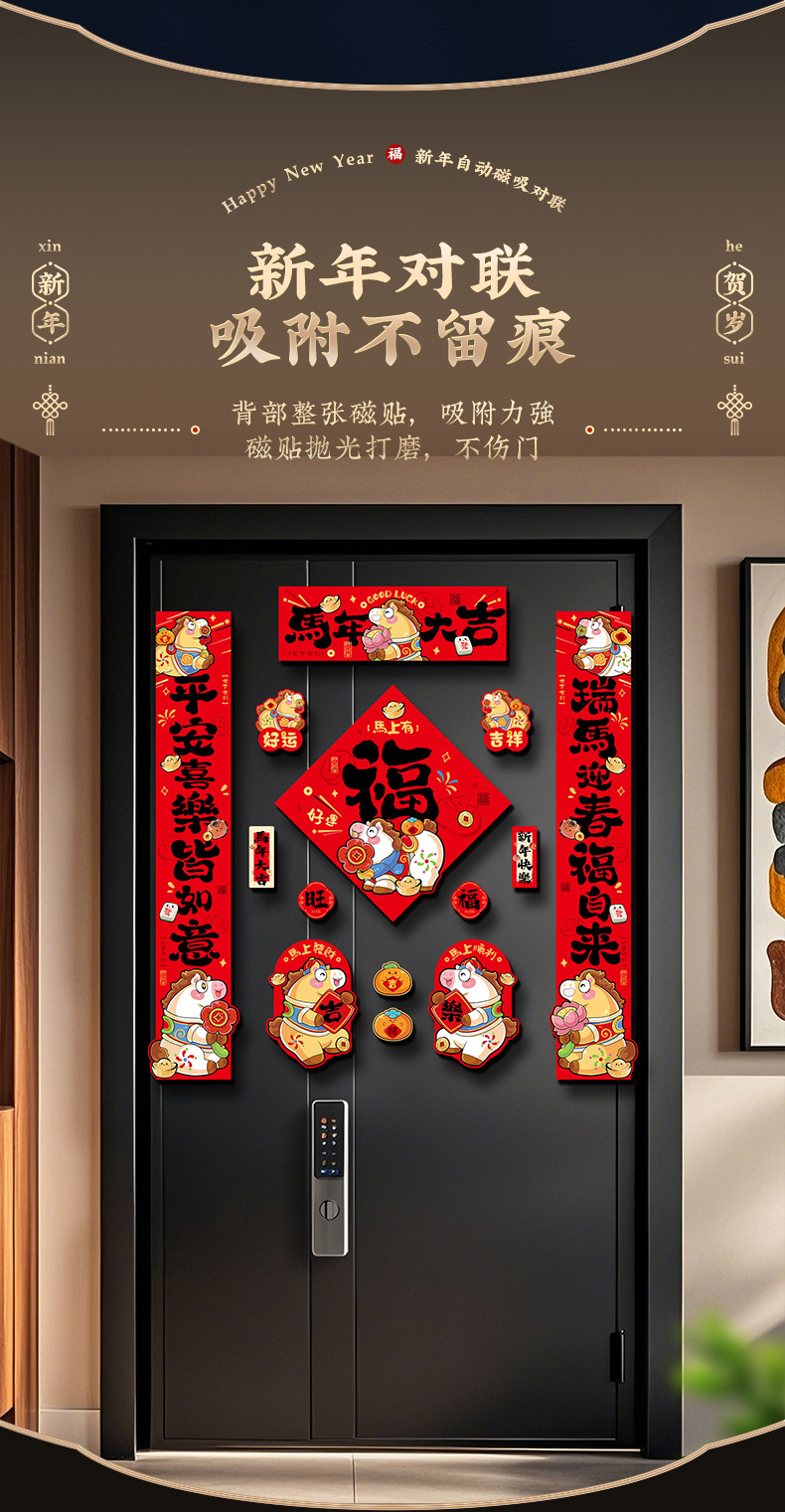 2026马年磁吸对联春联春节过年创意生肖福字入户门贴新年装饰