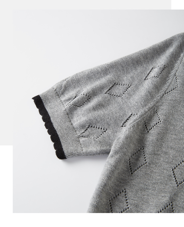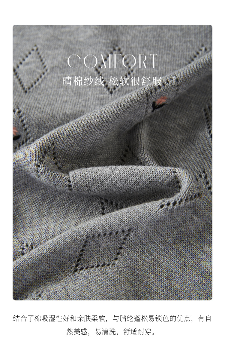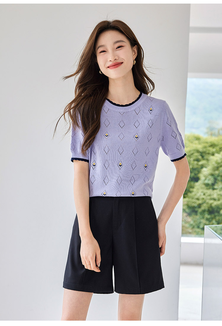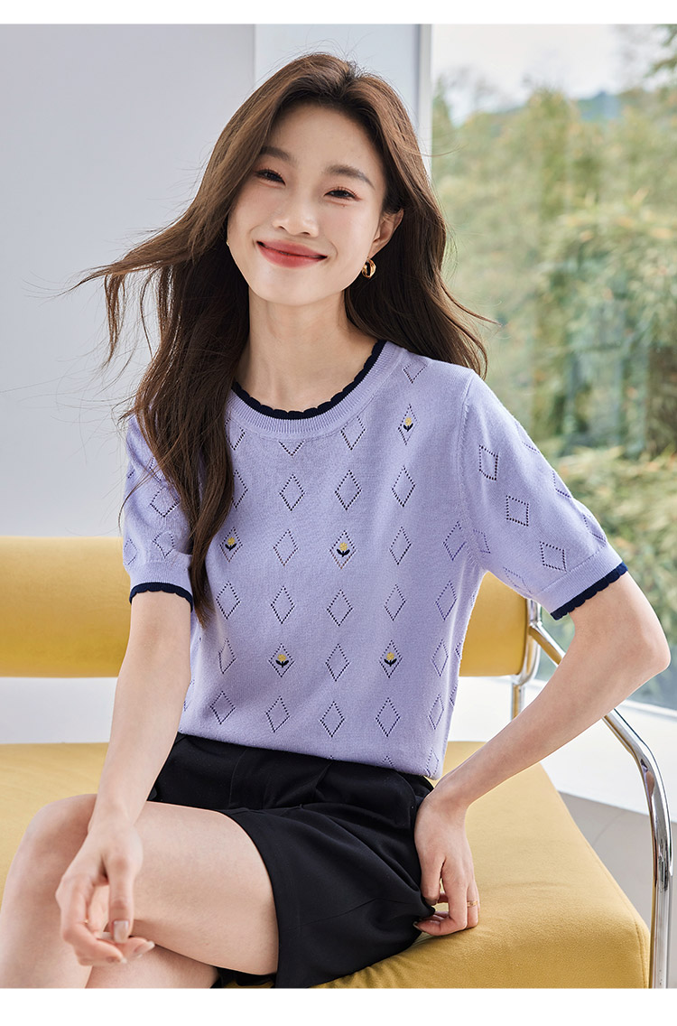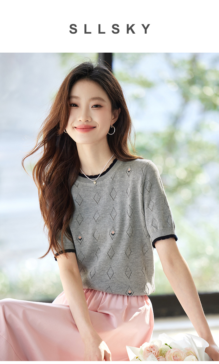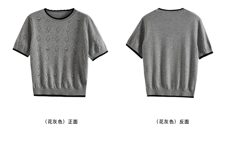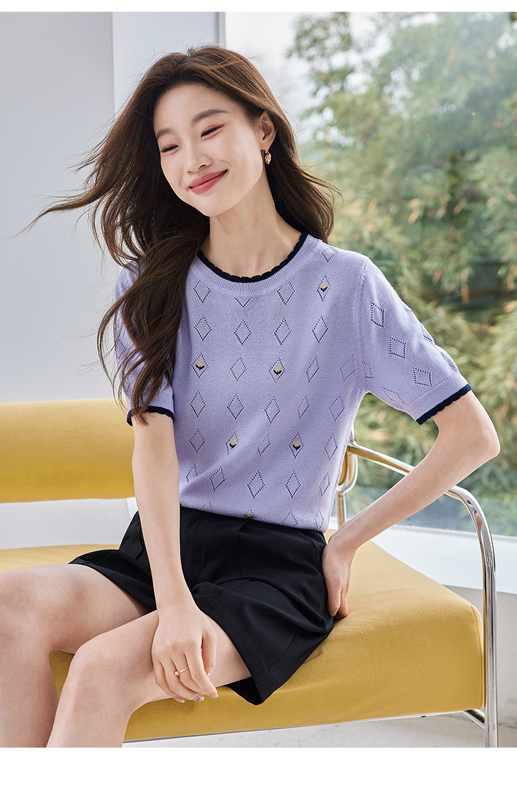 【专属特价】熙世界菱形镂空薄针织衫女短袖2025夏季新款复古刺绣半袖冰丝上衣