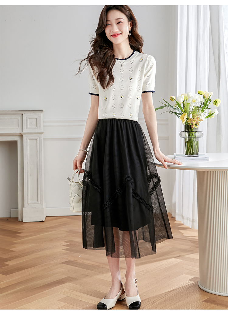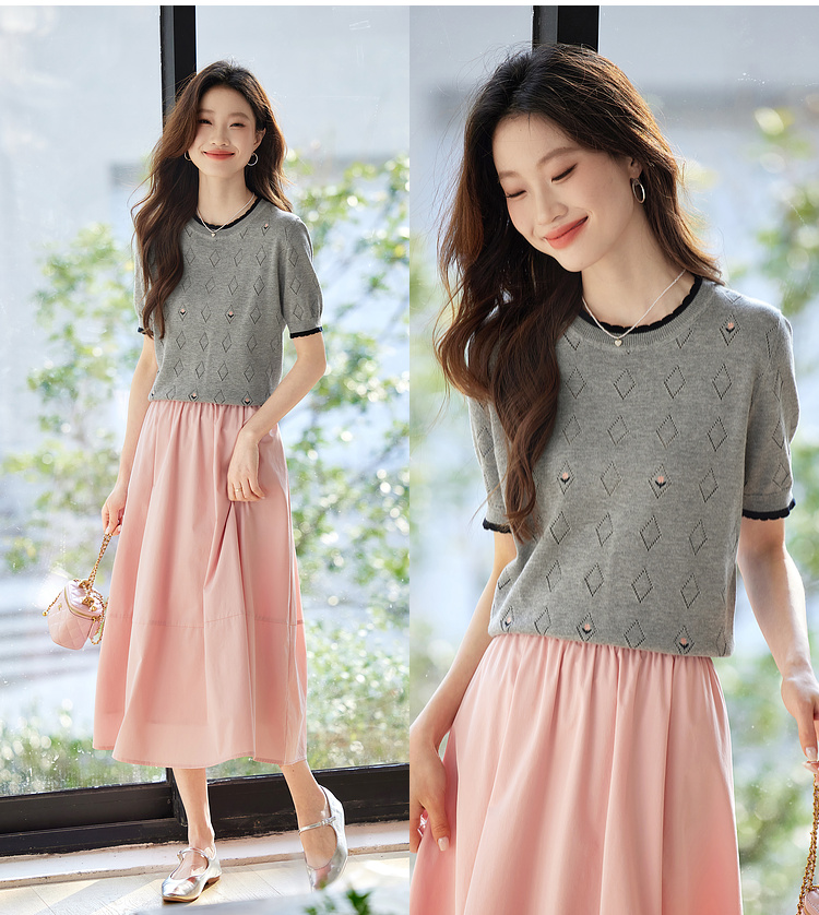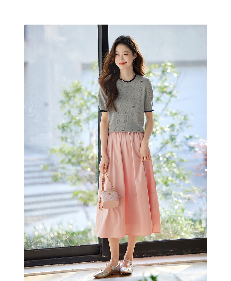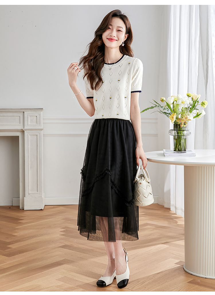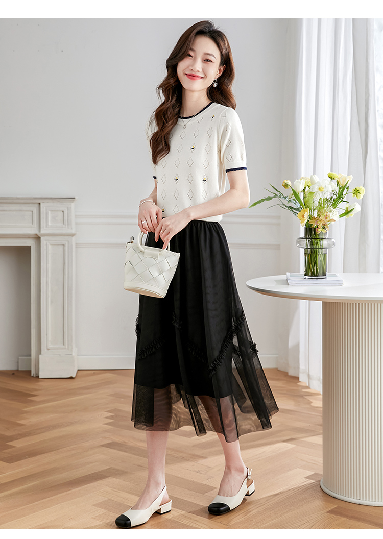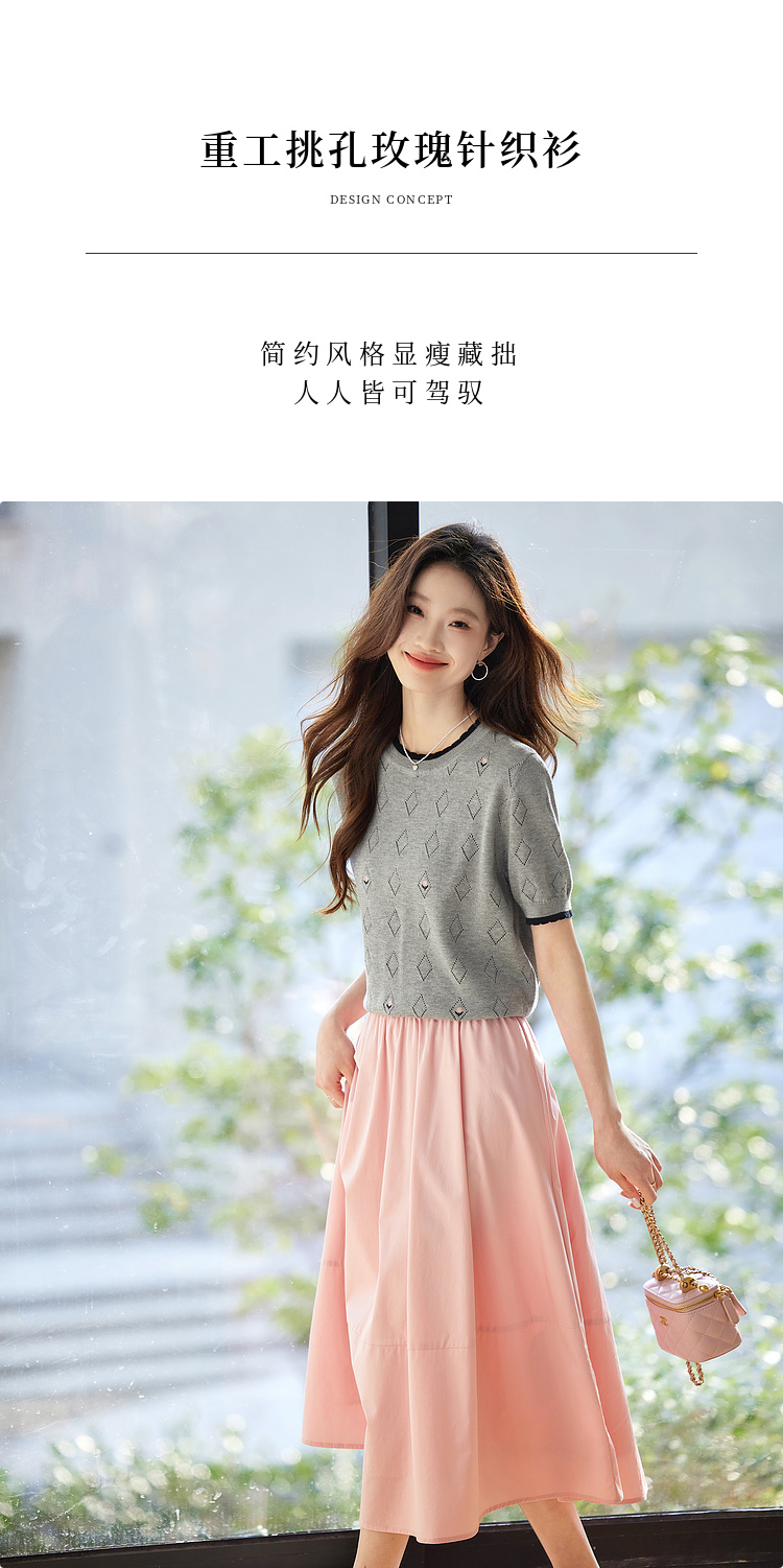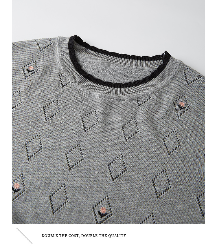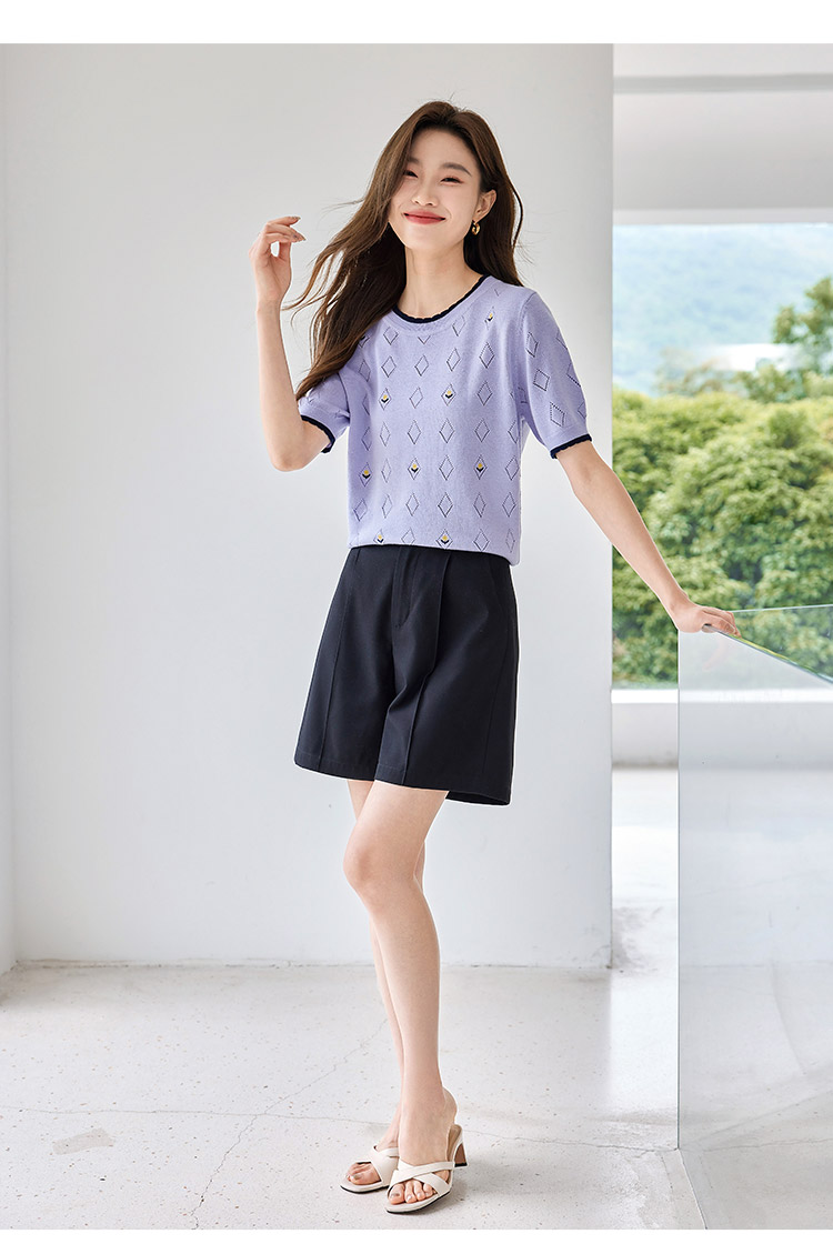 【专属特价】熙世界菱形镂空薄针织衫女短袖2025夏季新款复古刺绣半袖冰丝上衣