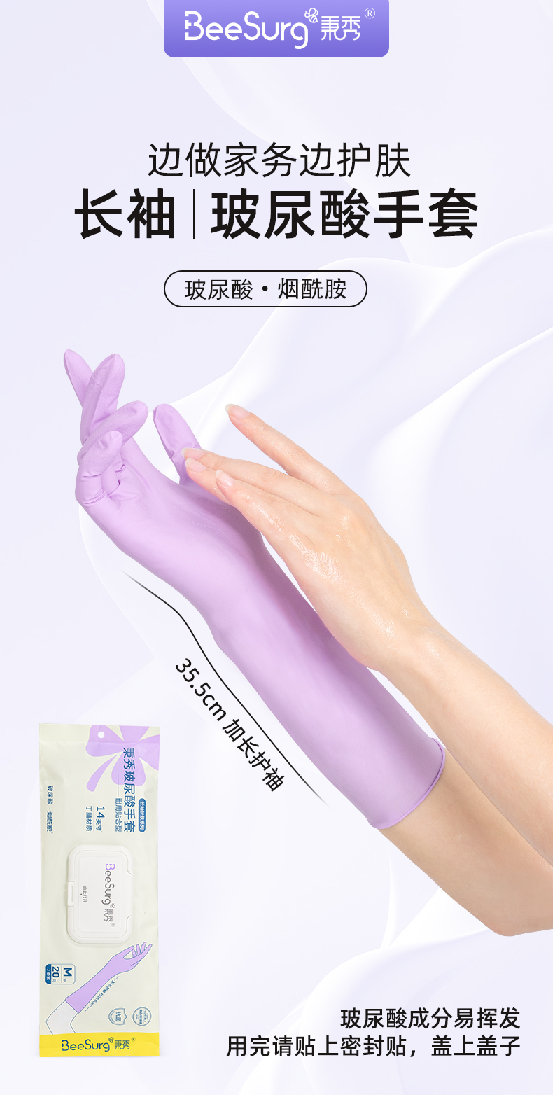 【品名】玻尿酸护肤丁腈手套