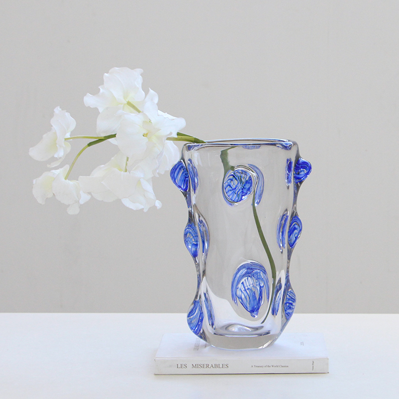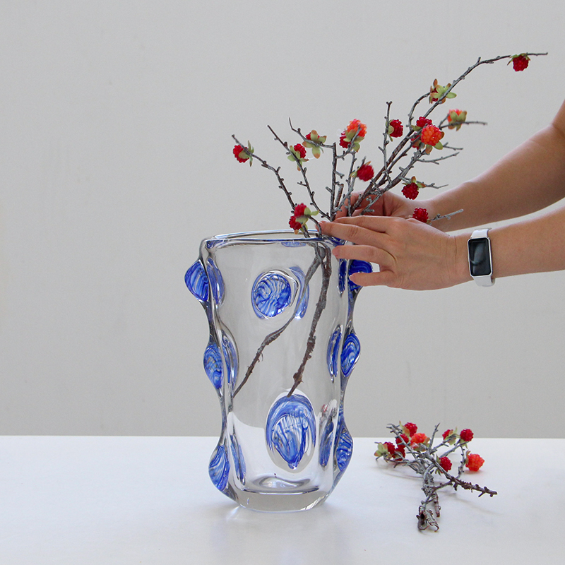 现代手工透明厚重玻璃花器摆件设计师样板间售楼处客厅软装饰简约