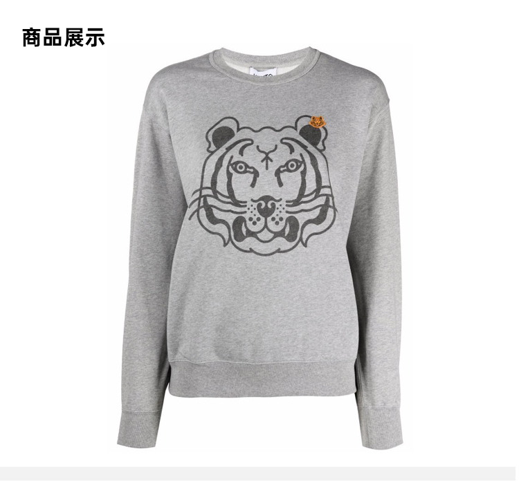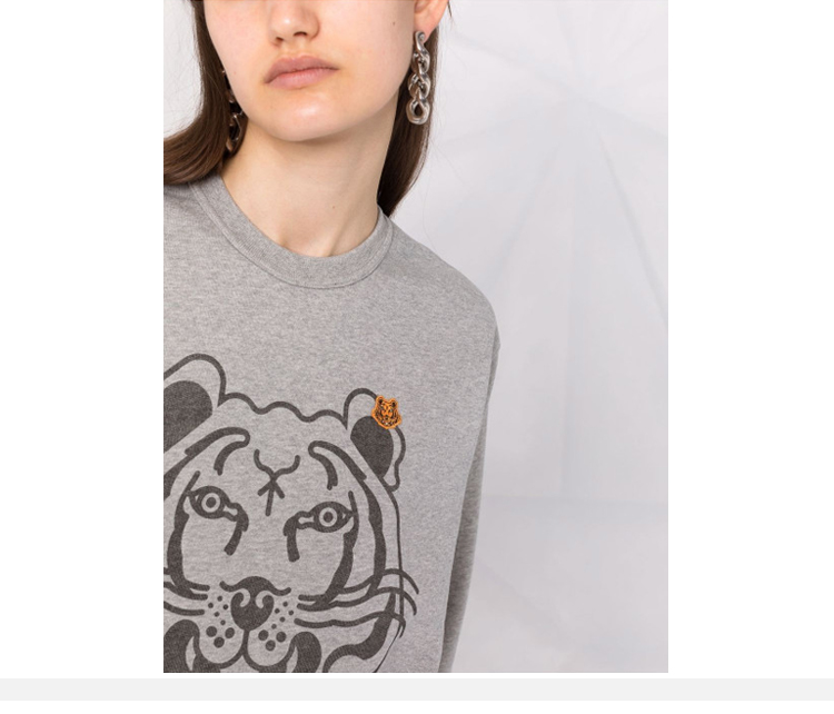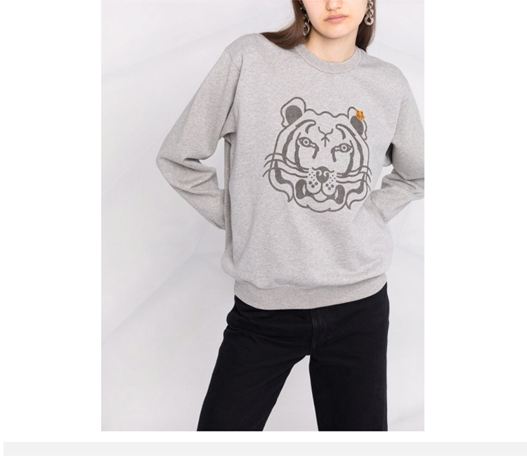 KENZO 高田贤三 虎头印花+小老虎 女士卫衣 灰色 FB62 SW831 4MO 94
