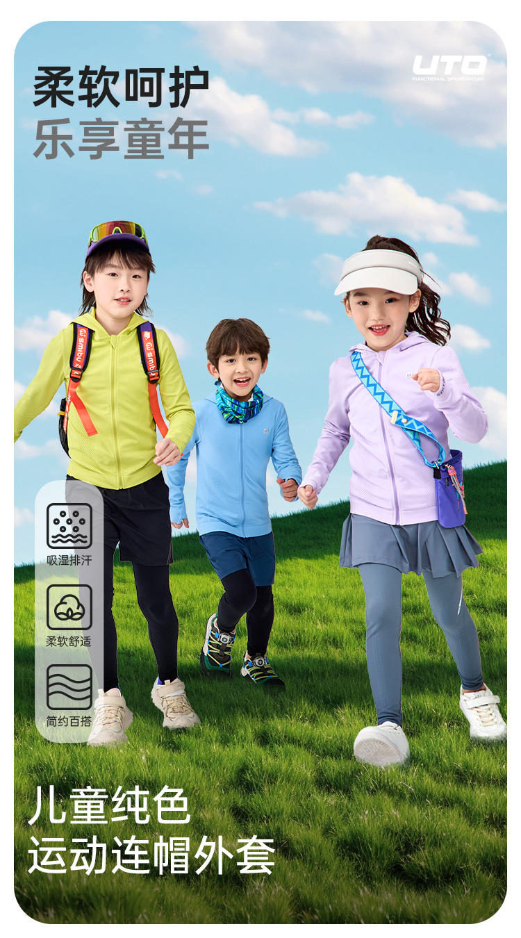 UTO儿童纯色运动连帽外套