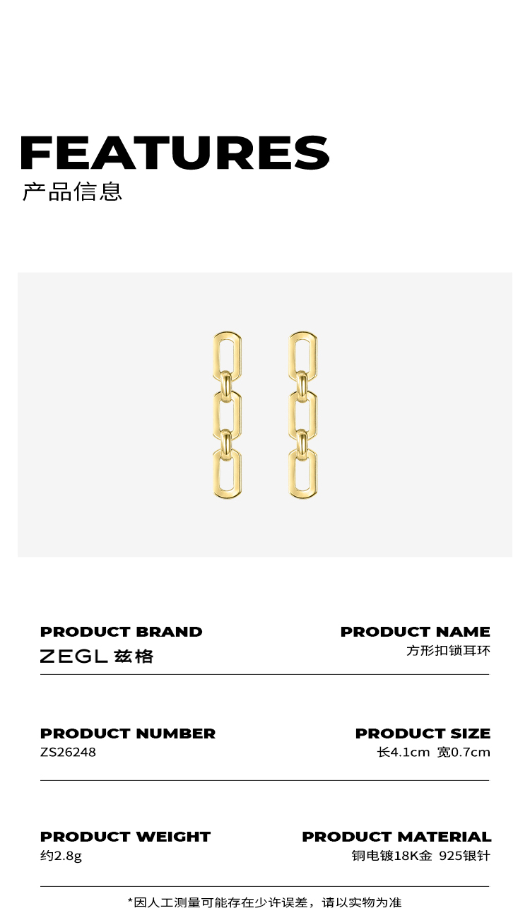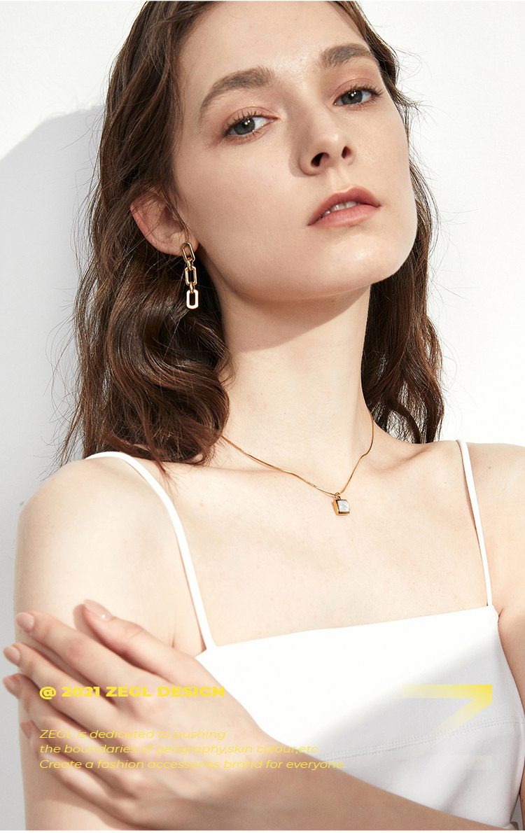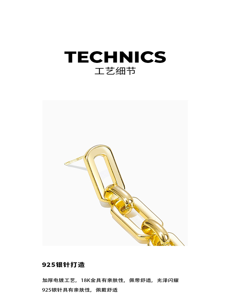 ZEGL链条耳环女秋冬小众设计感2022年新款冷淡风长款耳钉银针耳饰
