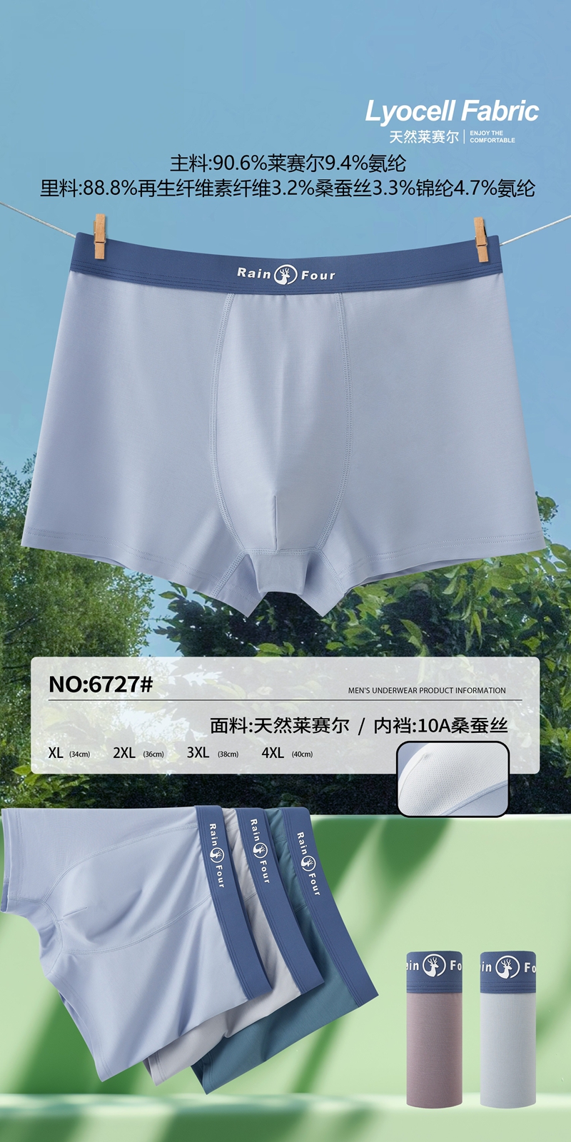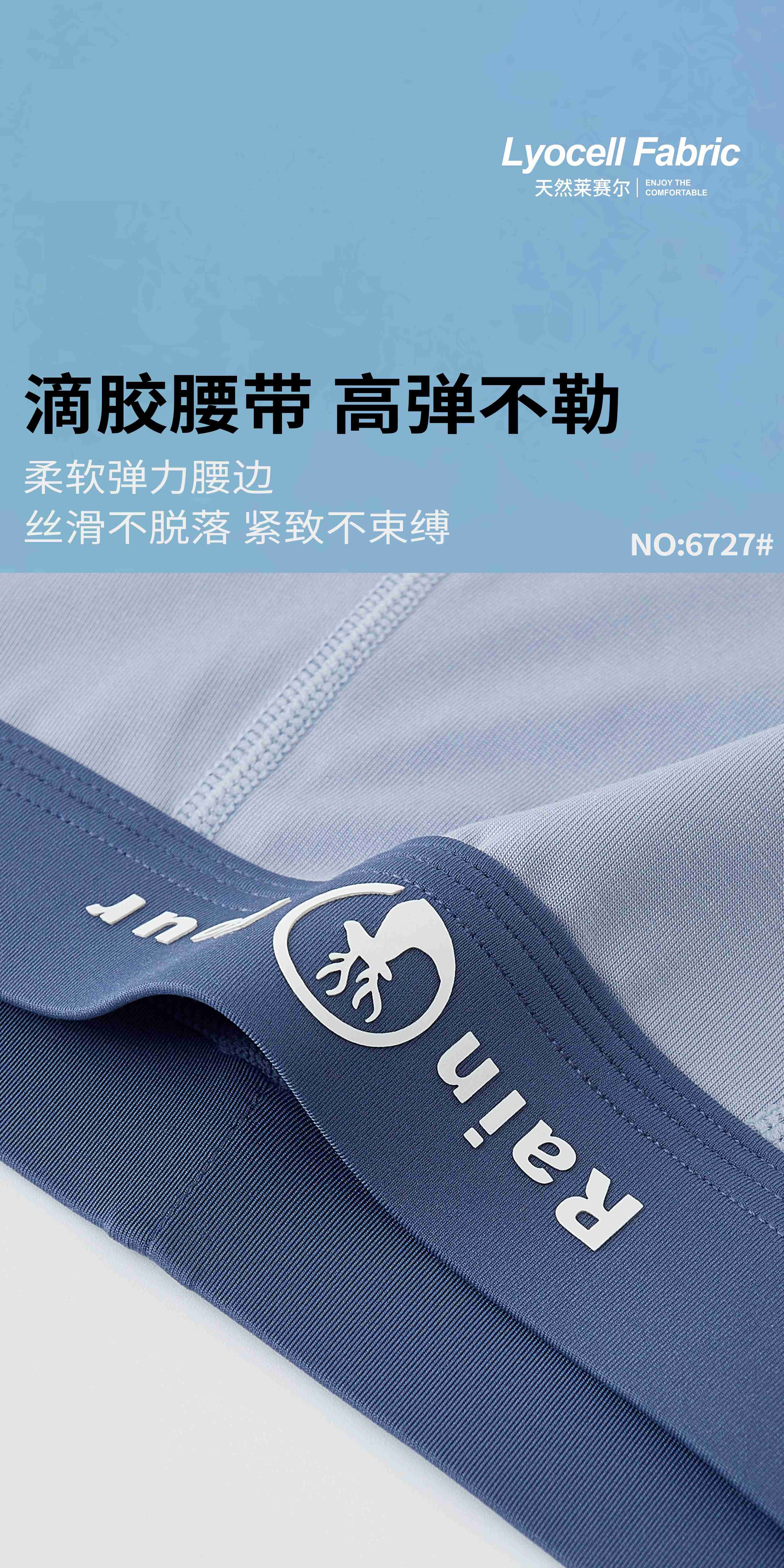 男士莱赛尔撞色包头平角内裤四角裤舒适透气小鹿印花滴胶男裤头6727