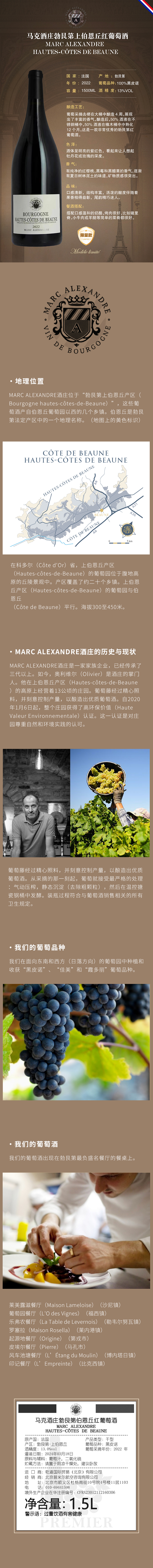 法国 勃艮第上伯恩丘 马克酒庄 红葡萄酒 1500ml*6瓶整箱装