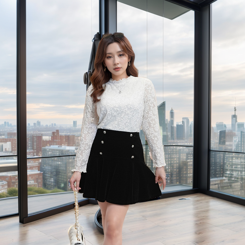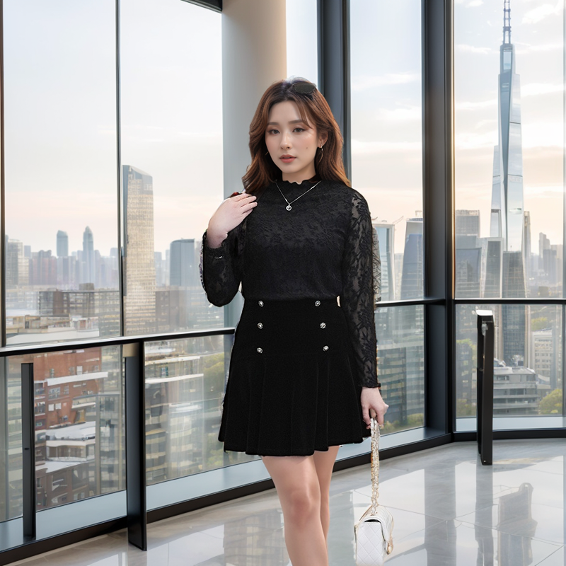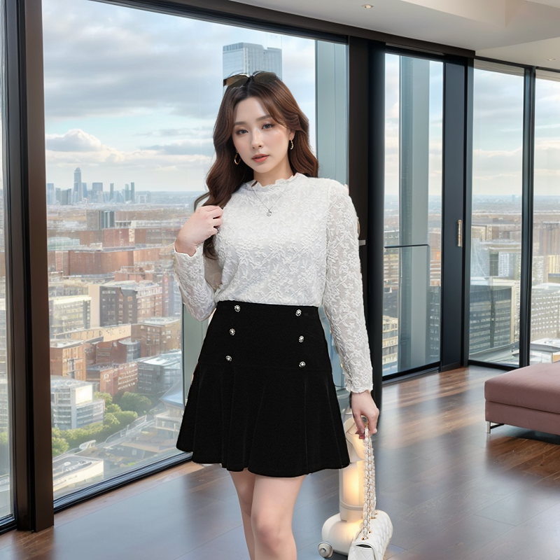 奢姿大码女装2024秋季减龄花纹镂空打底衫胖妹妹时尚简约百搭上衣9943153526