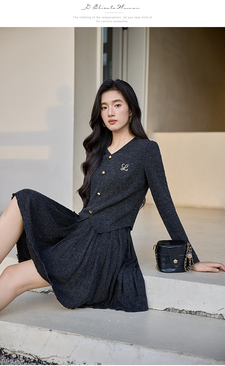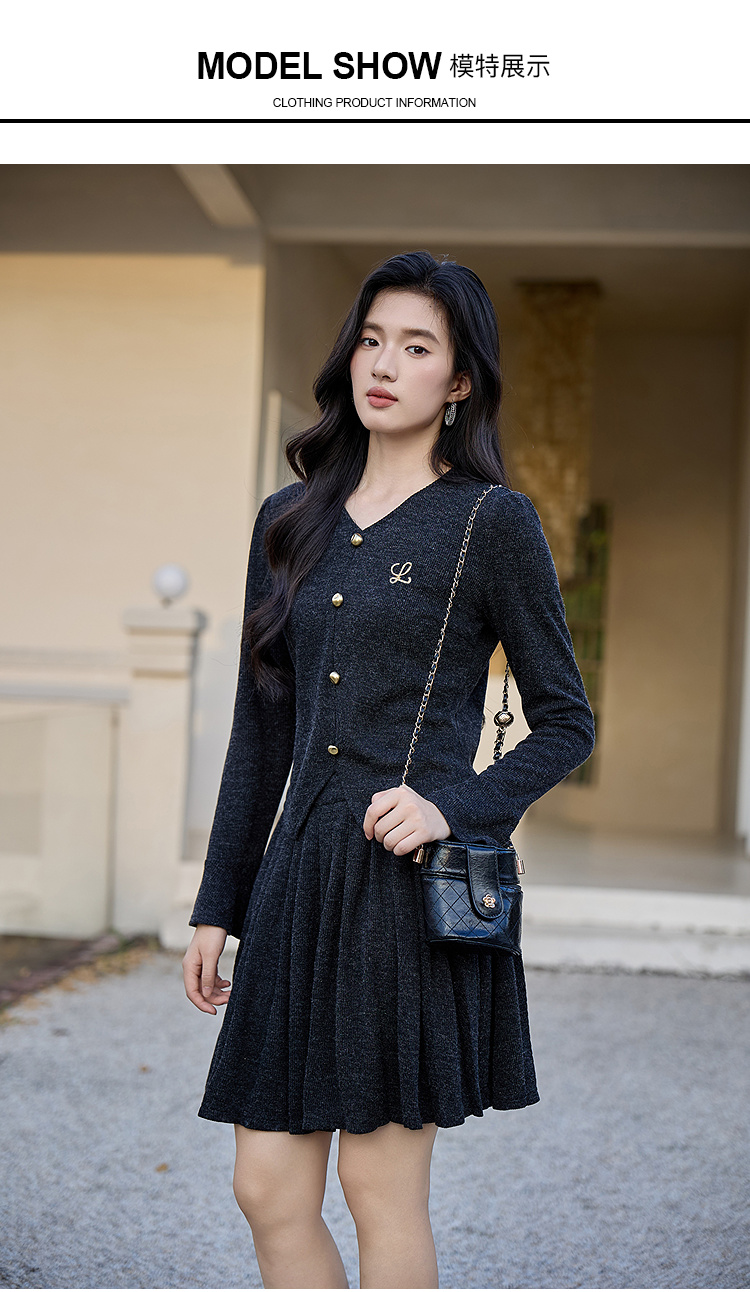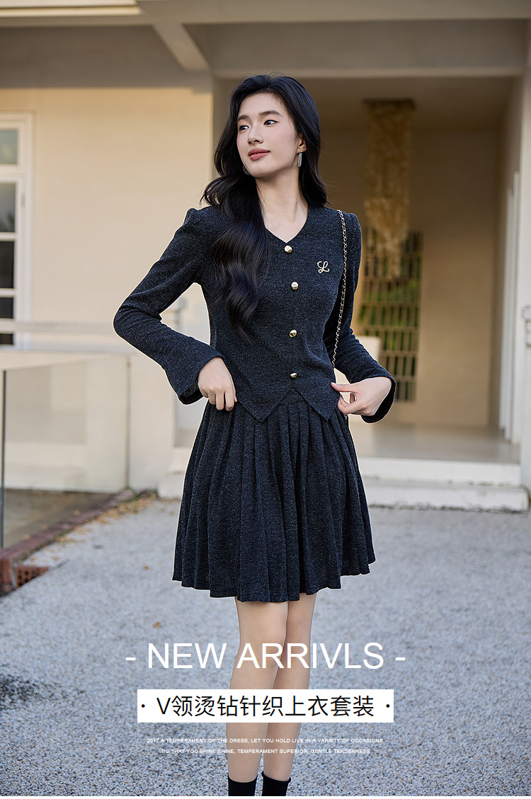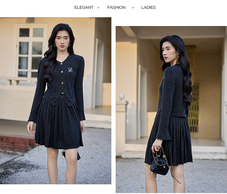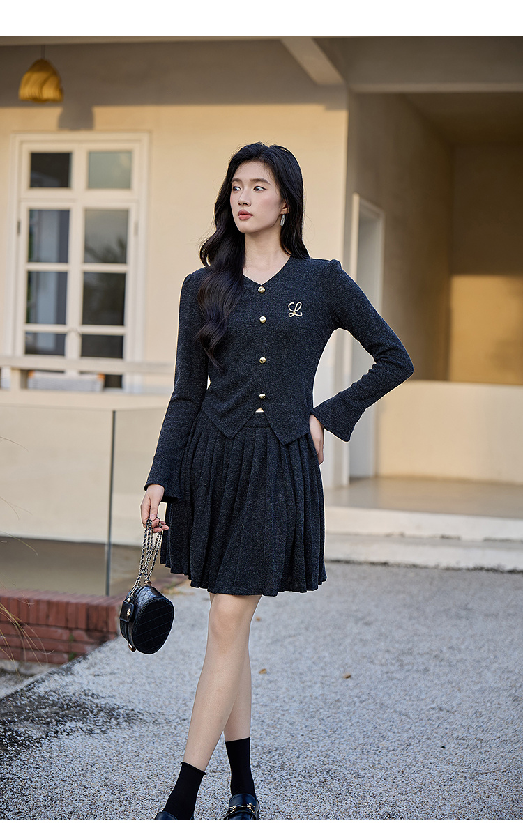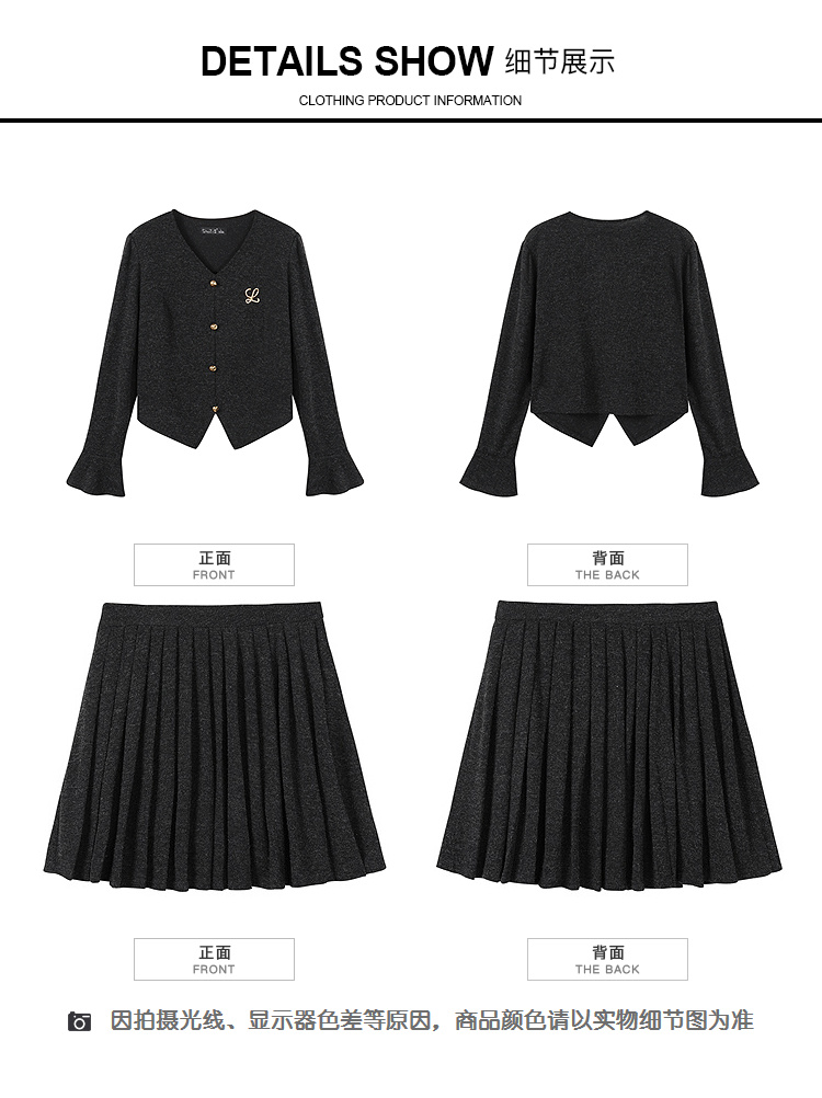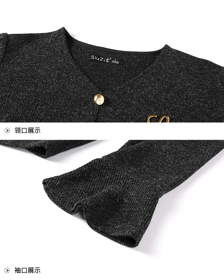 奢姿大码女装2025秋季V领上衣半身裙套装胖妹妹时尚喇叭袖两件套9953953750AB