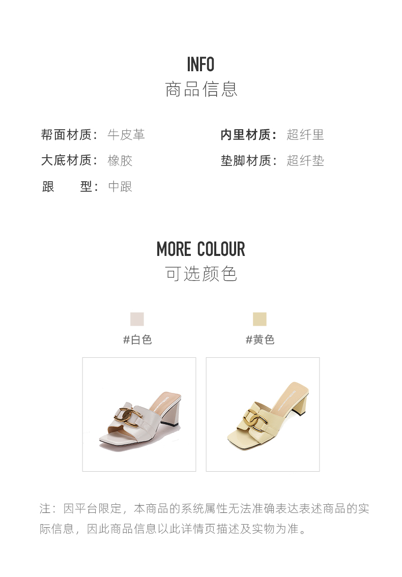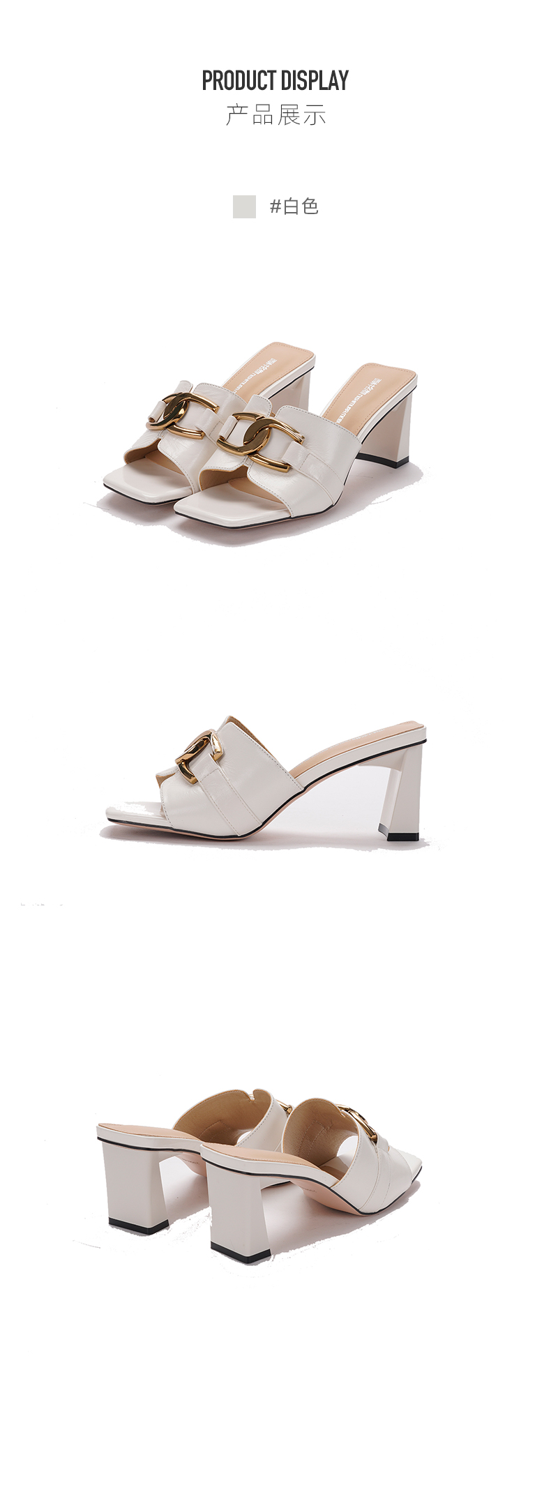 西村名物2021夏季新款仙女风金属扣粗跟拖鞋女外穿方头凉鞋T21AH15011