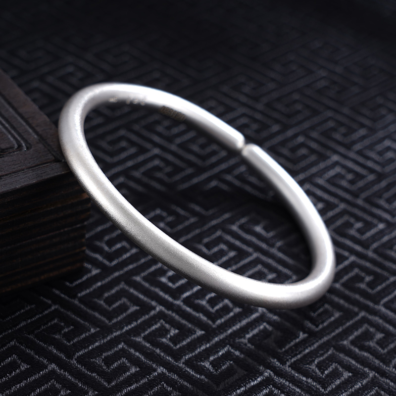 【寓意】:永不过时的素圈手镯,足银材质,握在手里是沉甸甸的质感。它以一种优雅而含蓄的方式,象征感情细水长流,自此圈住美好,圈住幸福。