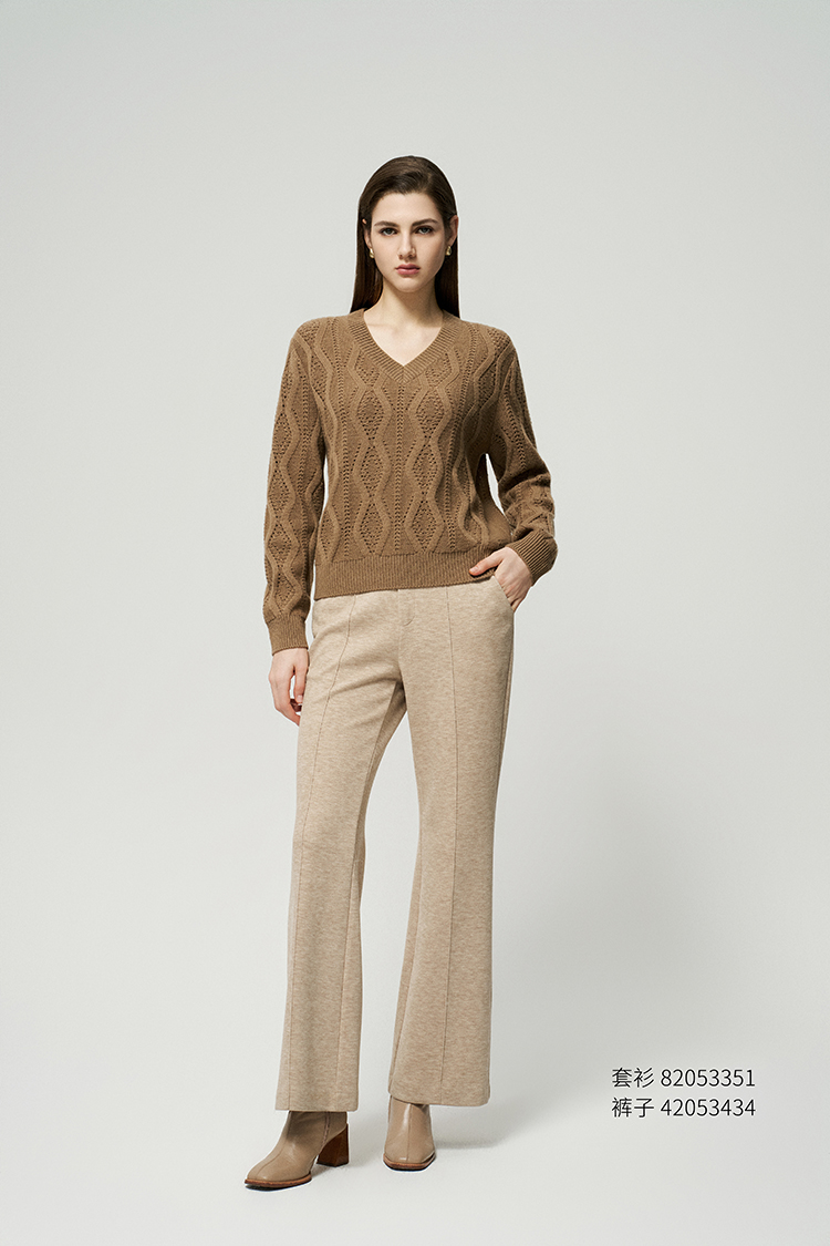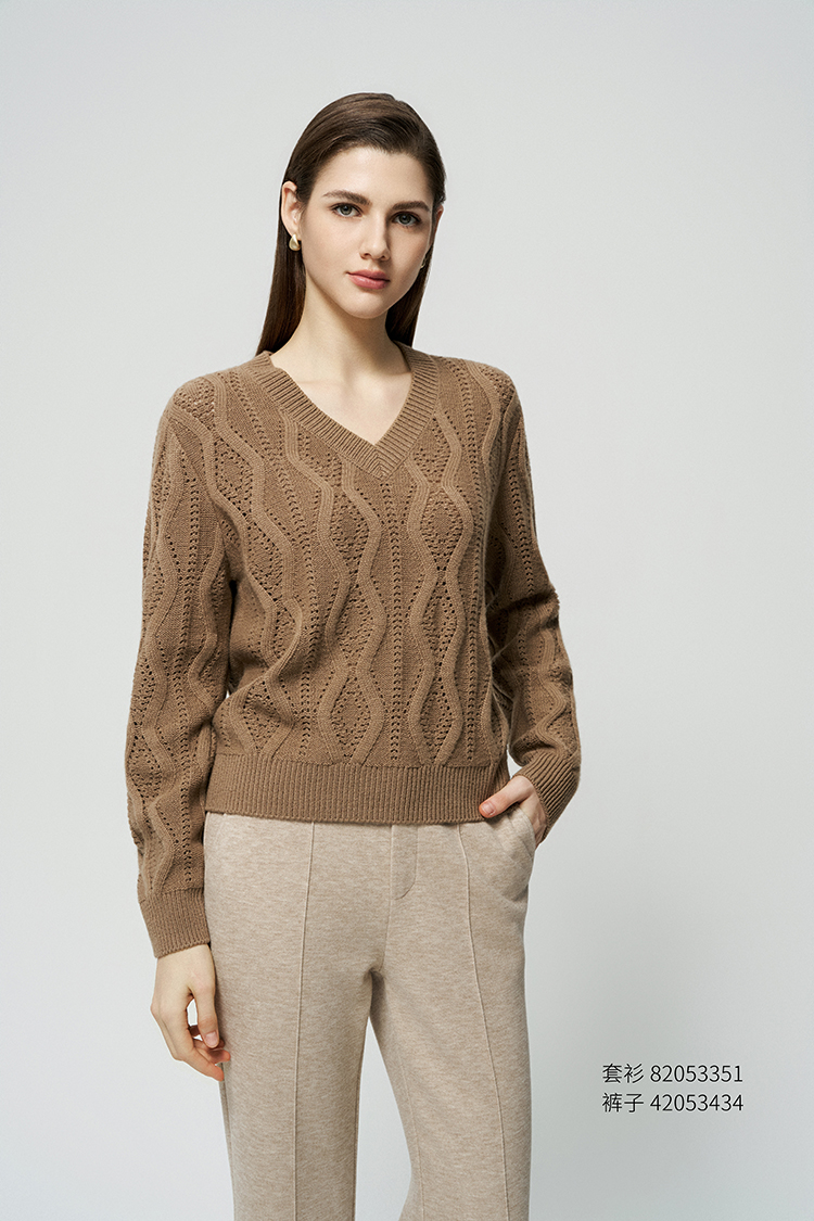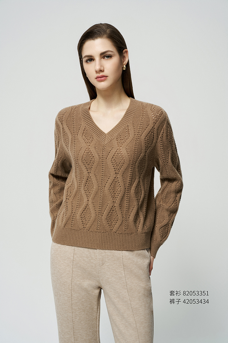 【V领绞花镂空套衫】羊绒世家秋冬新品女士100%山羊绒保暖针织套衫