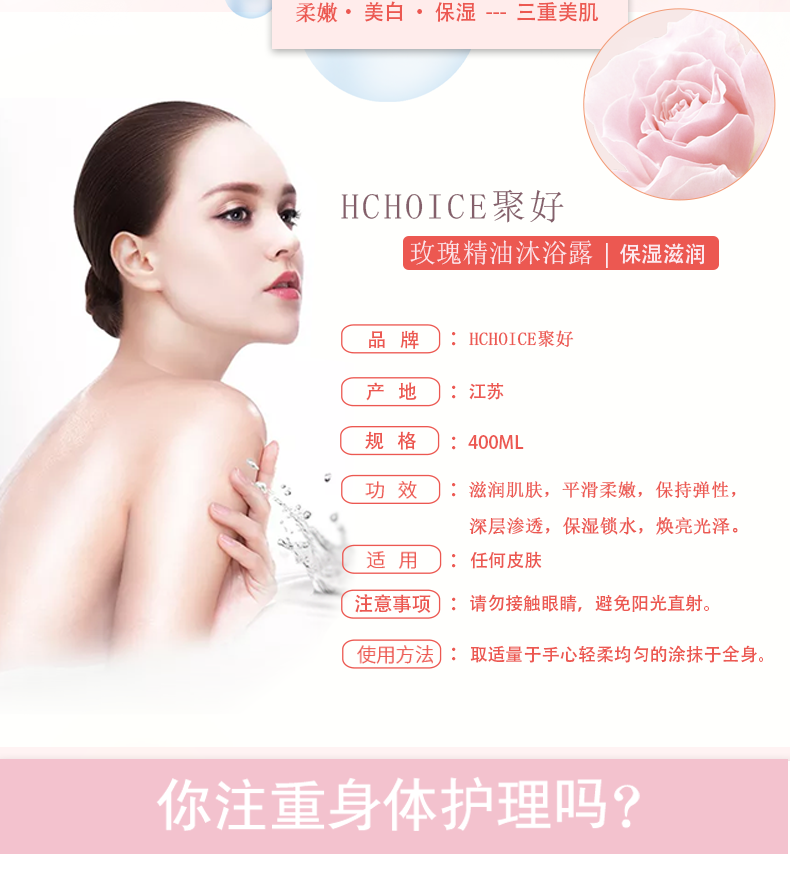 隆力奇氨基酸玫瑰精油细腻嫩肤不紧绷沐浴露滋润补水沐浴乳WS20706 WS20707