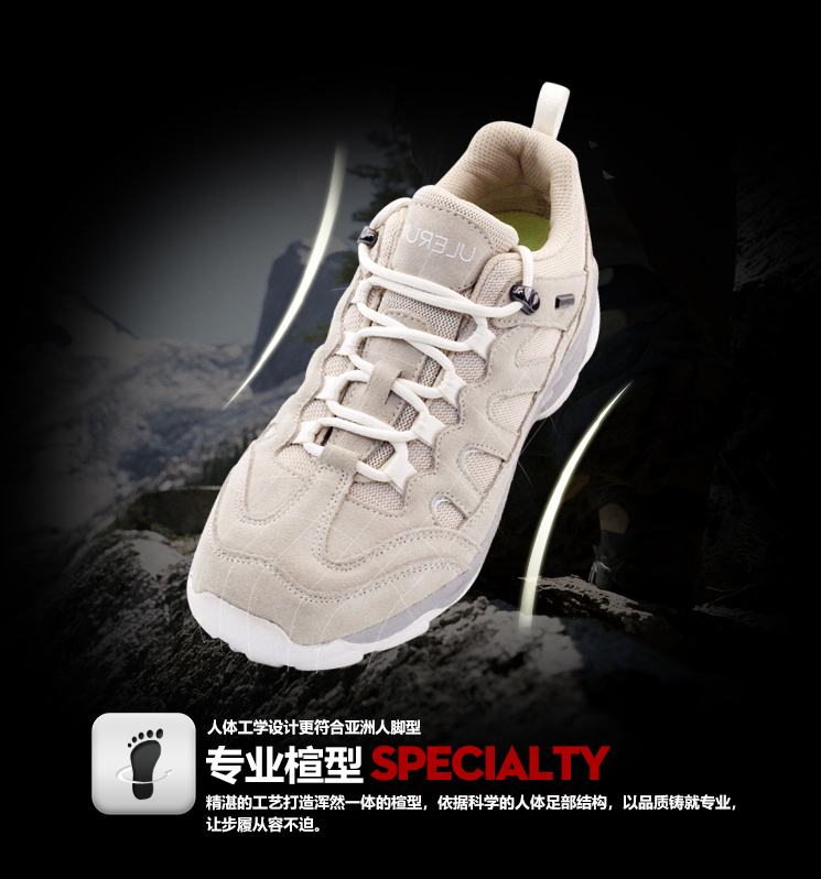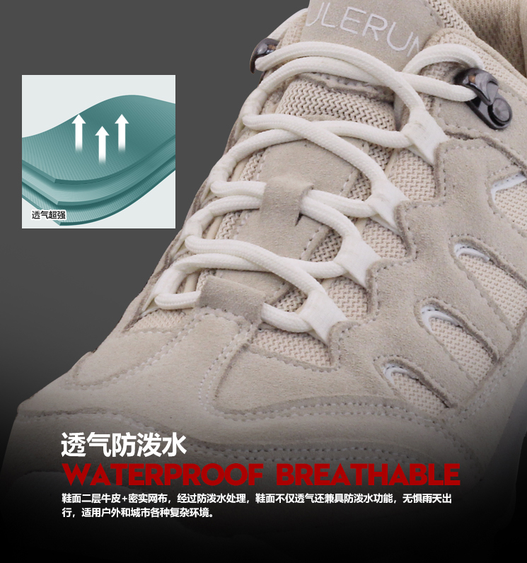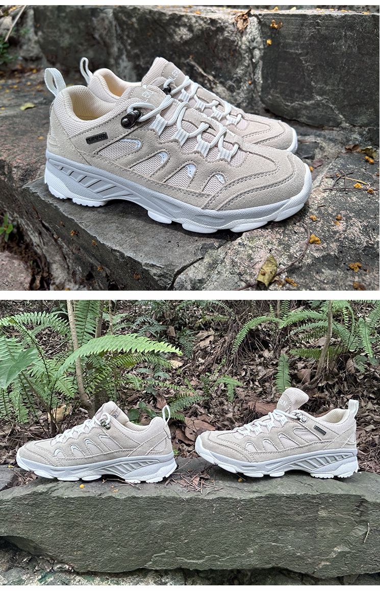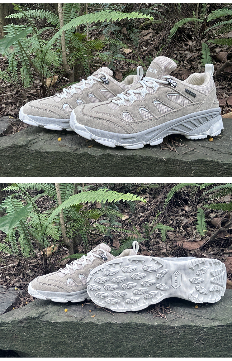 秒杀!【又乐】徒步鞋低帮轻山系米白色透气牛皮户外休闲登山越野U8