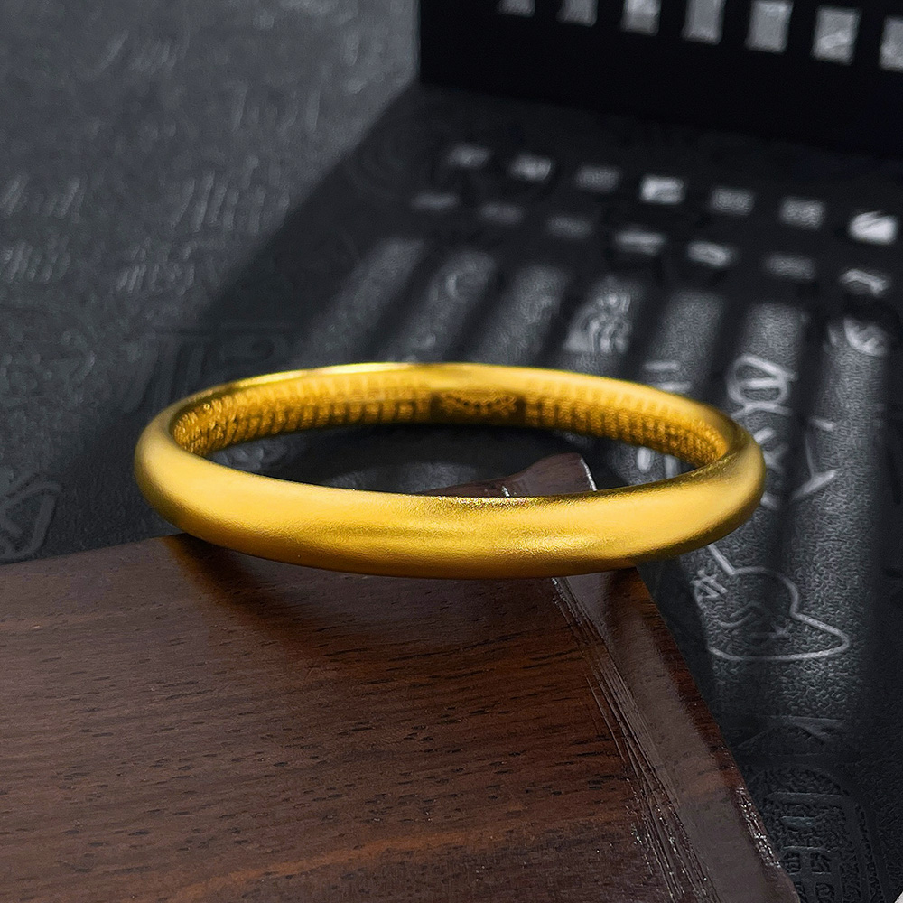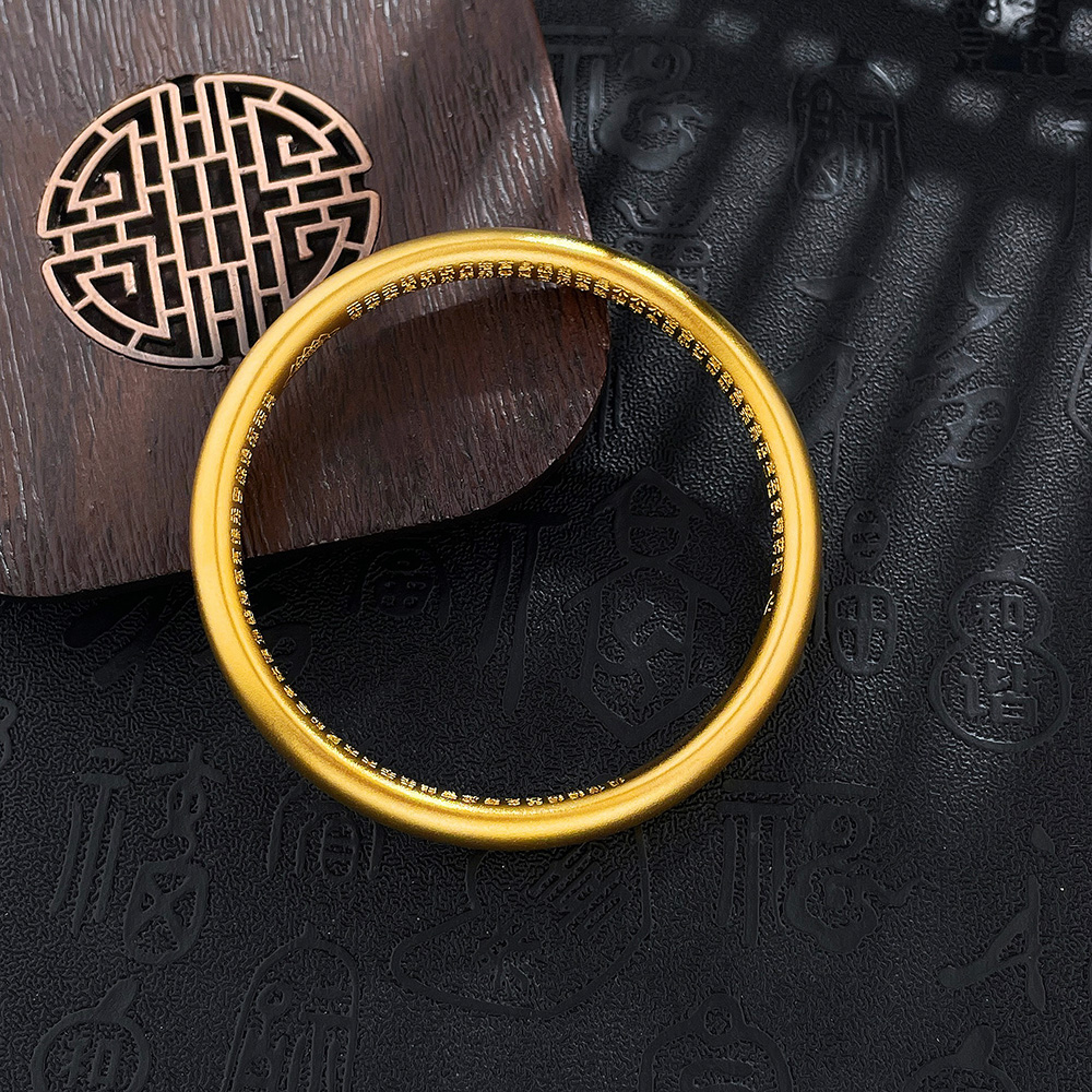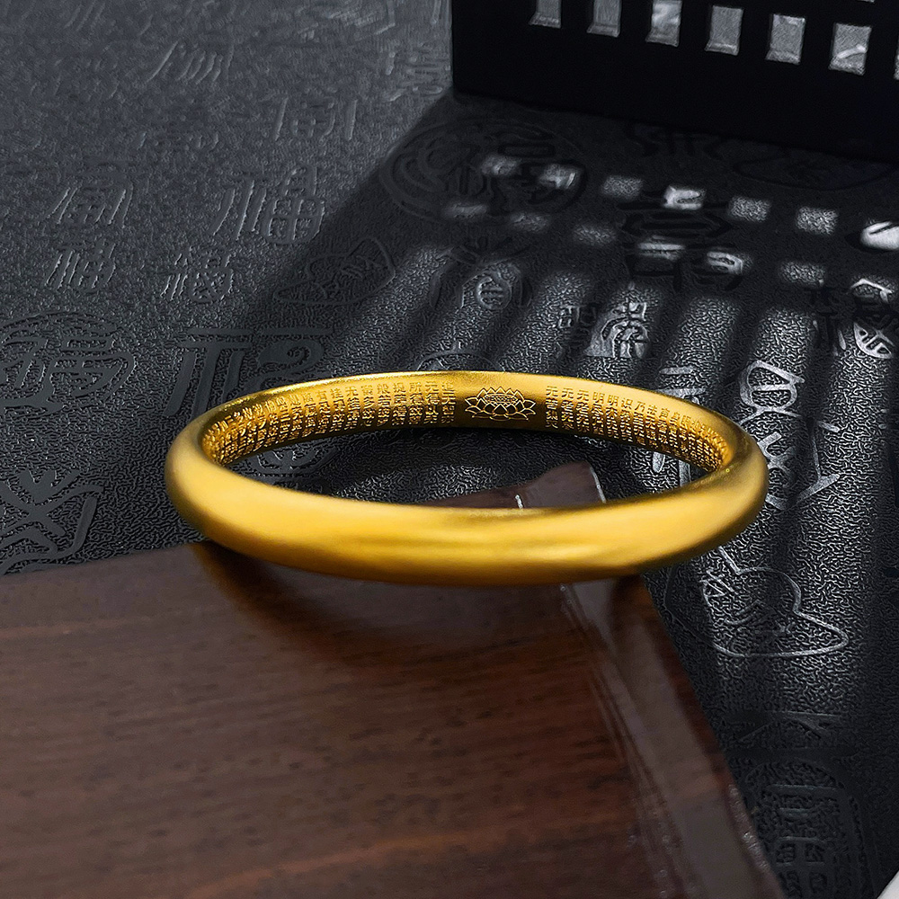 【限时克减150元】足金999.9 #复古风 古法空心固口内心经佛莲泥鳅背手镯(面宽约7.4-7.8mm,厚约5mm)(GFSZW00168-03)