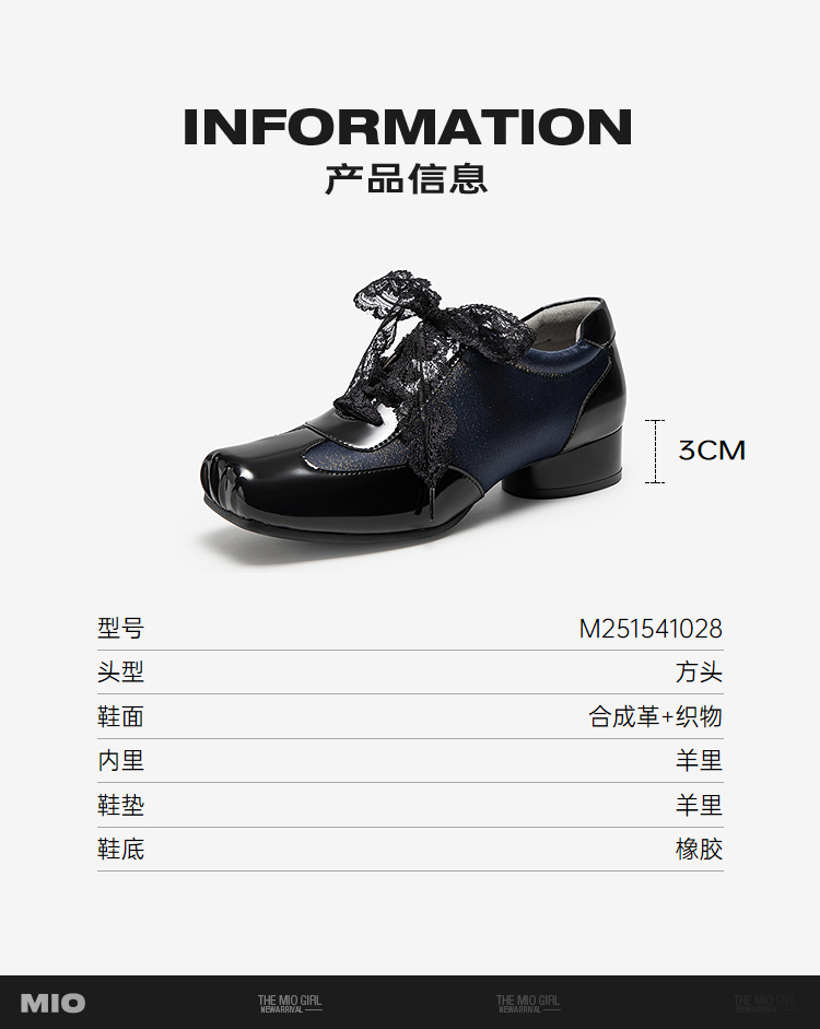 MIO米奥女鞋小香风凉鞋春夏新款甜美链条蝴蝶结法式浅口单鞋皮鞋M252240712
